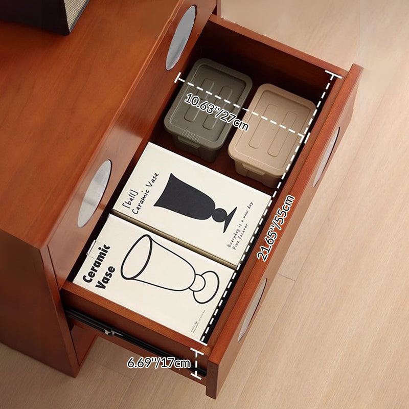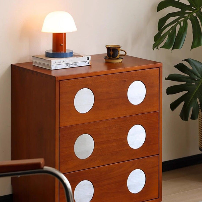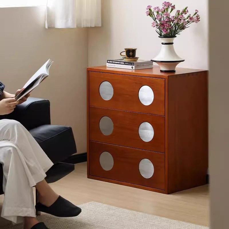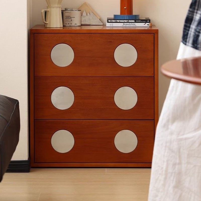 現代風レトロ立方体メタルパインウッド合板収納キャビネット3段引き出し付き寝室用