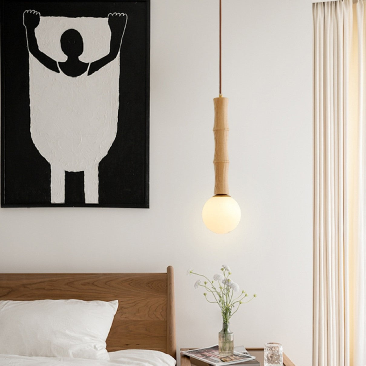現代風レトロシリンダー竹型無垢材1灯ペンダントライトリビングルーム用