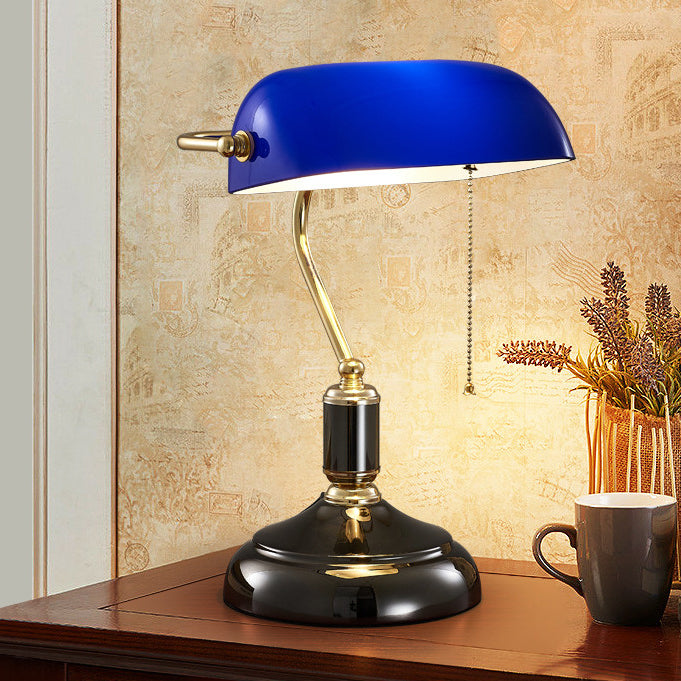 Contemporary Retro Glass Metal Strip Pull Switch 1-Light Table Lamp For Study