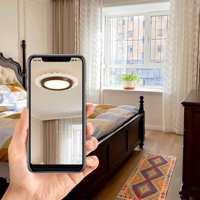 現代的なレトロなハードウェアABS PCアクリルラウンドレースLEDフラッシュマウントシーリングファンライト寝室用