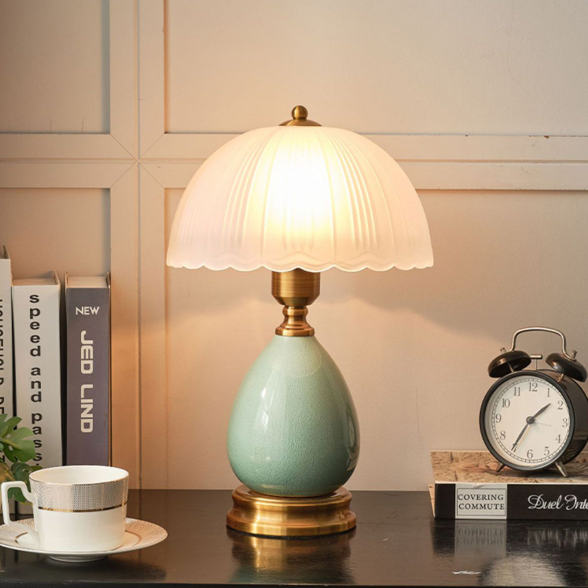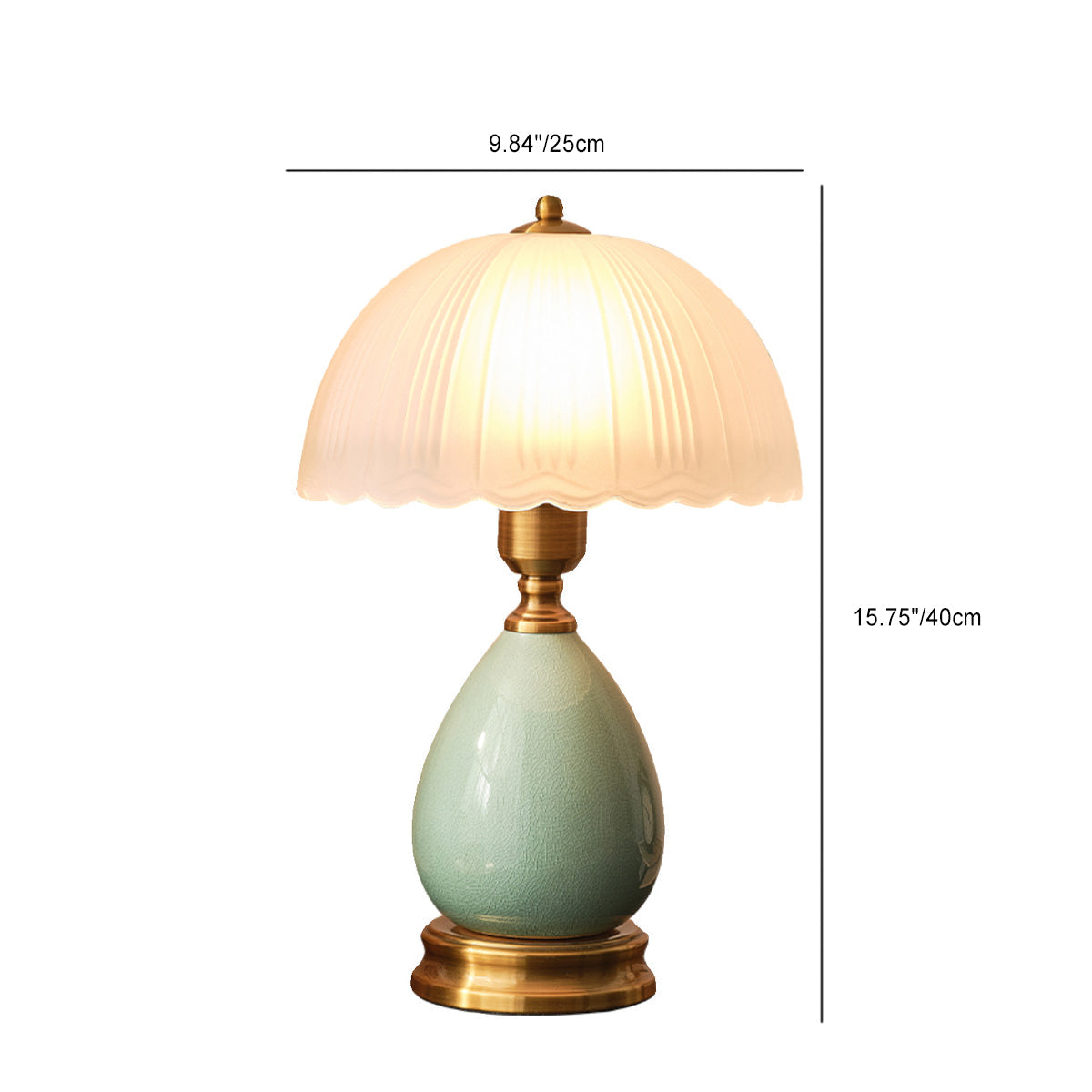Contemporary Retro Oval Vase Ceramic Base Glass Shade 1-Light Table Lamp For Bedroom