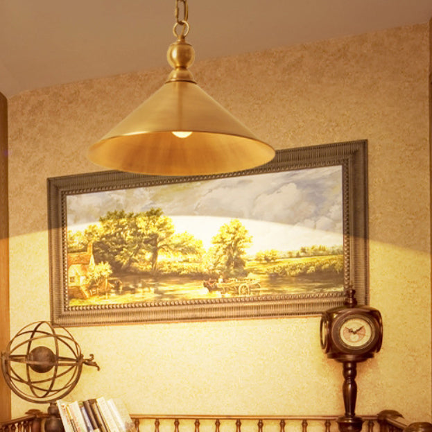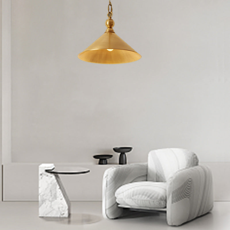 ダイニングルームに最適な、現代的なレトロな丸型真鍮製1灯ペンダントライト
