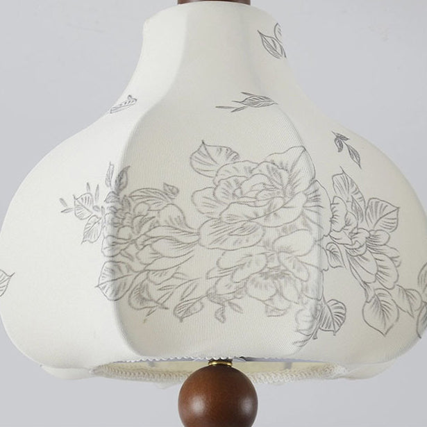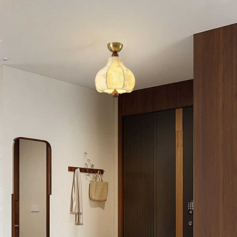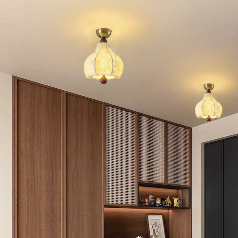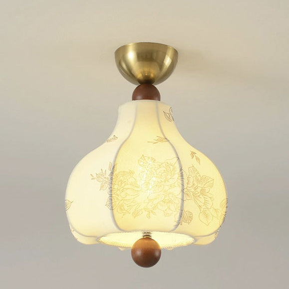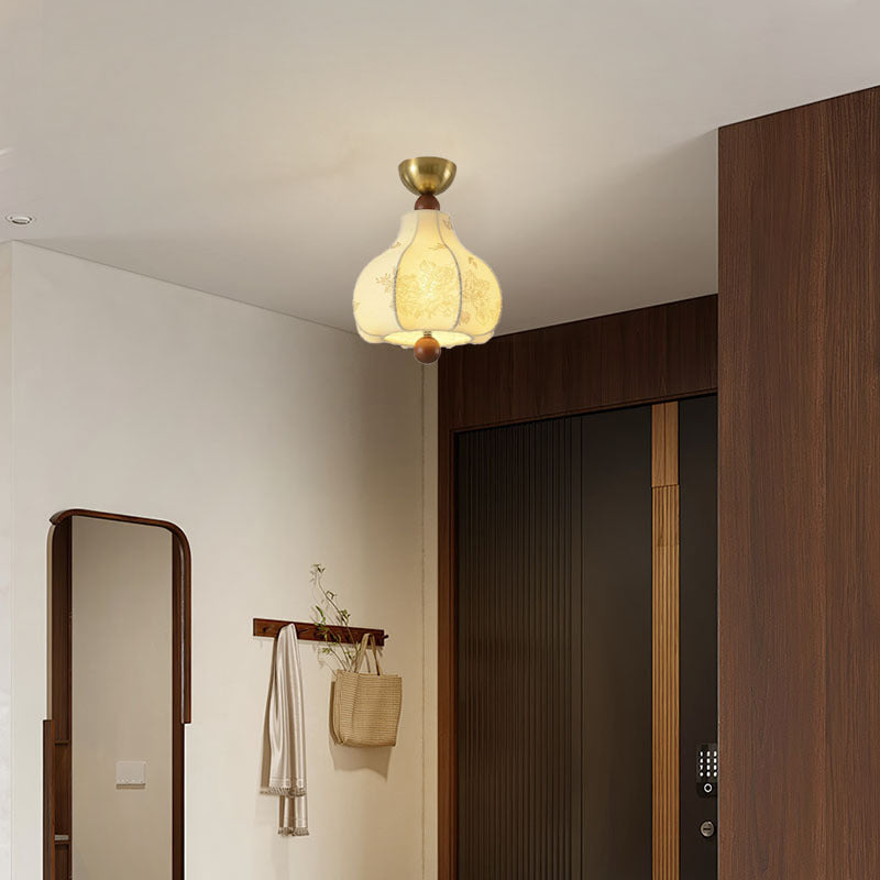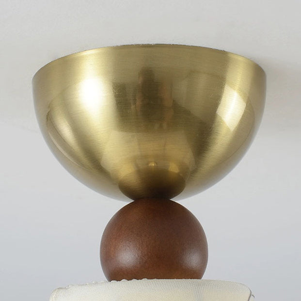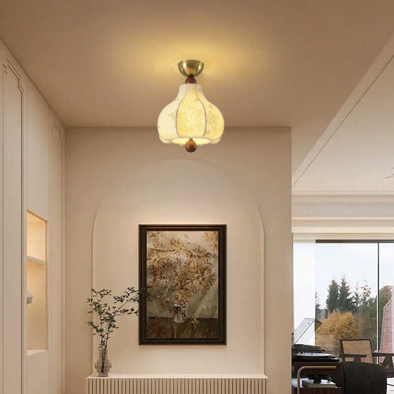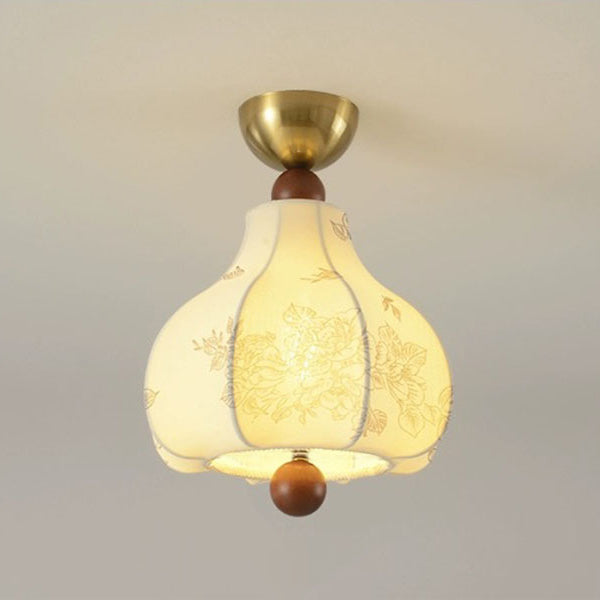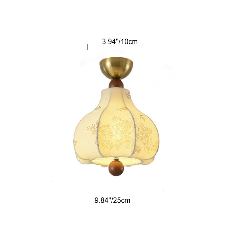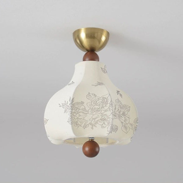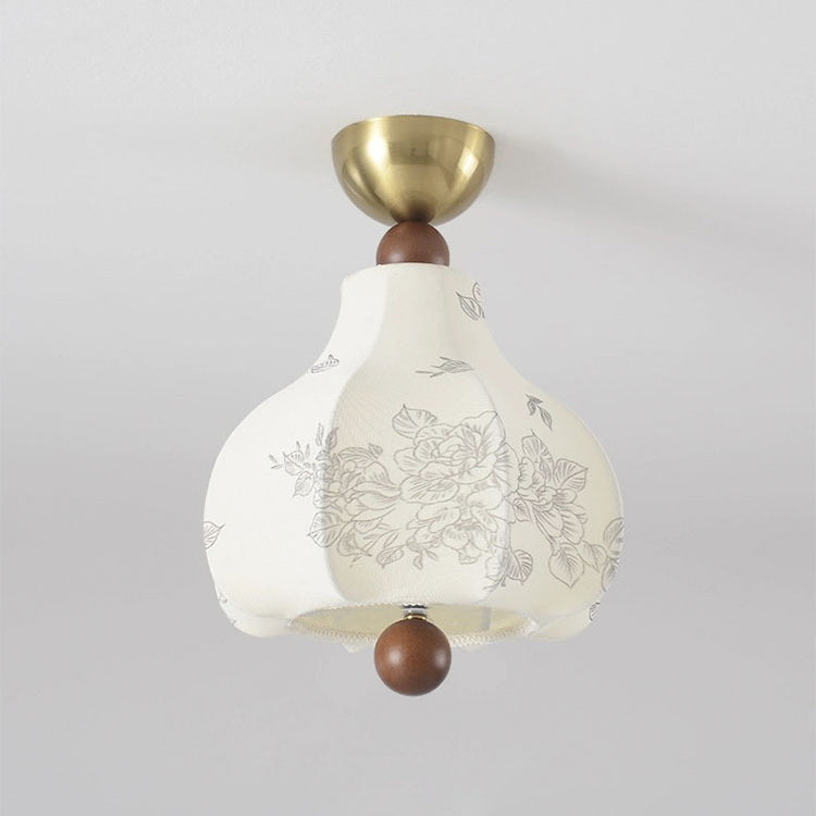 現代的なレトロなラウンドドーム花柄ハードウェアフレーム無垢材ファブリック1ライトセミフラッシュマウントシーリングライトリビングルーム用