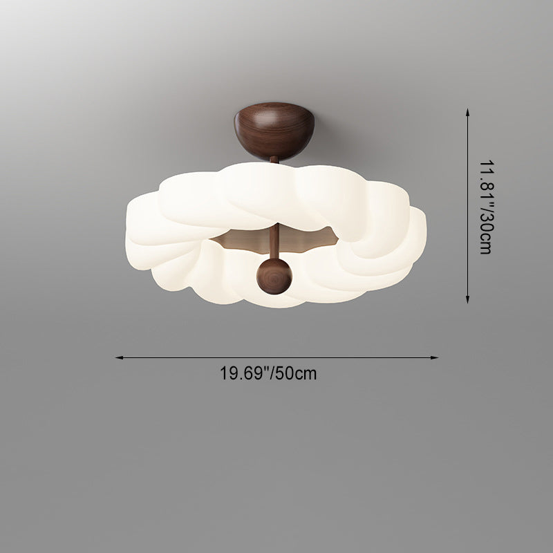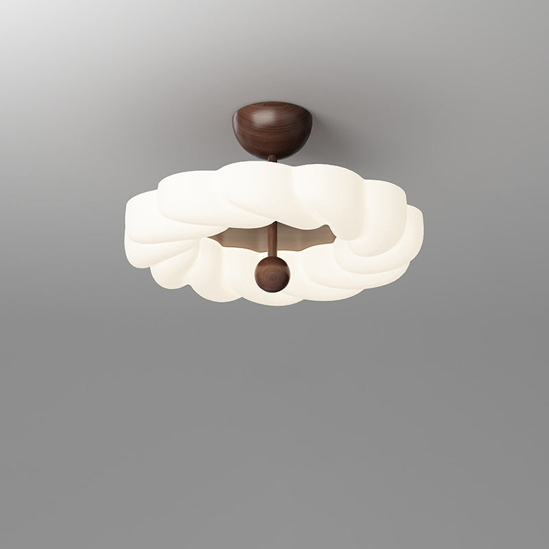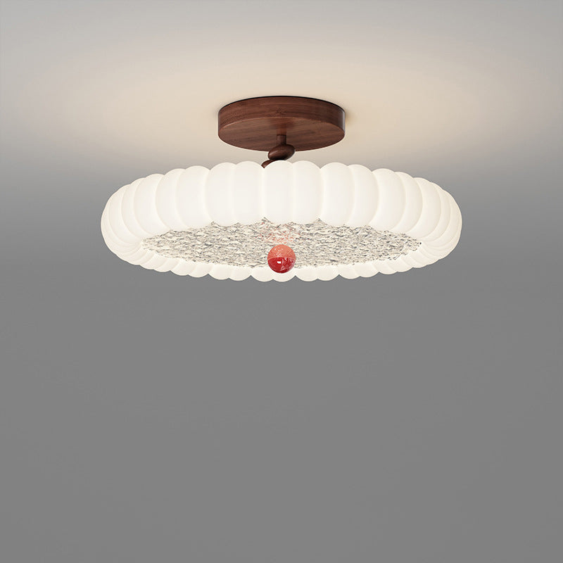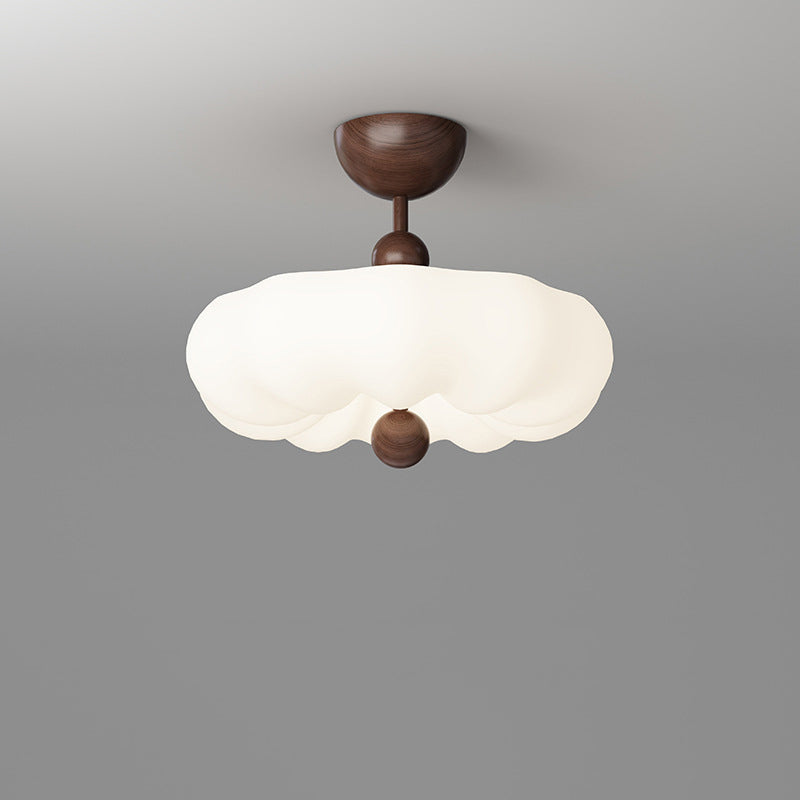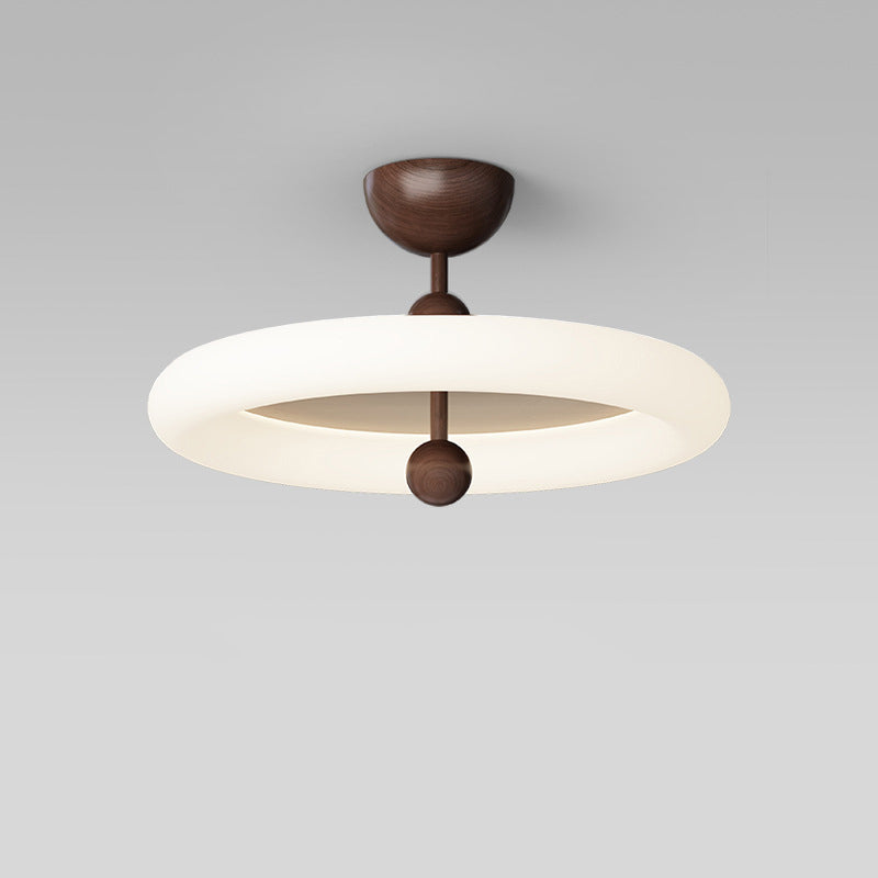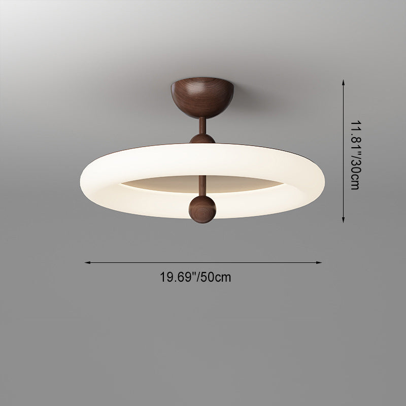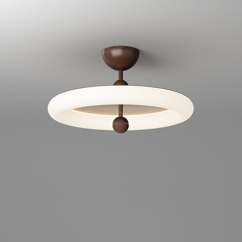 寝室用、コンテンポラリーレトロラウンドドーム回転モールディングウォールナットアイアンLEDセミフラッシュマウントシーリングライト