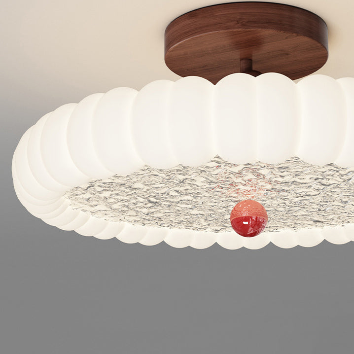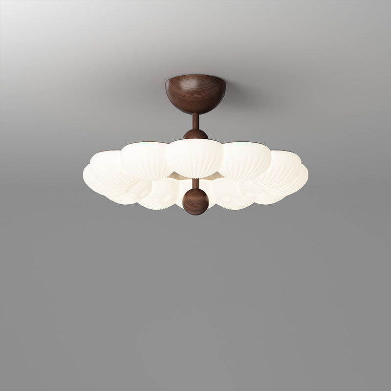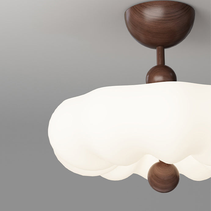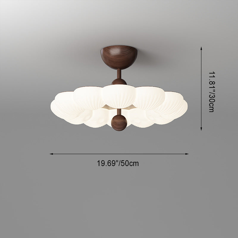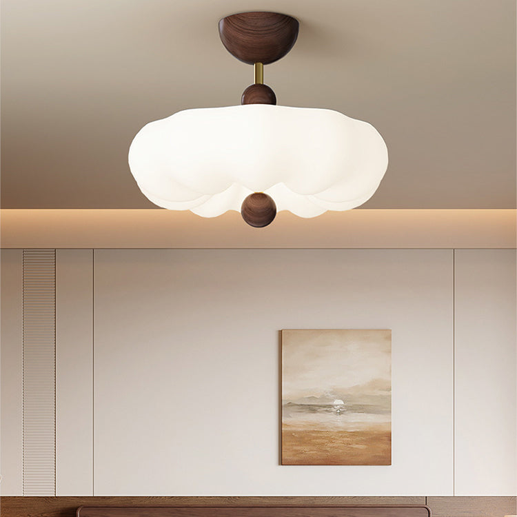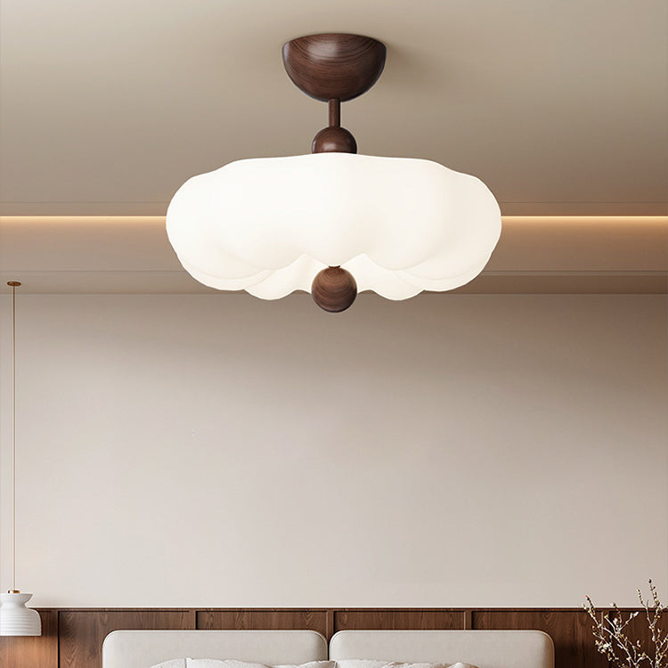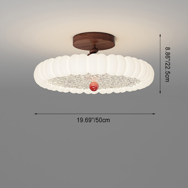 寝室用、コンテンポラリーレトロラウンドドーム回転モールディングウォールナットアイアンLEDセミフラッシュマウントシーリングライト