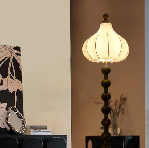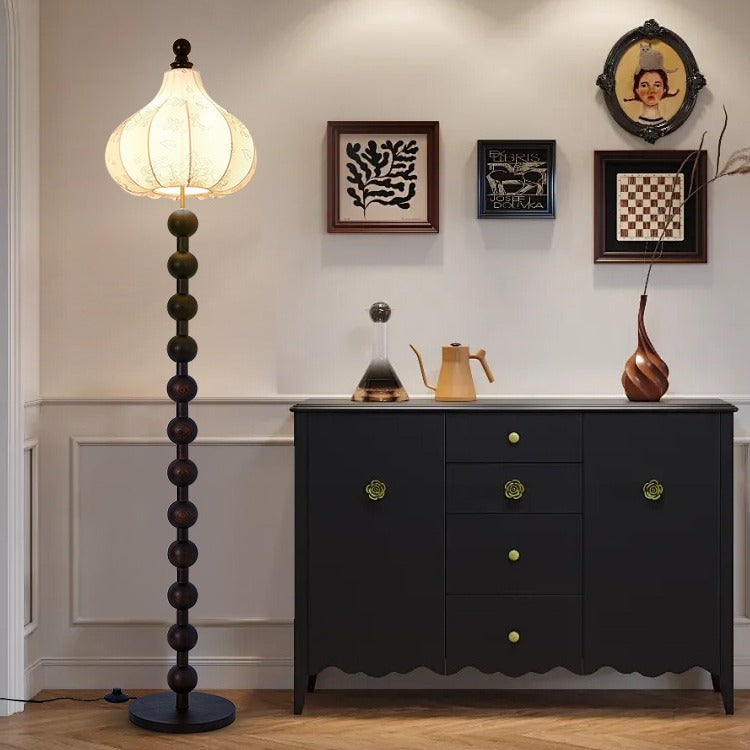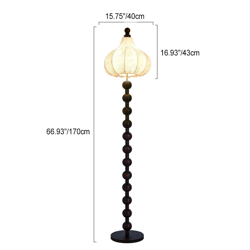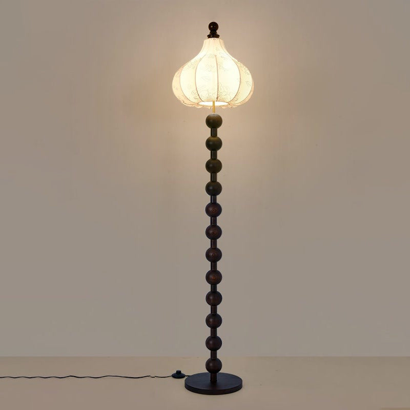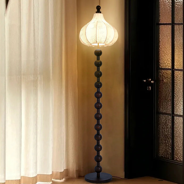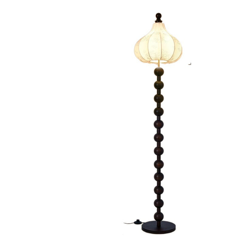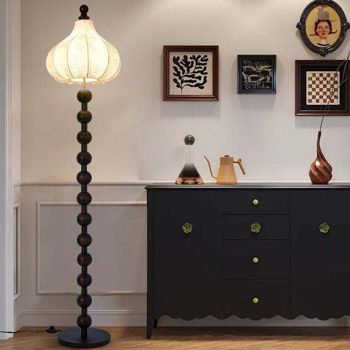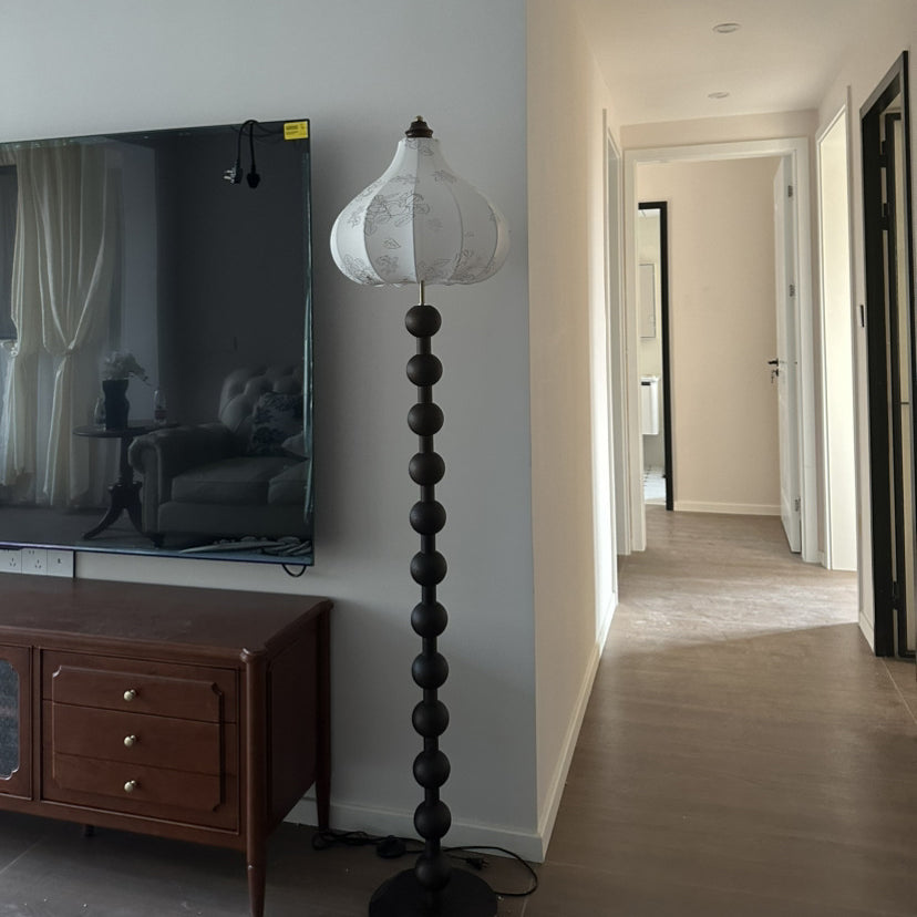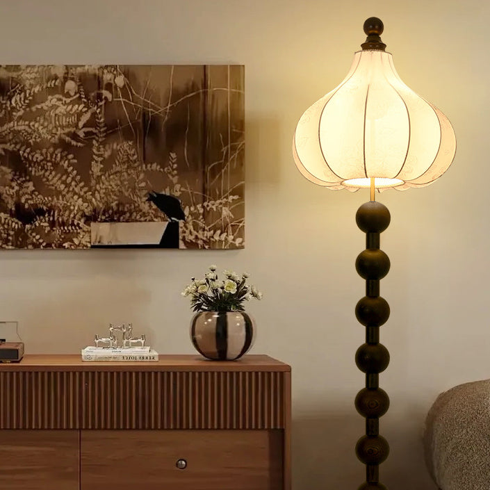 Contemporary Retro Round Fabric Shade Wooden Pole Base 1-Light Standing Floor Lamp For Home Office