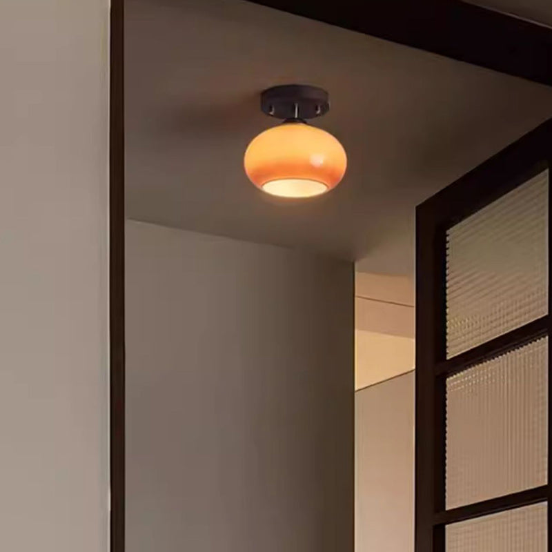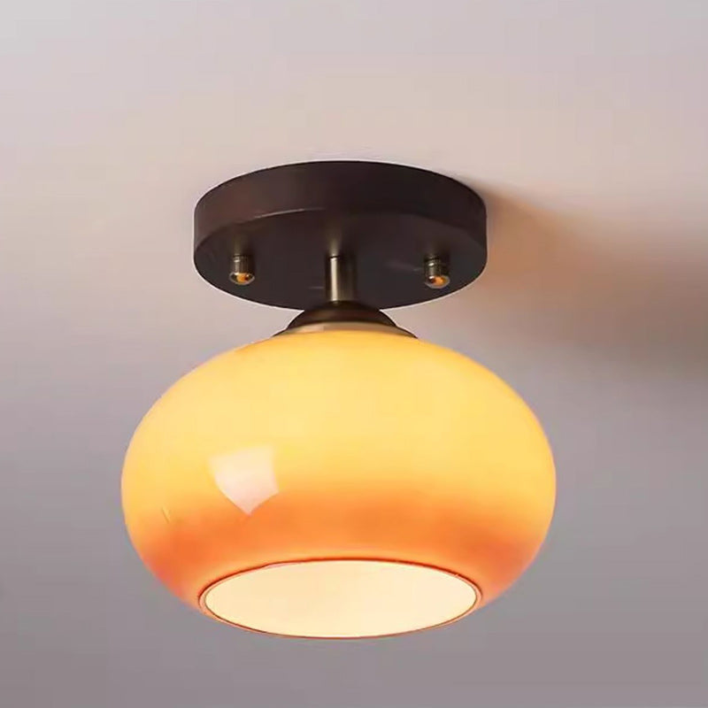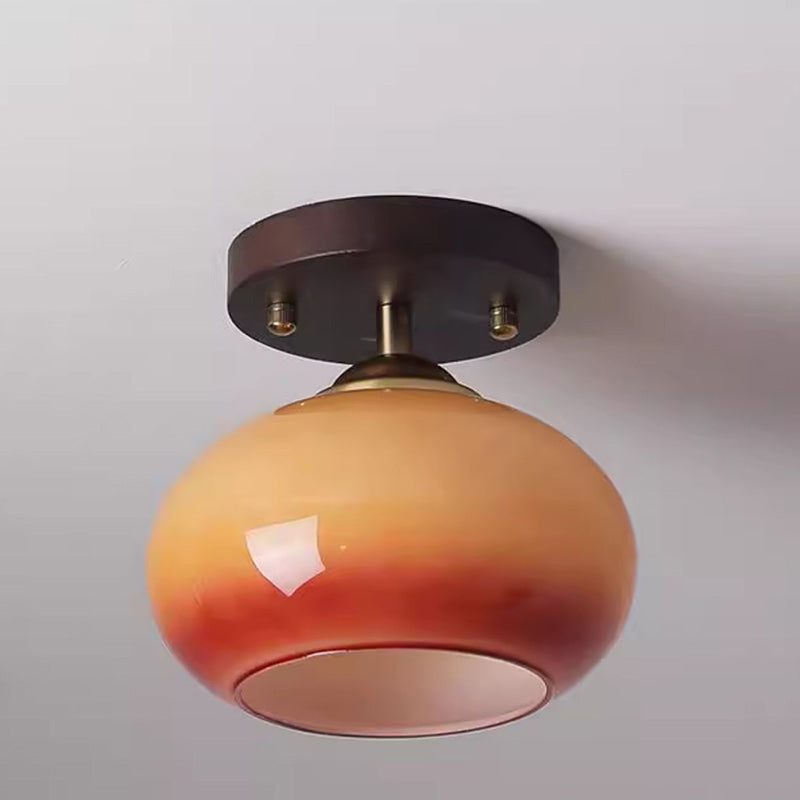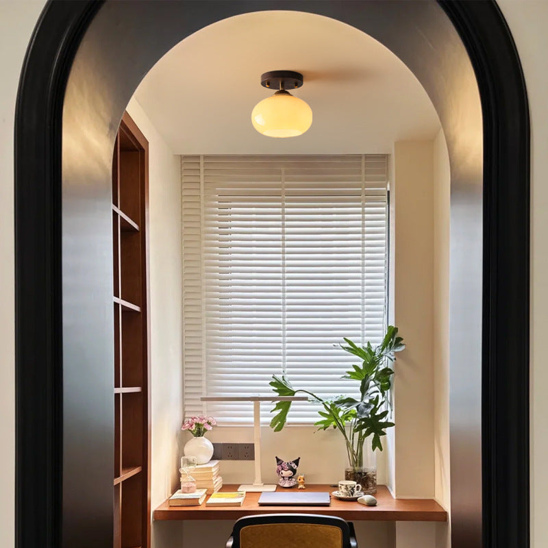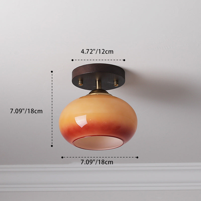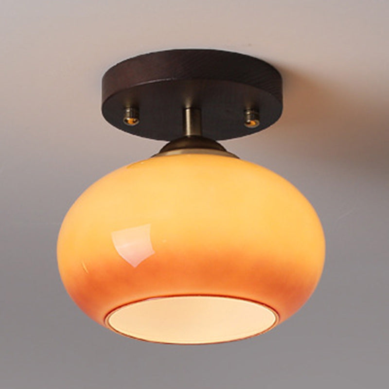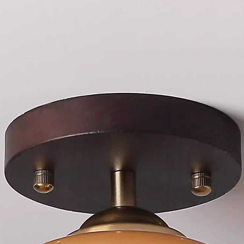 現代風レトロラウンドオーバルドーム木製ベースガラス1ライトセミフラッシュマウントシーリングライトリビングルーム用