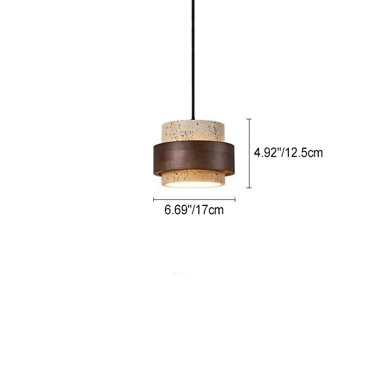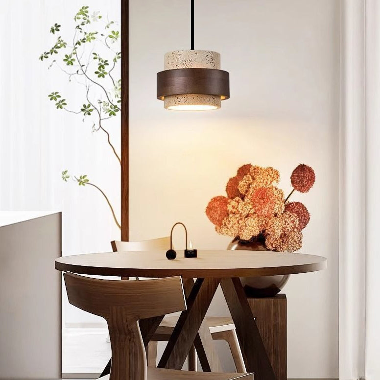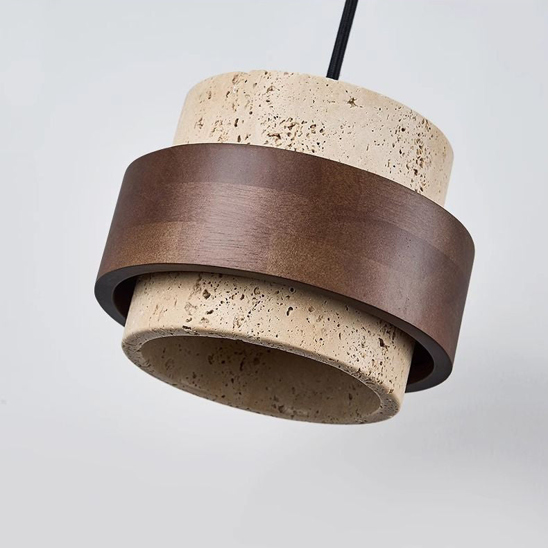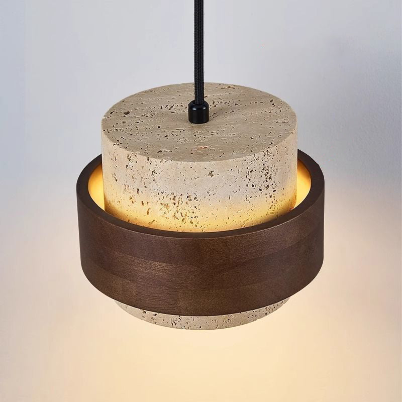 モダンでレトロなラウンドイエロートラバーチン無垢材1灯ペンダントライトダイニングルーム用