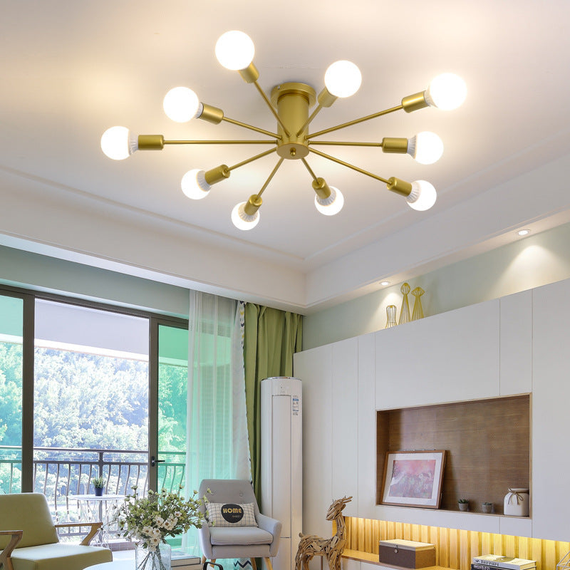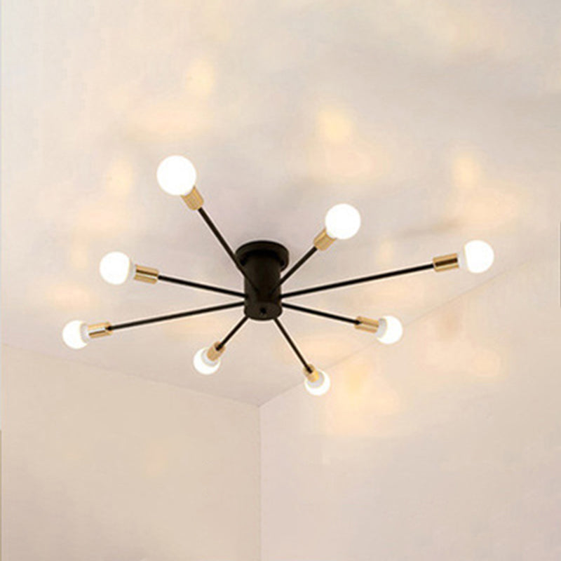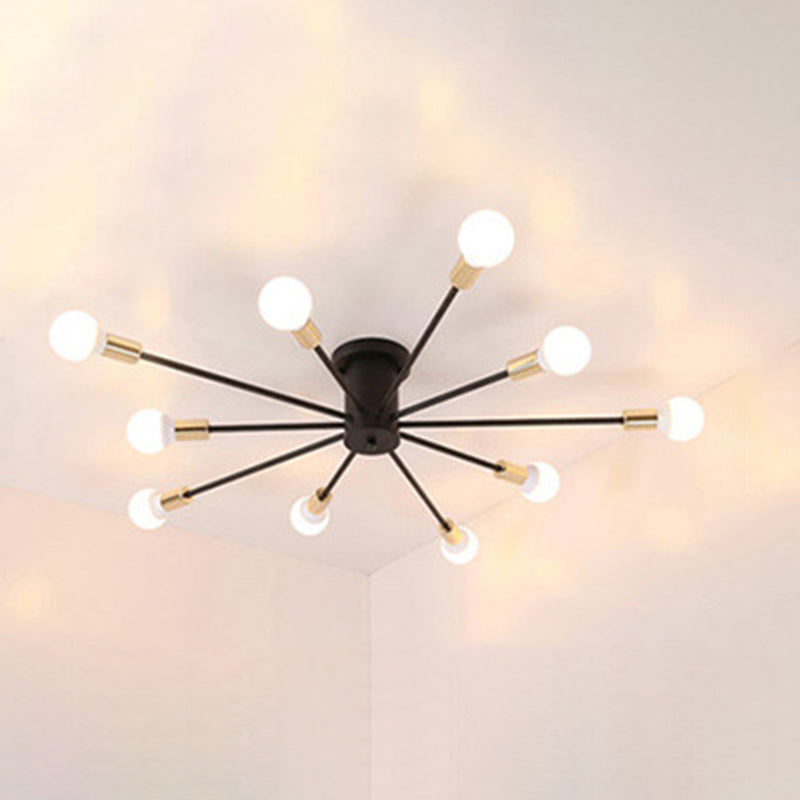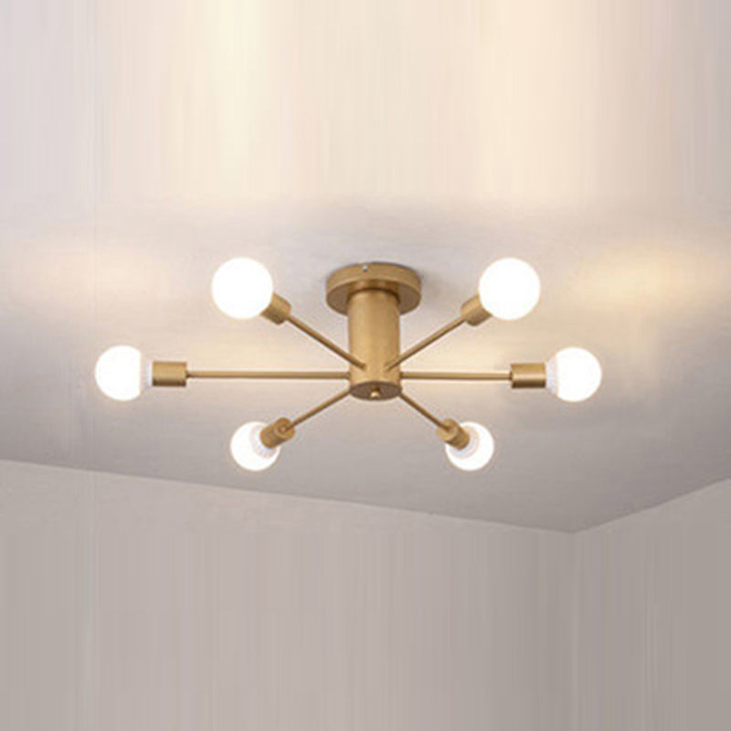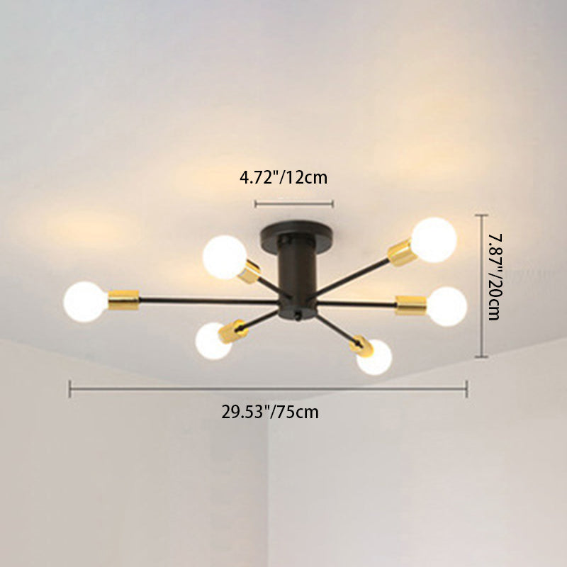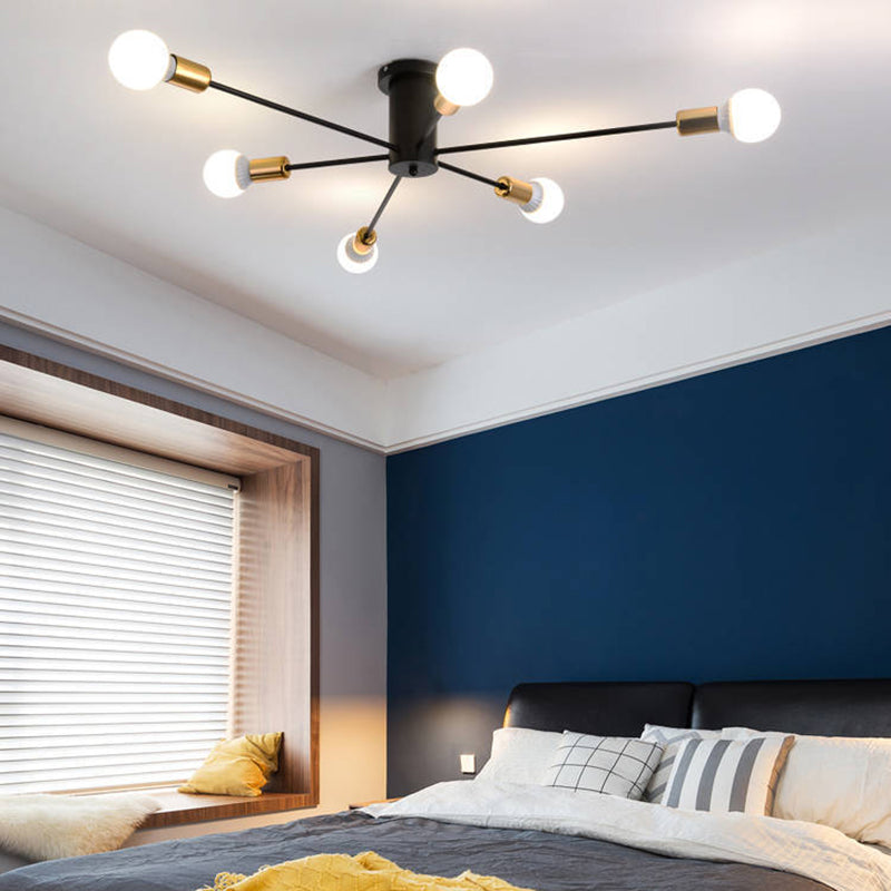現代的なスカンジナビアブランチリニアシリンダーガラスアイアン6/8/10ライトセミフラッシュマウントシーリングライト寝室用