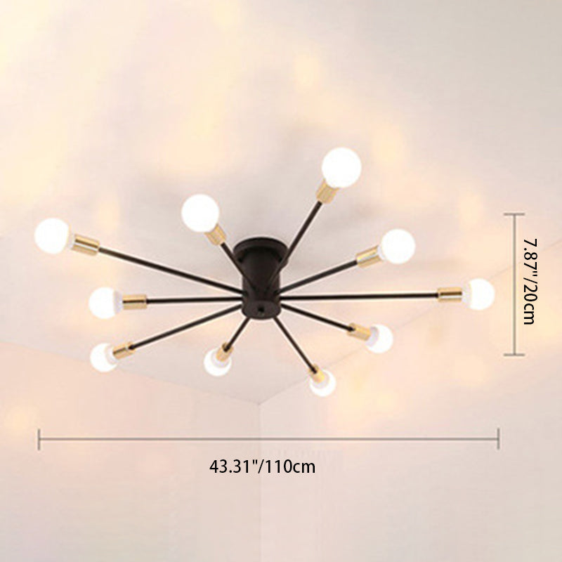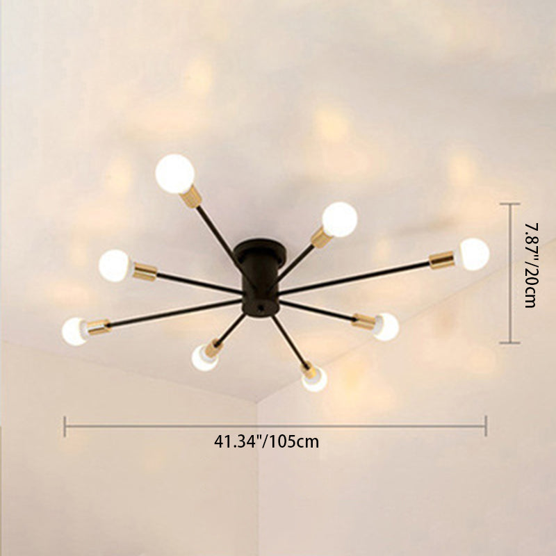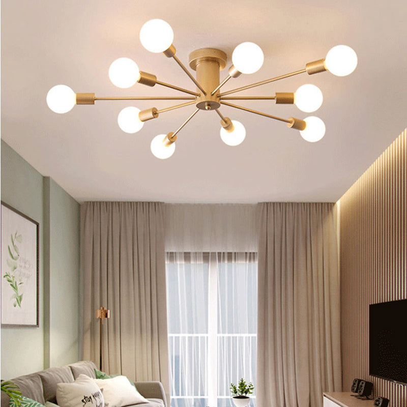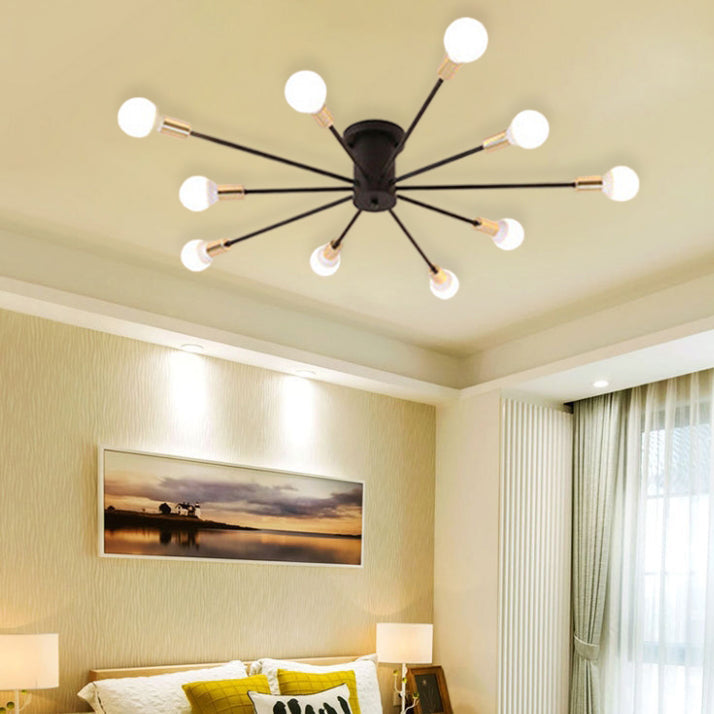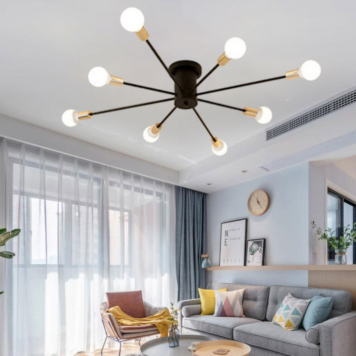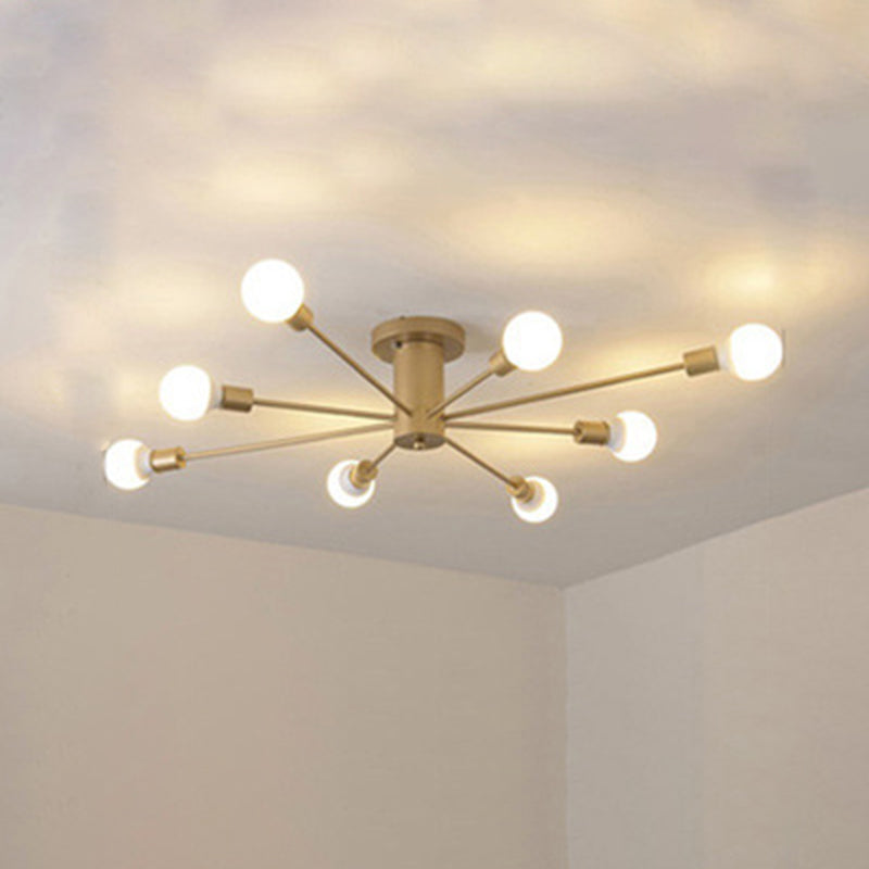 現代的なスカンジナビアブランチリニアシリンダーガラスアイアン6/8/10ライトセミフラッシュマウントシーリングライト寝室用