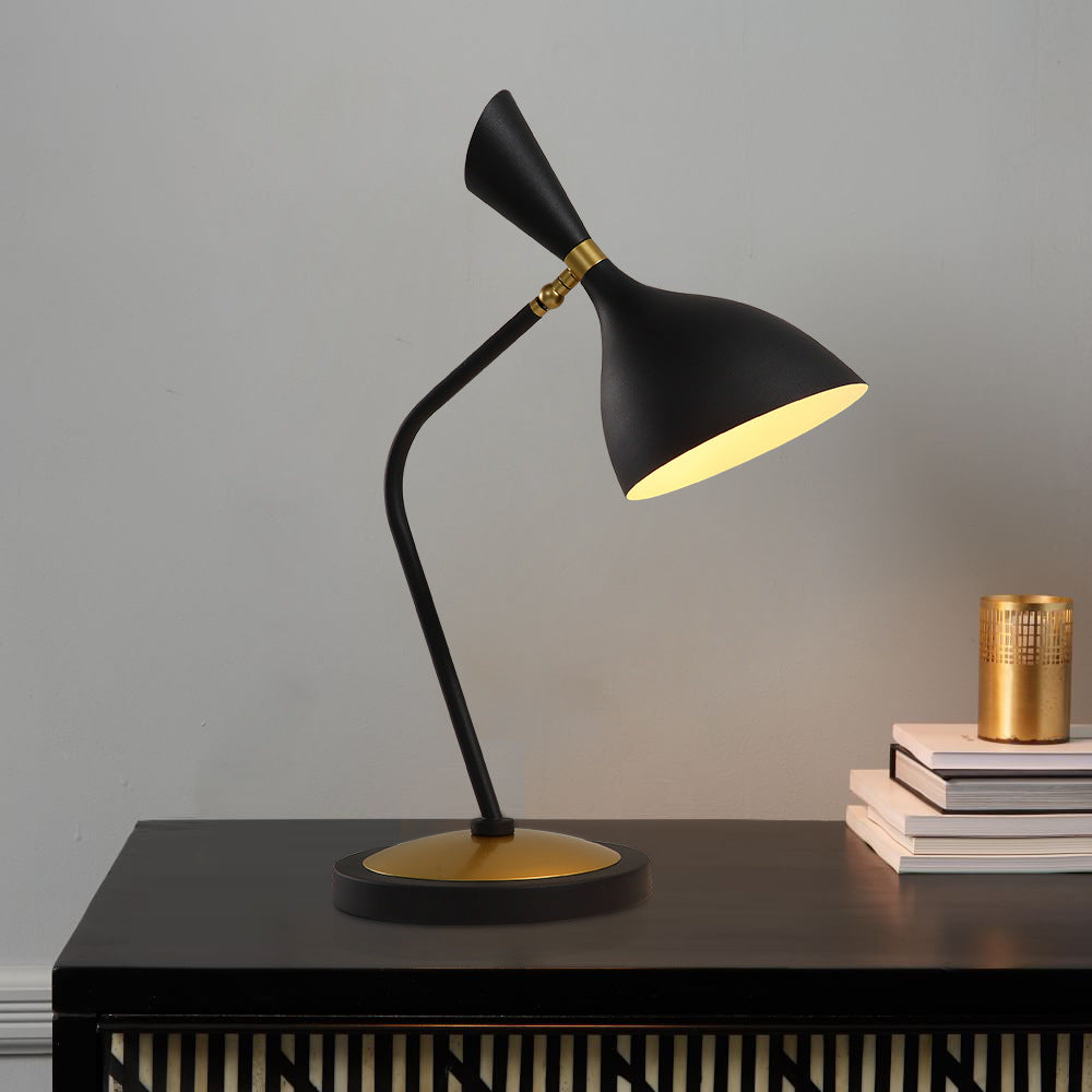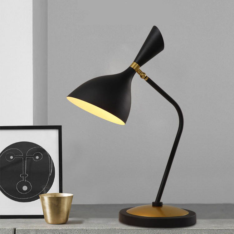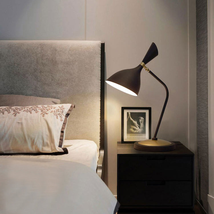 Contemporary Scandinavian Conical Iron Lampshade Round Base 1 - Light Table Lamp For Bedroom