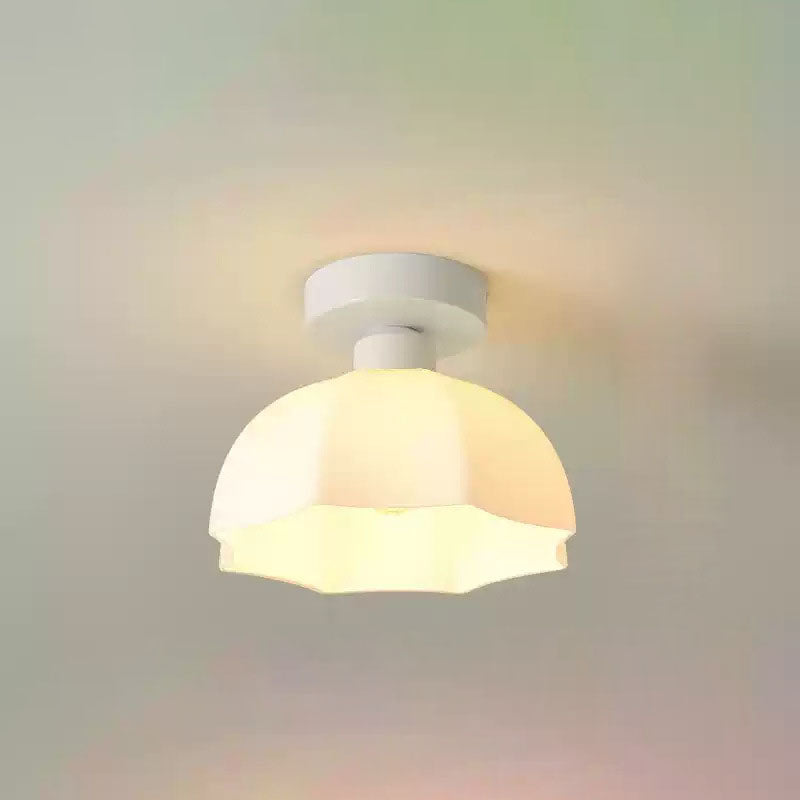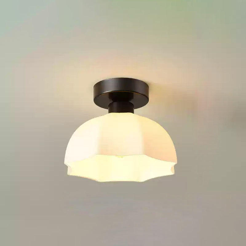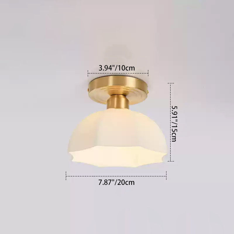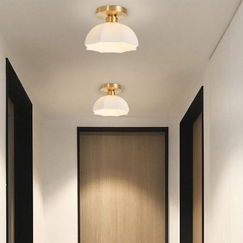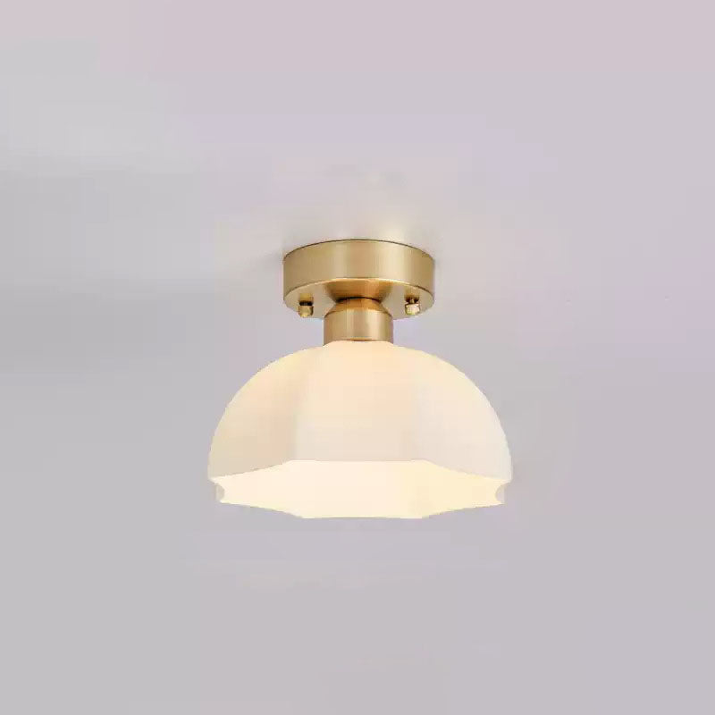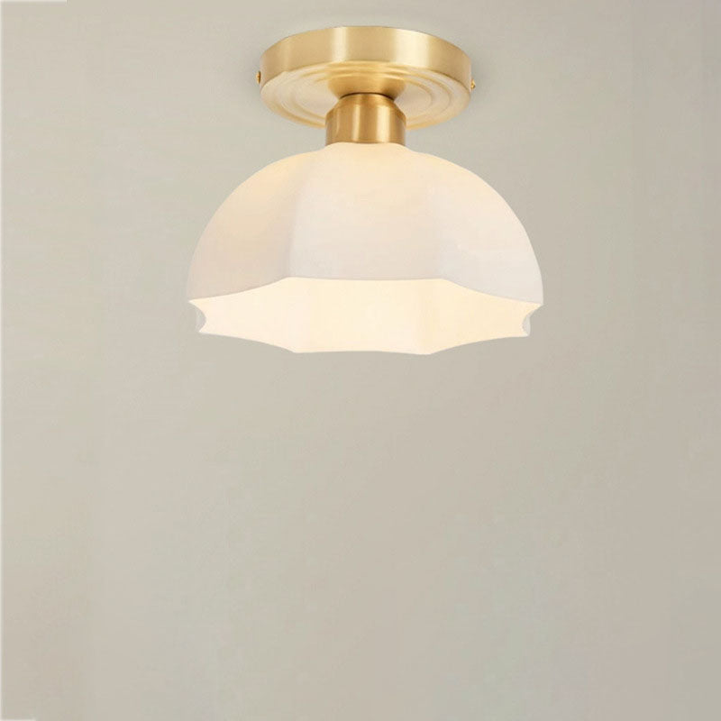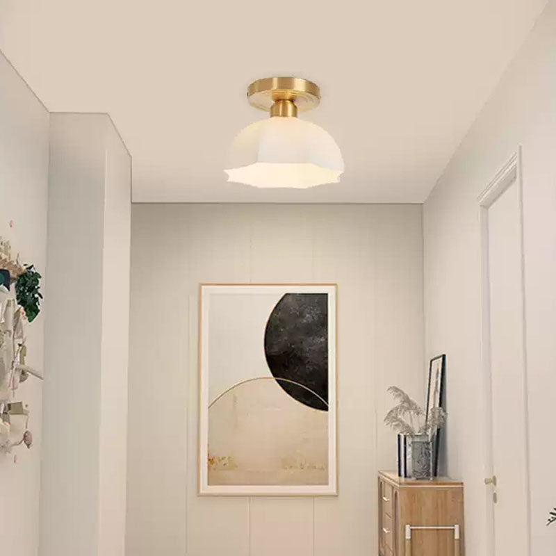 現代的なスカンジナビア銅鉄ガラス傘ラウンド1ライト半フラッシュマウント廊下用シーリングライト