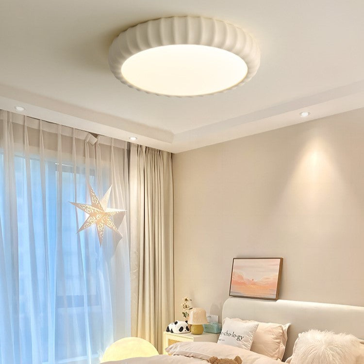 現代的なスカンジナビア風クリーム色の丸型金具樹脂製LEDフラッシュマウントシーリングライト(寝室用)