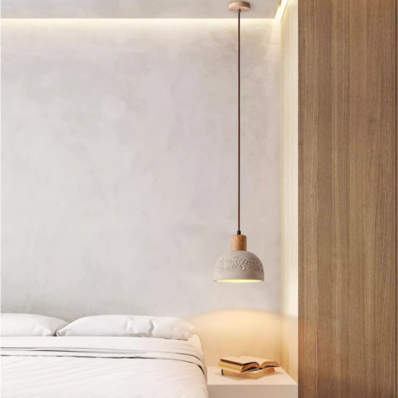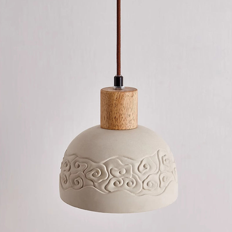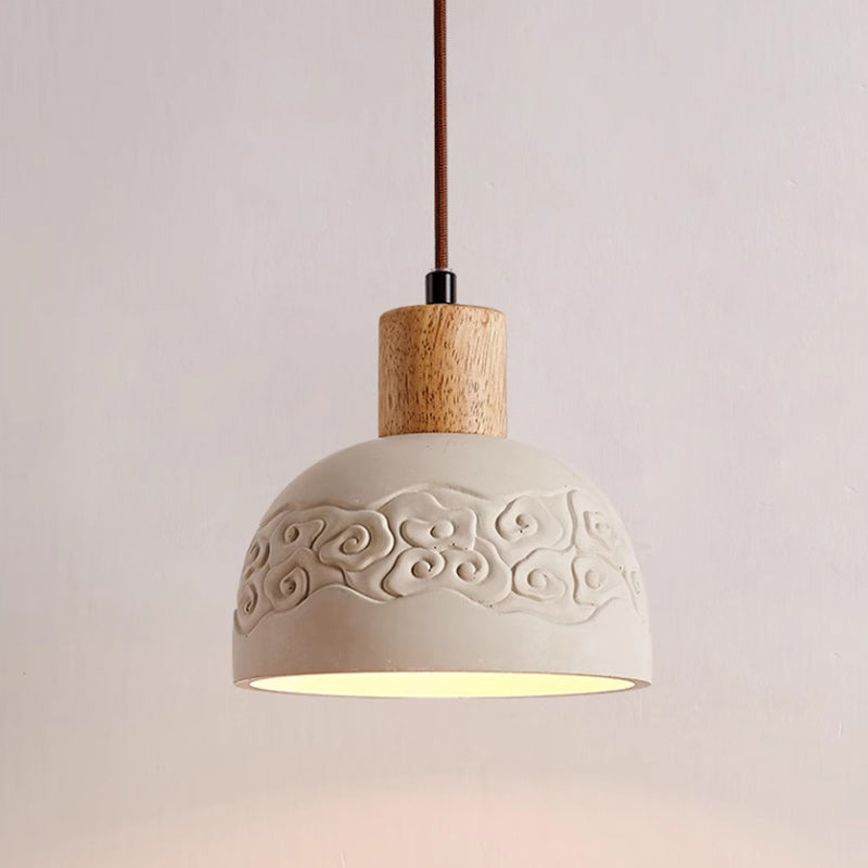 現代的なスカンジナビアドームセメントウッド1ライトペンダントライトリビングルーム用