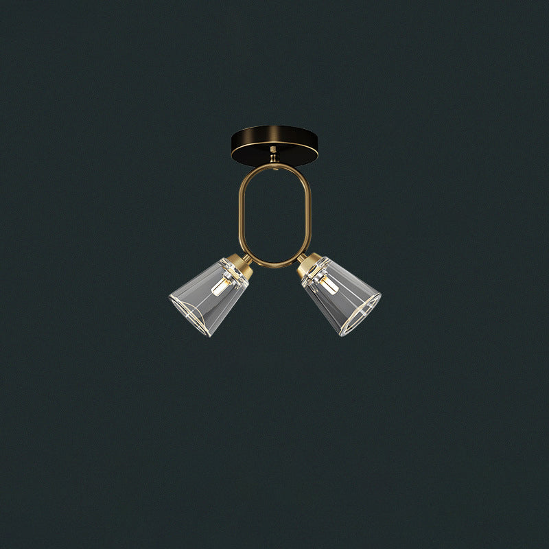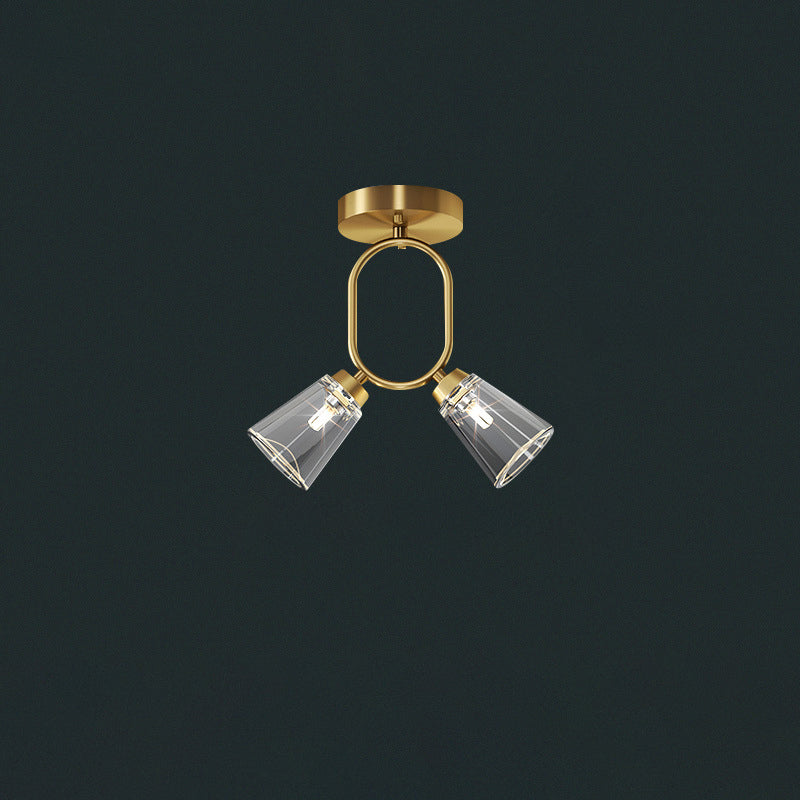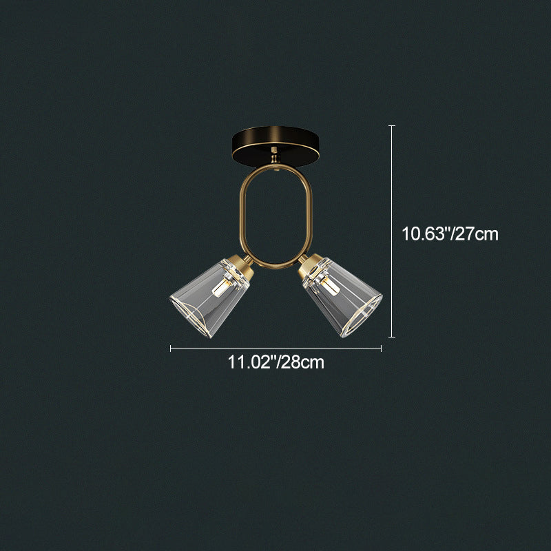 現代的なスカンジナビアのドーム型銅ガラスランプシェードアイアン2灯セミフラッシュマウント天井照明リビングルーム用