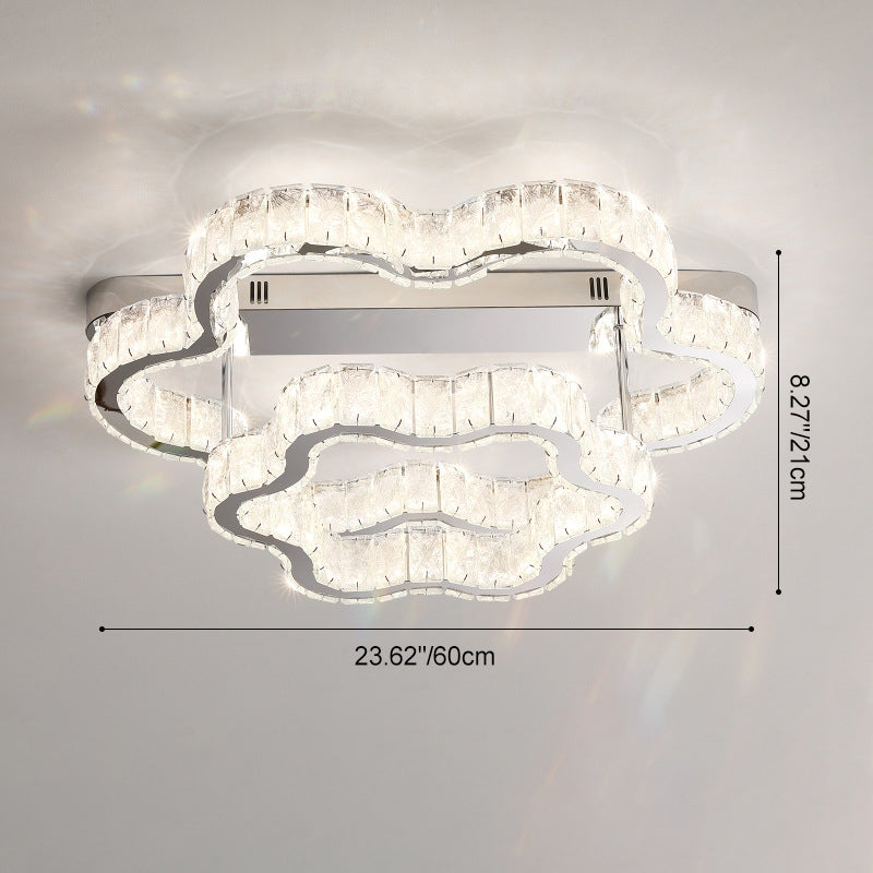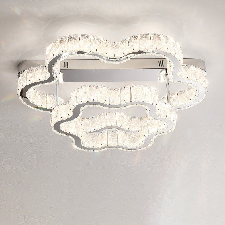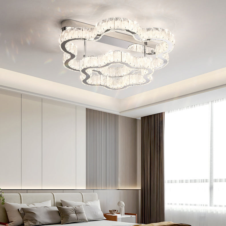 現代的なスカンジナビア風ダブルクラウドステンレススチールクリスタルLEDセミフラッシュマウントシーリングライト寝室用