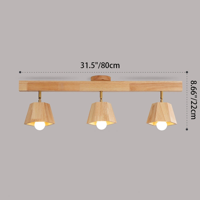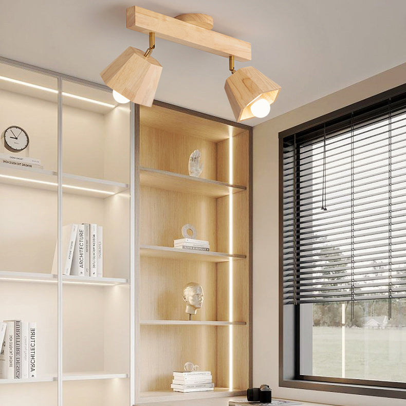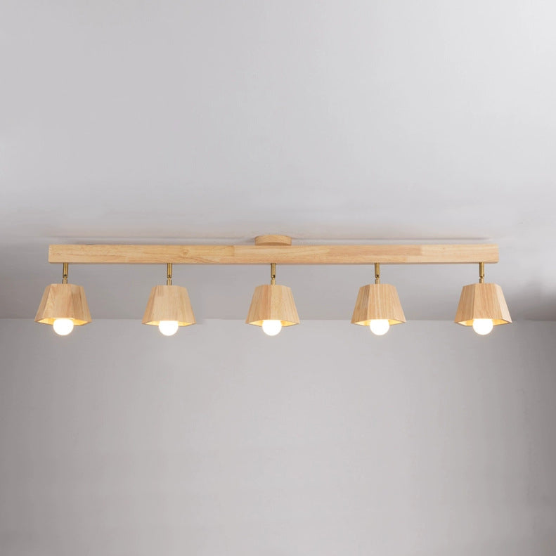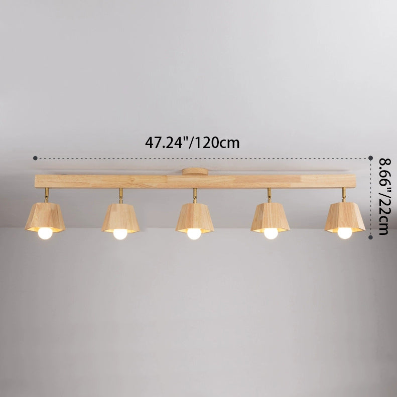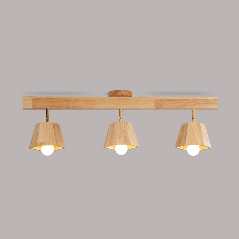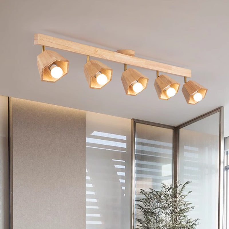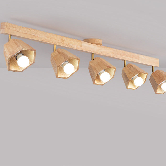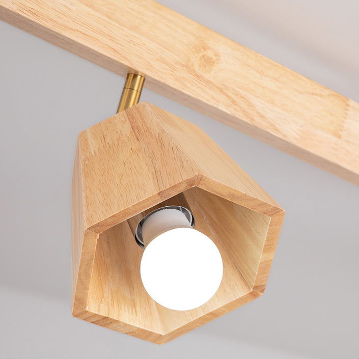 現代的なスカンジナビアの六角形の長いラバーウッド1/2/3/4/5ライトセミフラッシュマウントシーリングライト寝室用