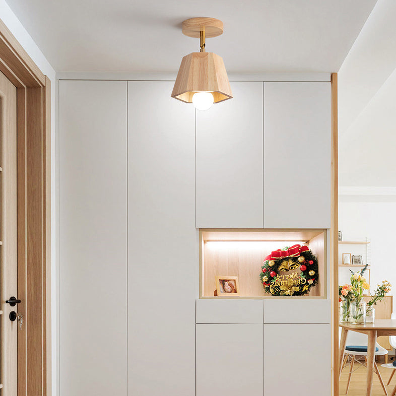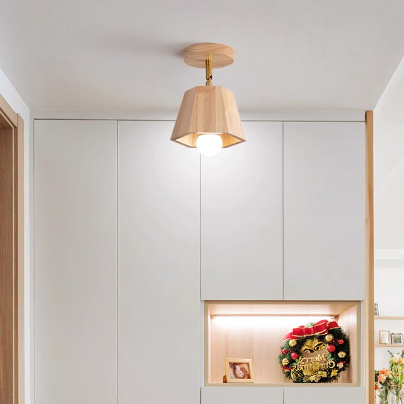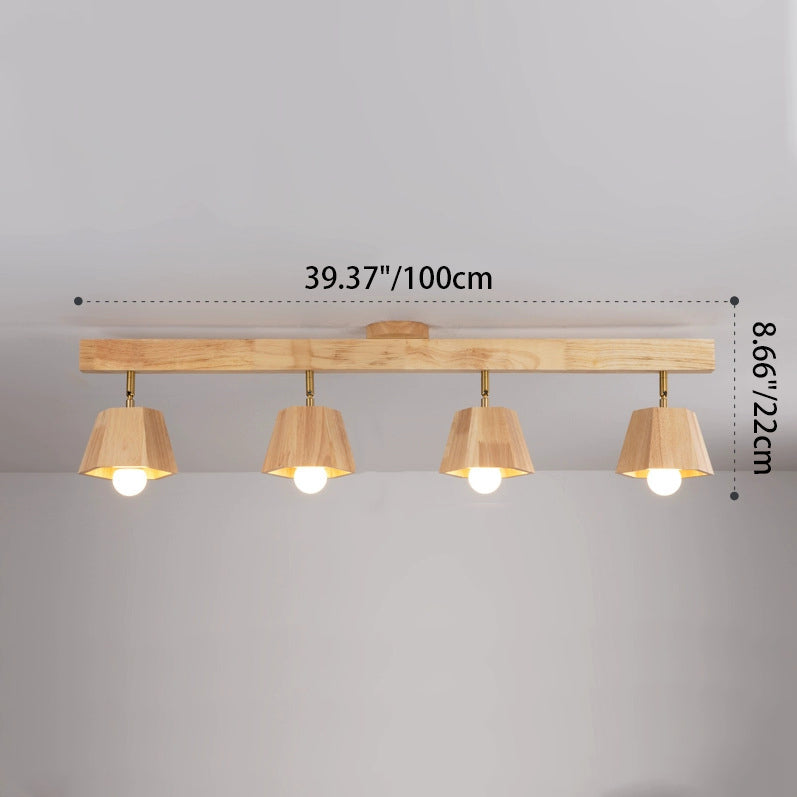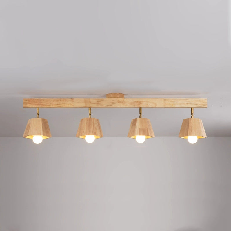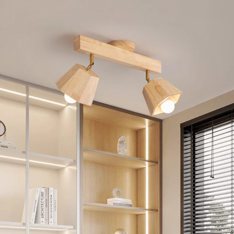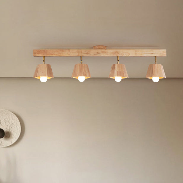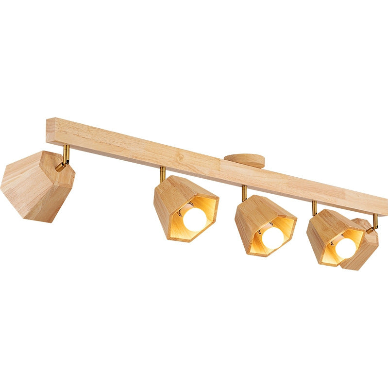 現代的なスカンジナビアの六角形の長いラバーウッド1/2/3/4/5ライトセミフラッシュマウントシーリングライト寝室用