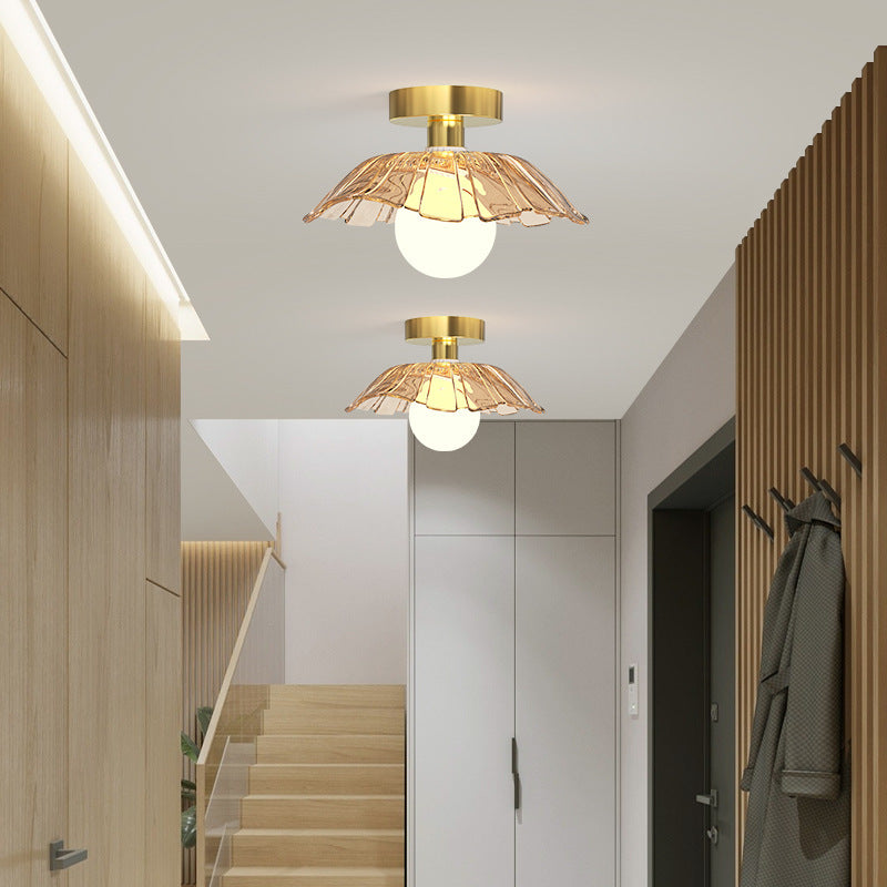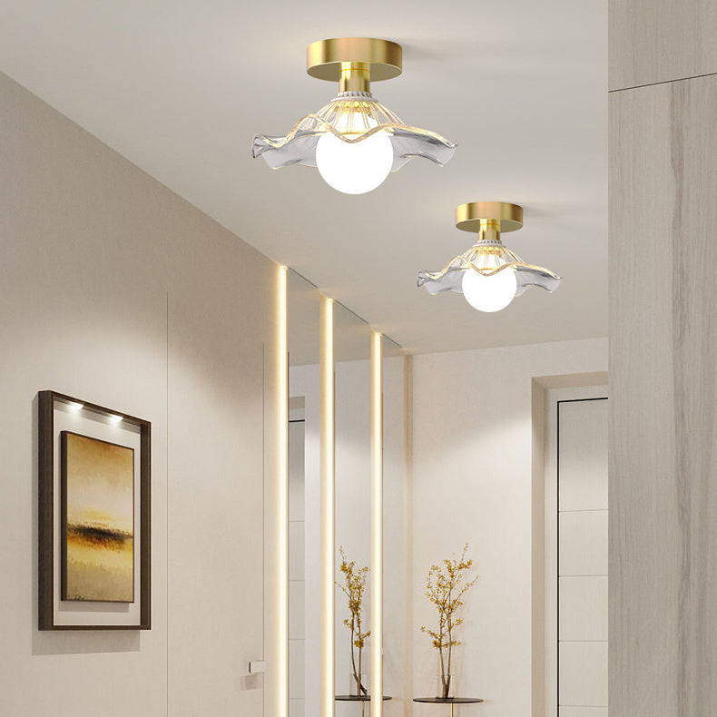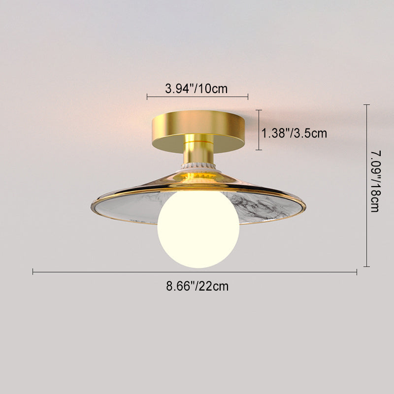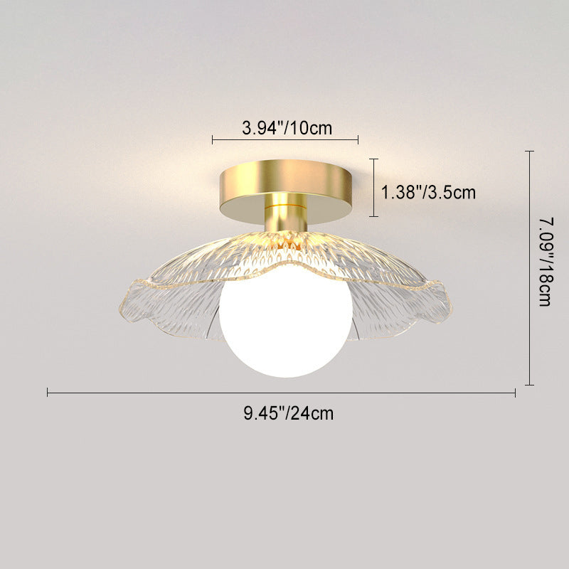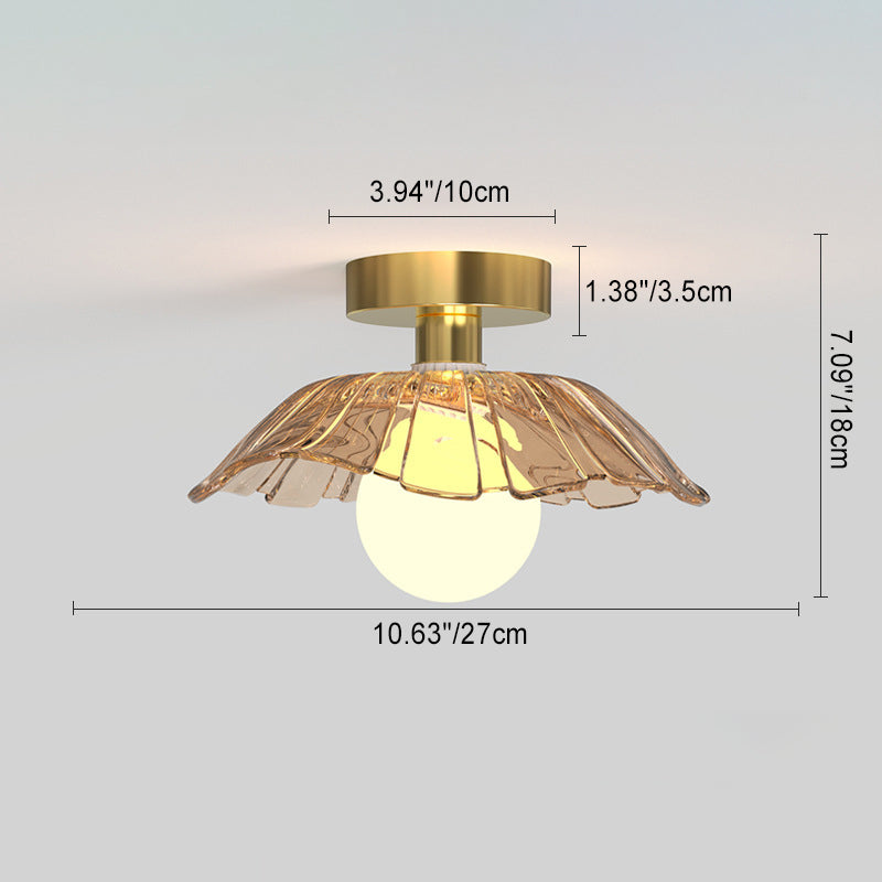 現代的なスカンジナビアの蓮の葉の半円形の球形のストライプのディスクベース鉄ガラス1ライト半フラッシュマウント天井ライトリビングルーム用