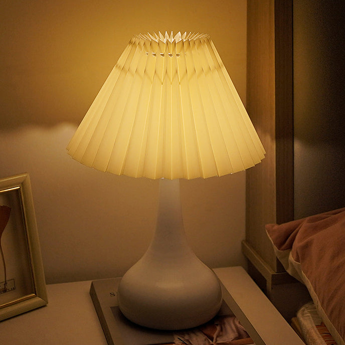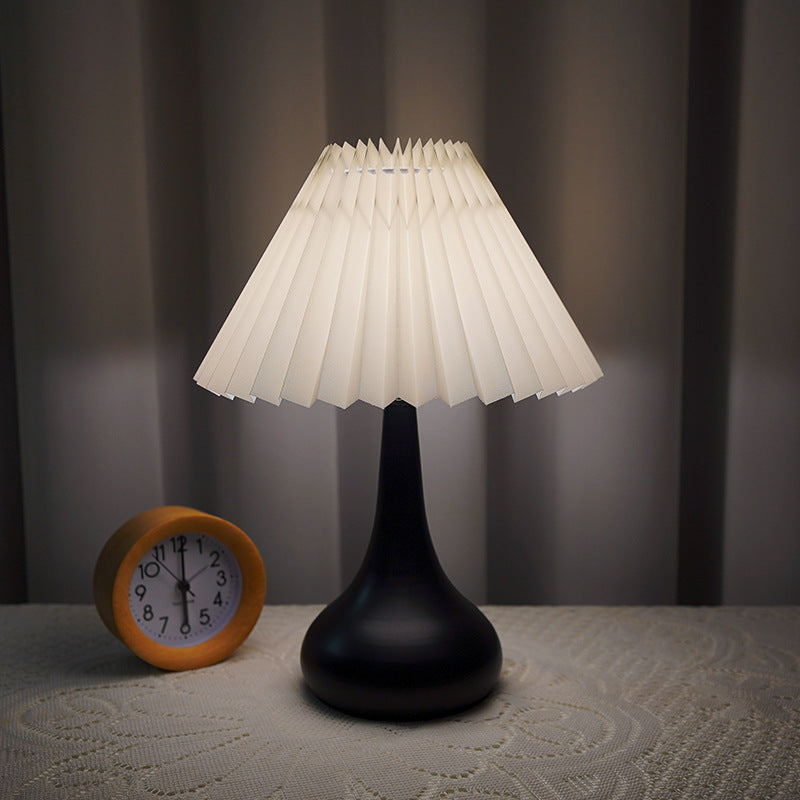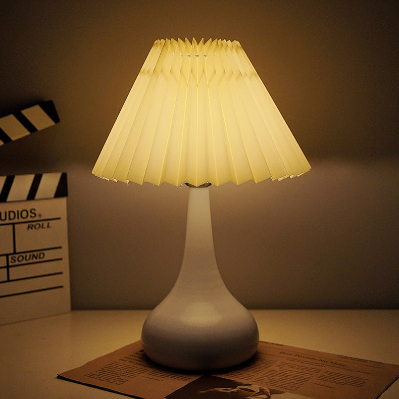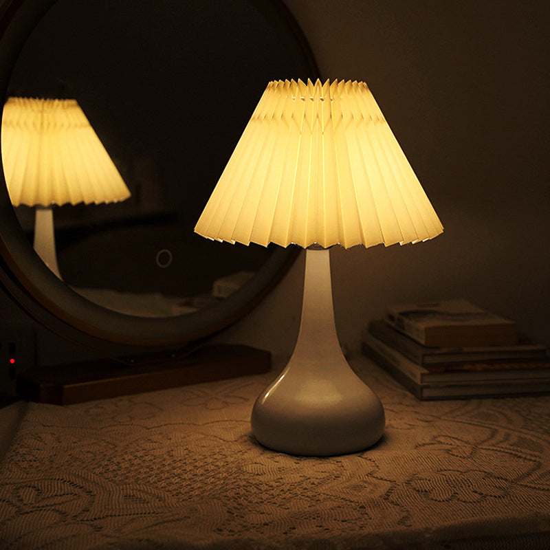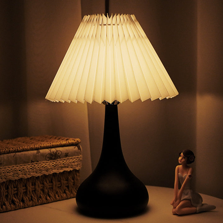 Contemporary Scandinavian Round Cone Fabric Metal 1-Light Table Lamp For Bedroom