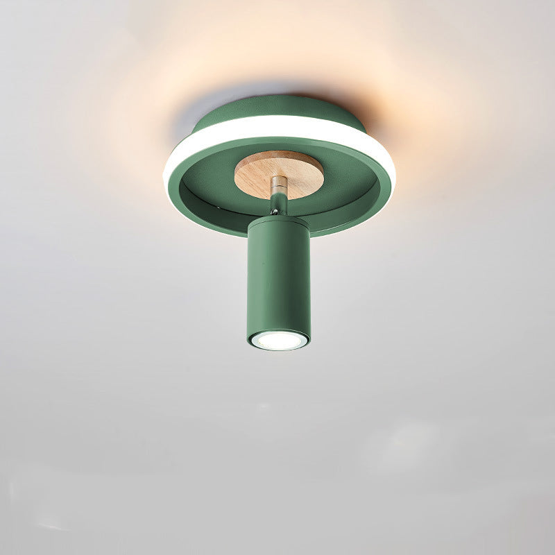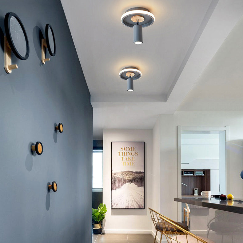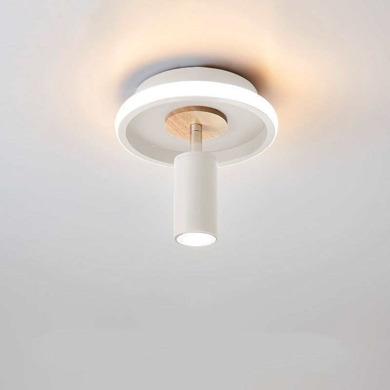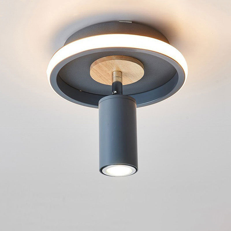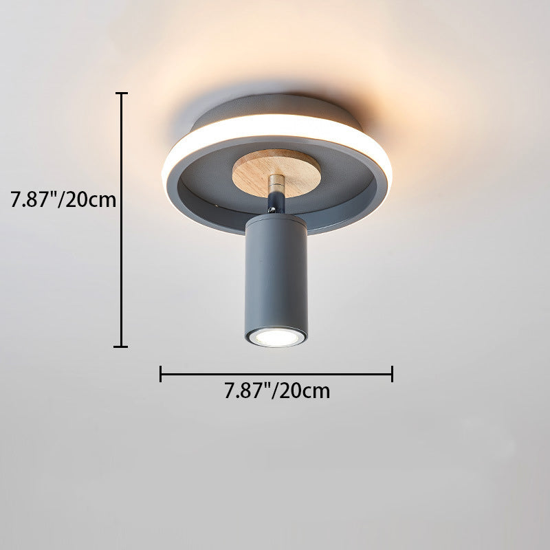 現代的なスカンジナビアの丸型シリンダー、アイアンウッドアクリルLEDスポットライト、寝室用セミフラッシュマウント天井照明