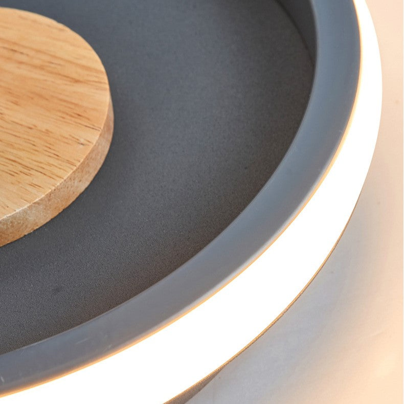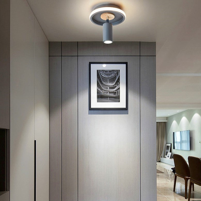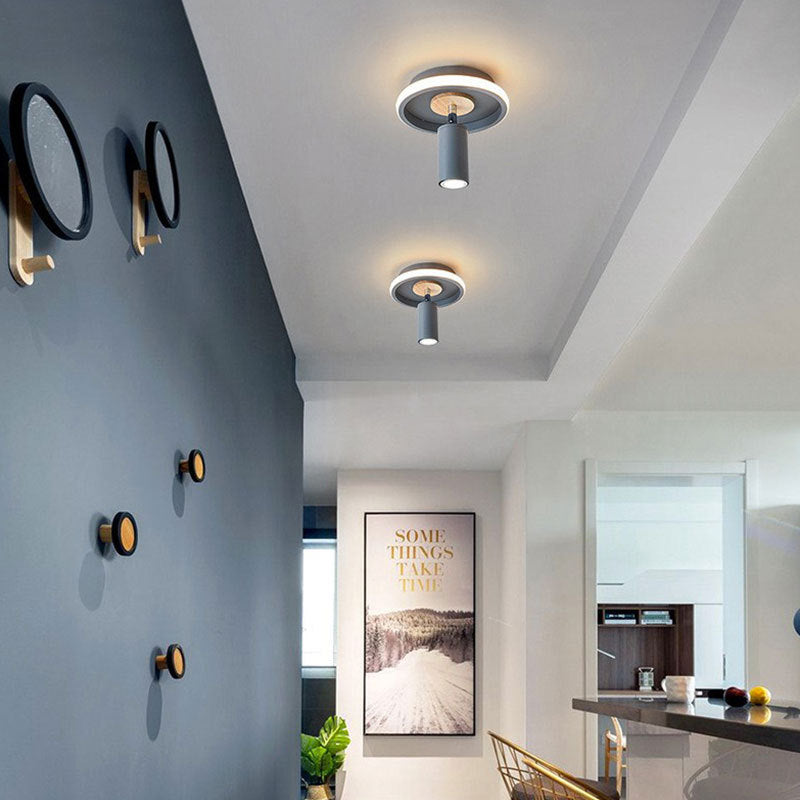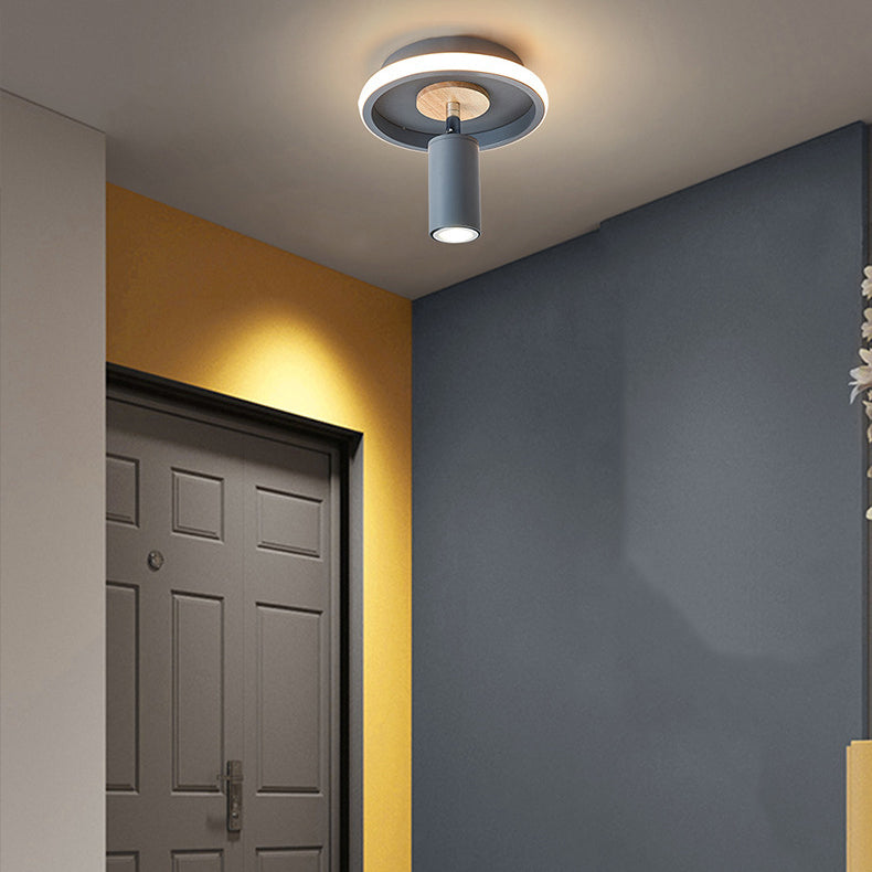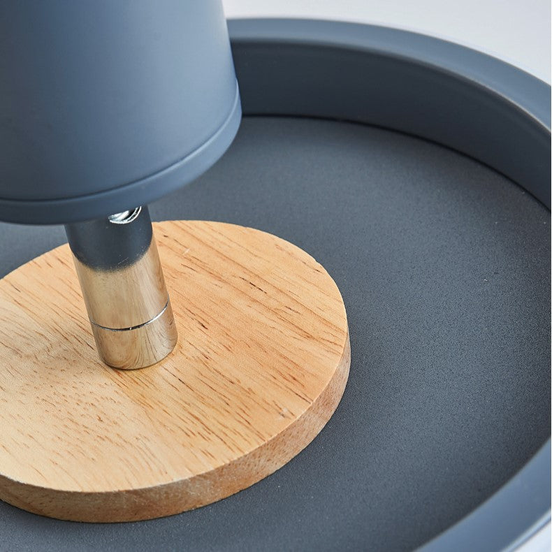 現代的なスカンジナビアの丸型シリンダー、アイアンウッドアクリルLEDスポットライト、寝室用セミフラッシュマウント天井照明