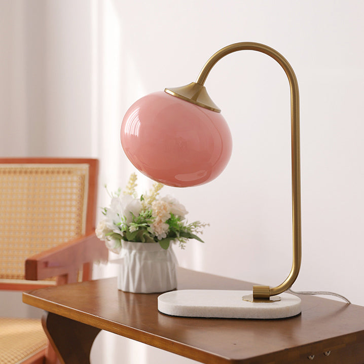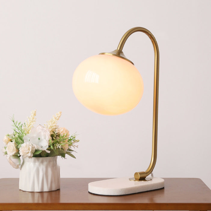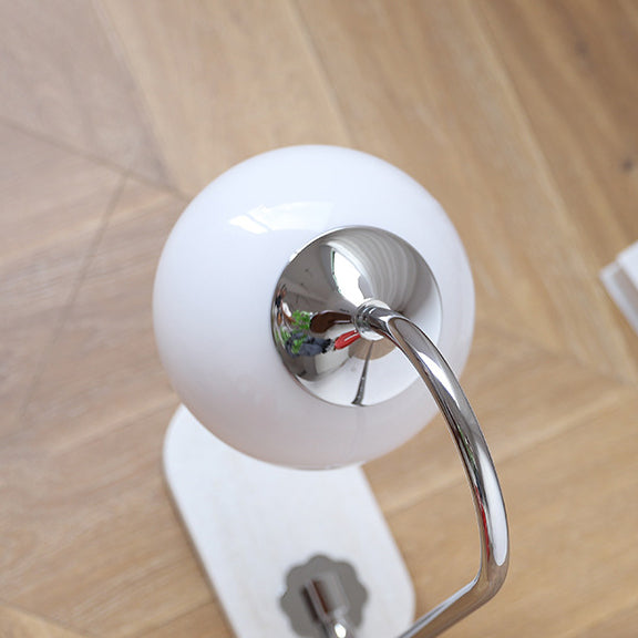 Contemporary Scandinavian Round Glass Iron Marble 1-Light Table Lamp For Living Room