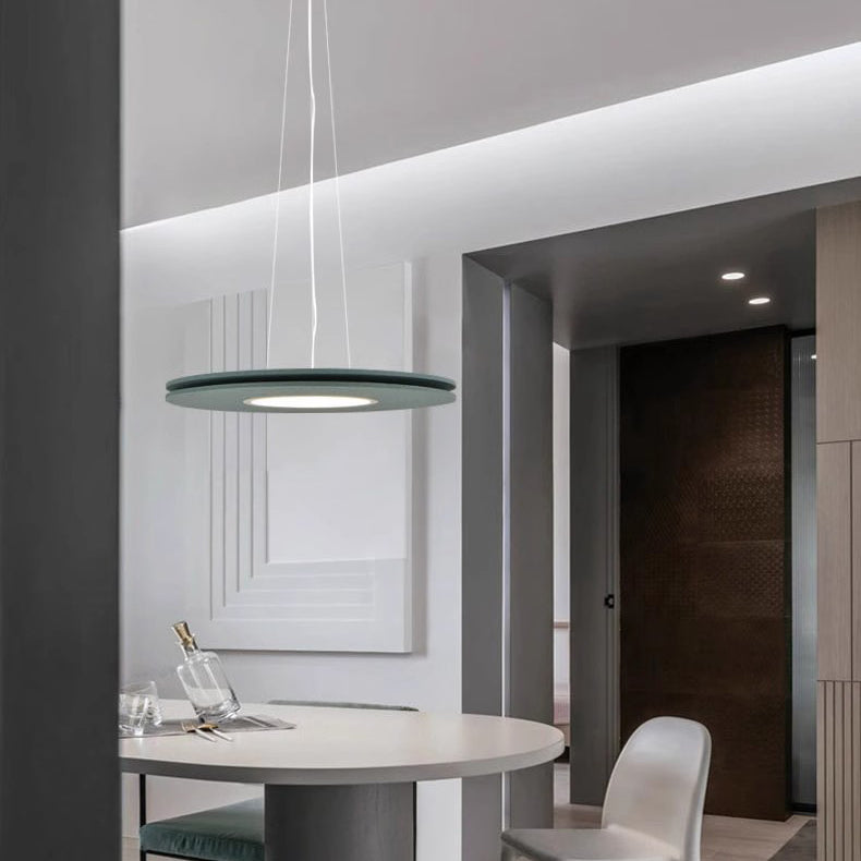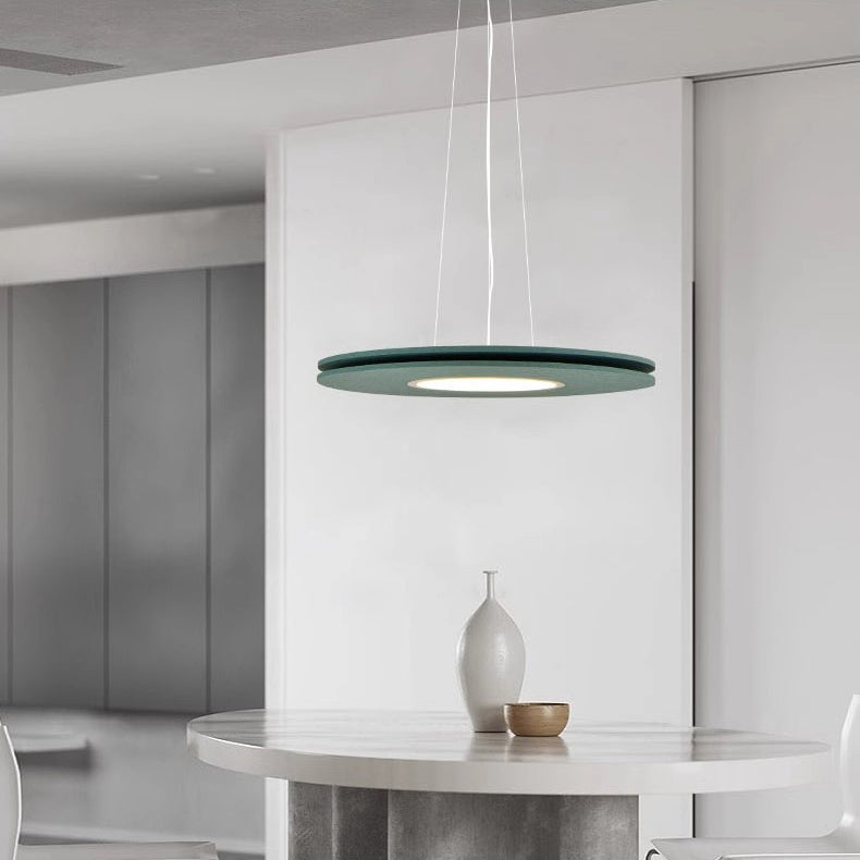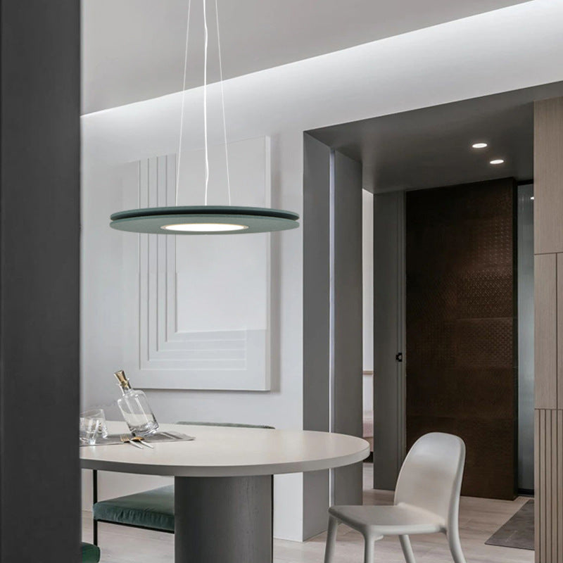 ダイニングルームに最適な、現代的なスカンジナビア風ラウンド型アイアンフェルトLEDシャンデリア