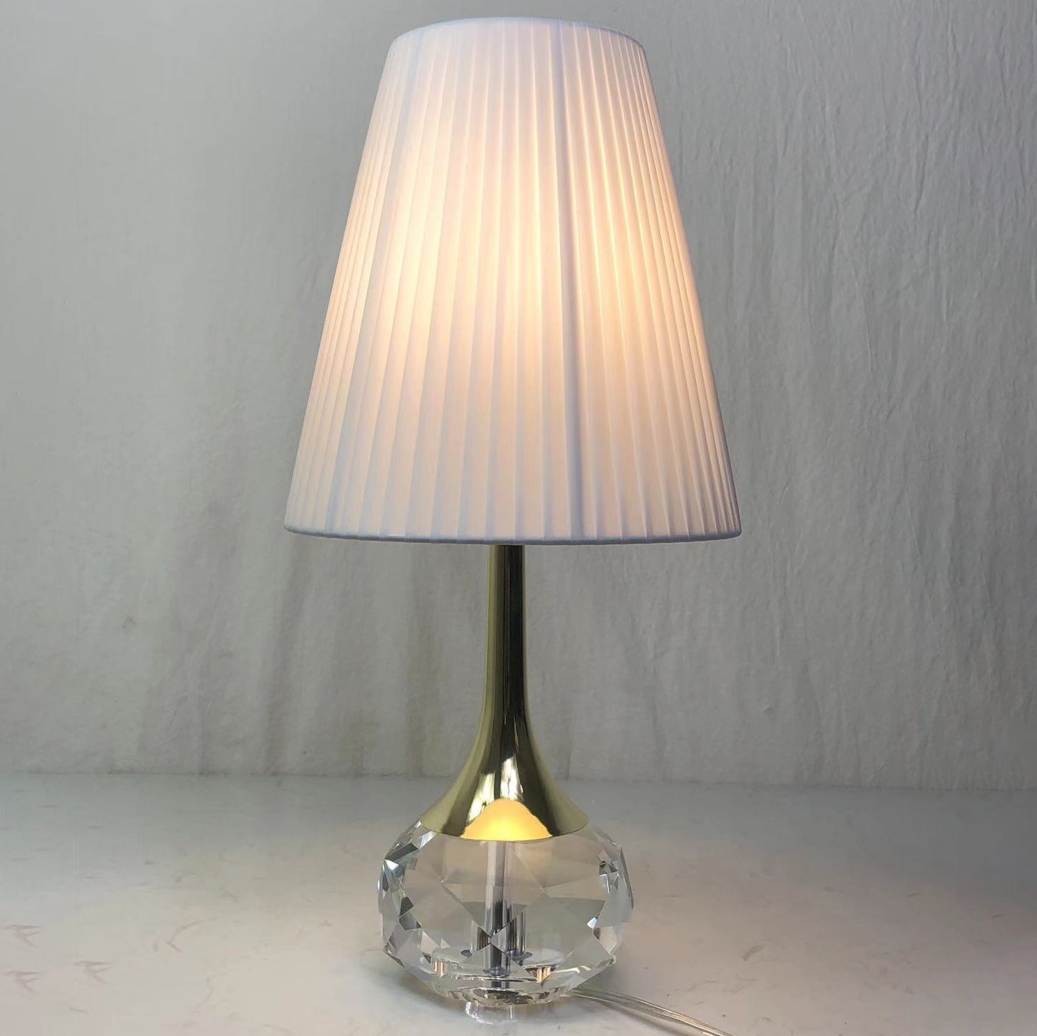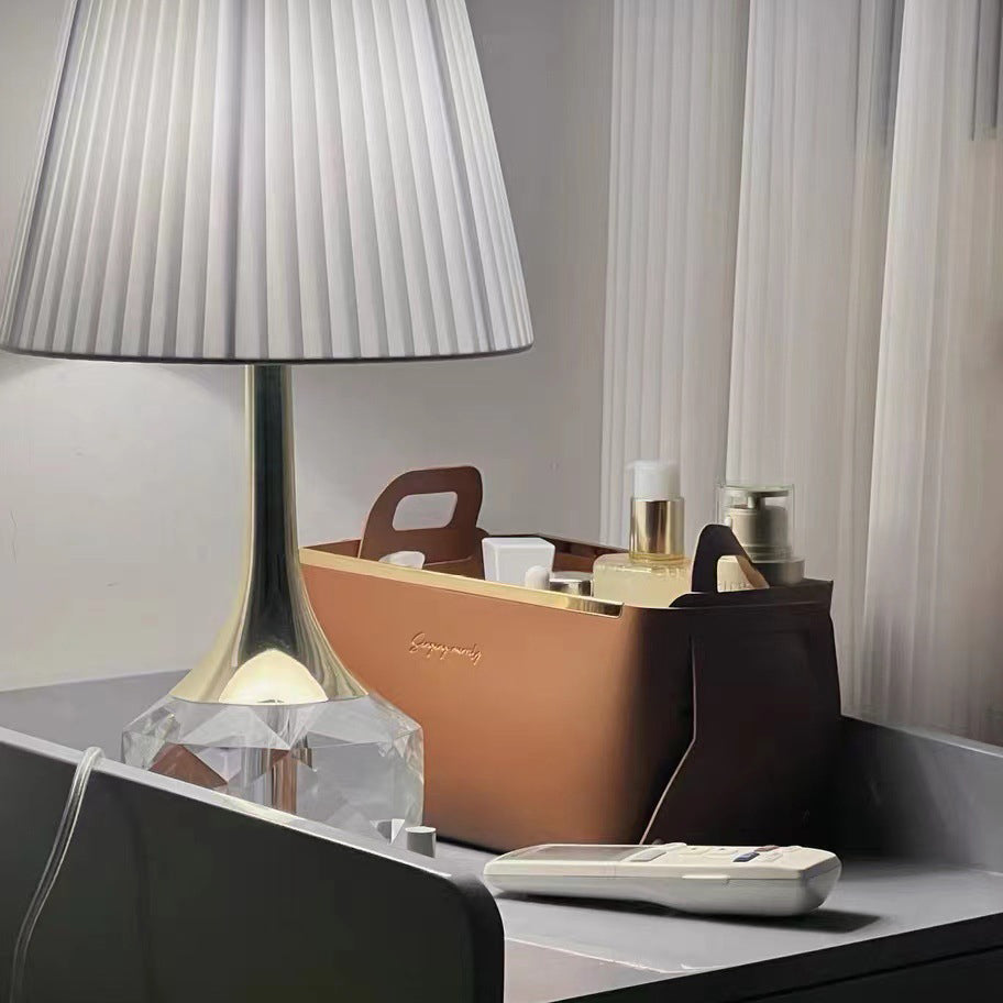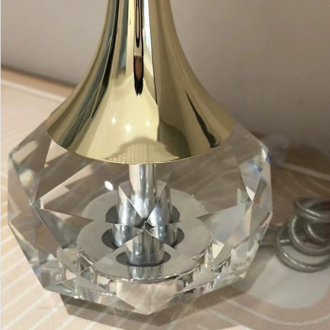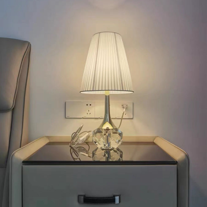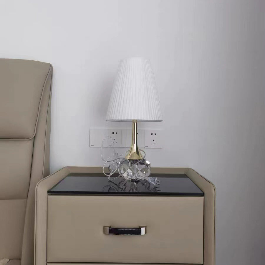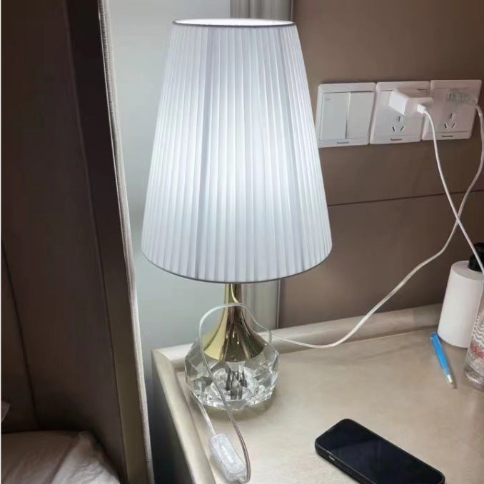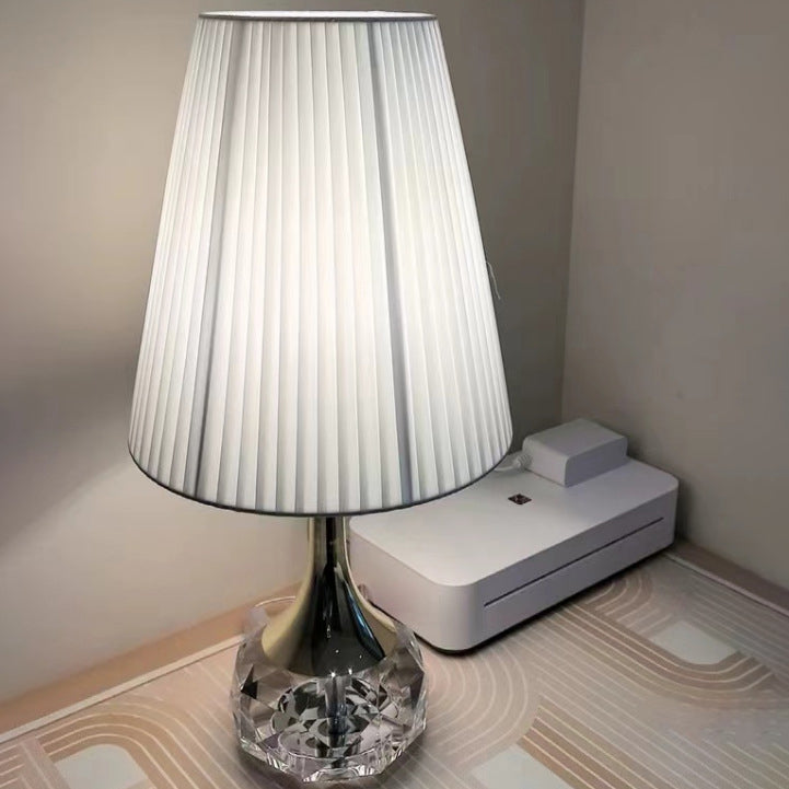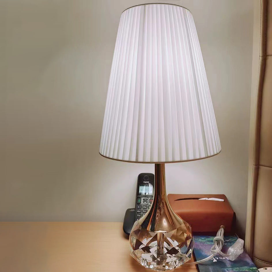 Modern Luxury Bottle Round Table Pleated Hardware Crystal Fabric 1-Light Table Lamp For Bedroom