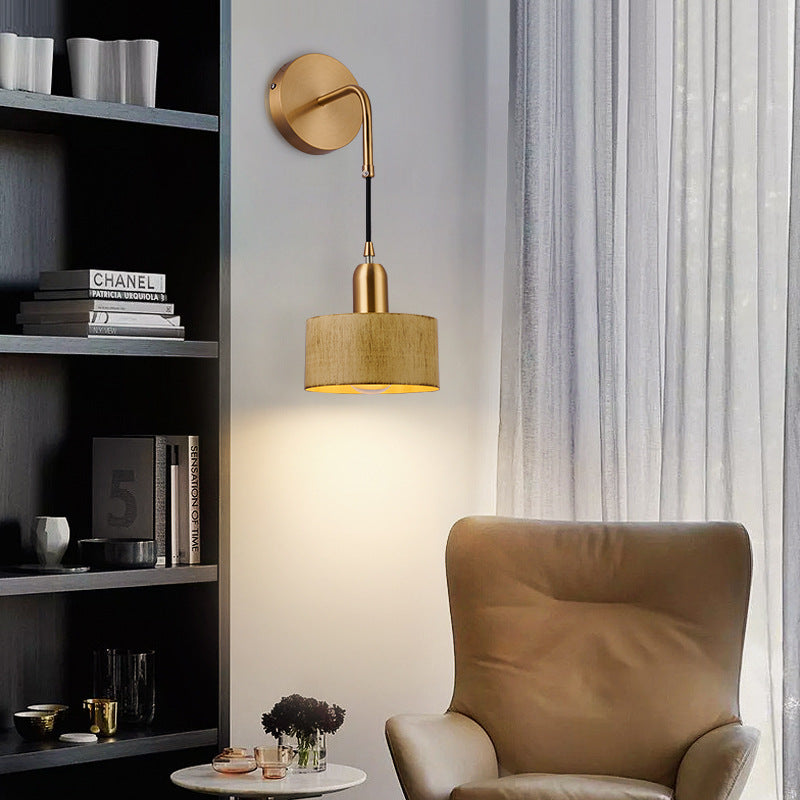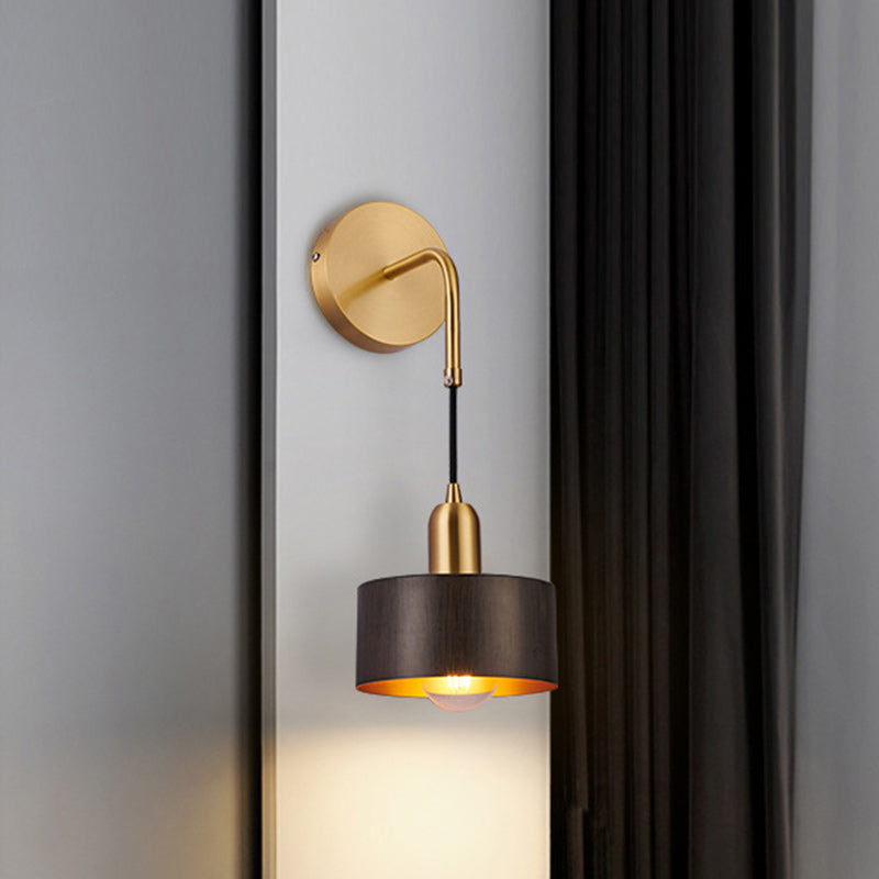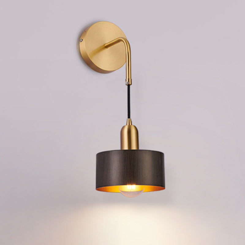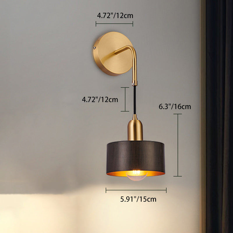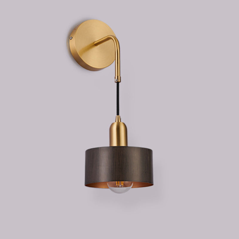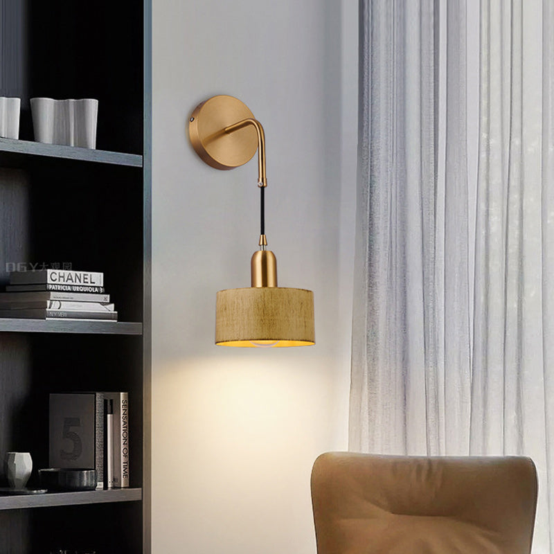 現代的なスカンジナビアの丸型木製ランプシェード、アイアン製 1灯 リビングルーム用壁取り付け用燭台ランプ