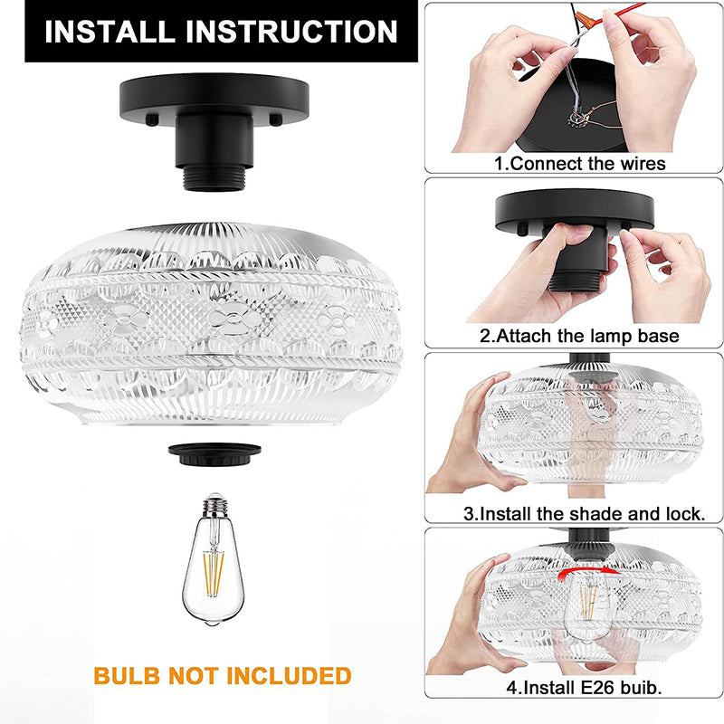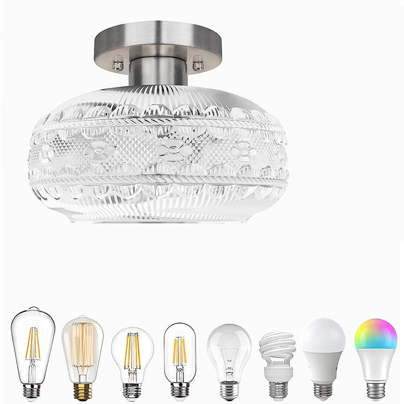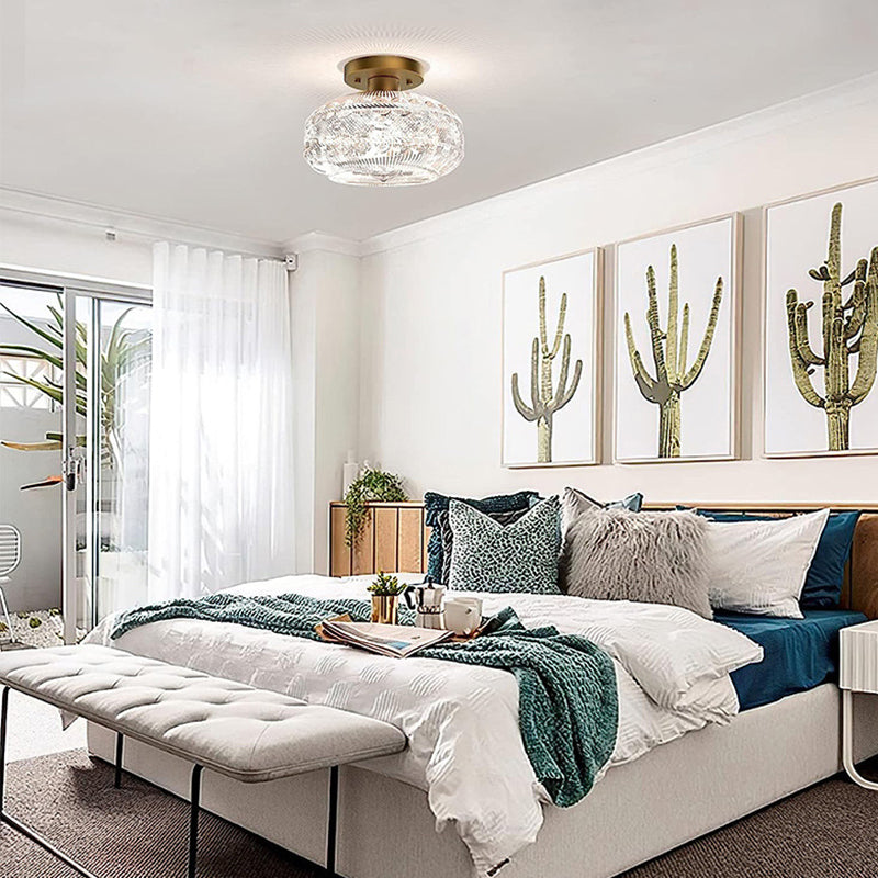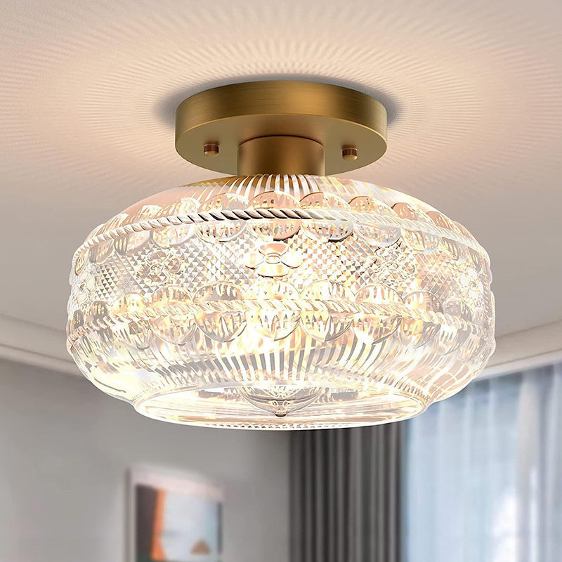 現代的なシンプルなハードウェアガラスラウンドシェード1ライトセミフラッシュマウントシーリングライトリビングルーム用