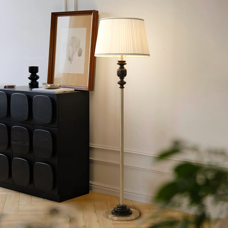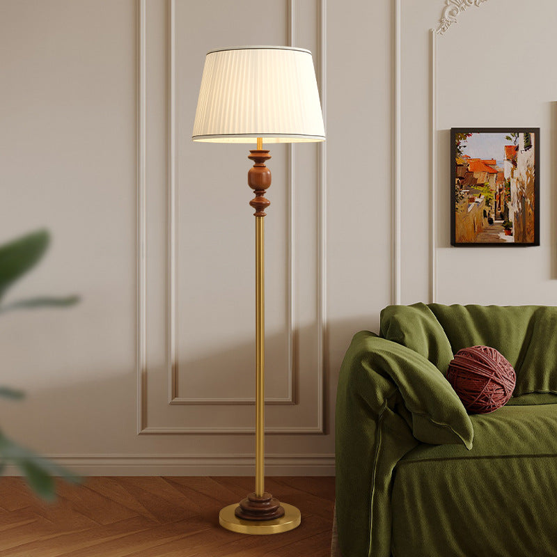 Contemporary Simplicity Cylinder Pleated Fabric Shade Solid Wood Hardware 1-Light Standing Floor Lamp For Living Room