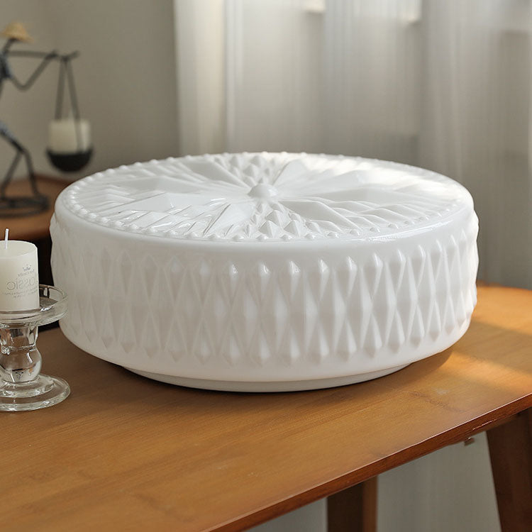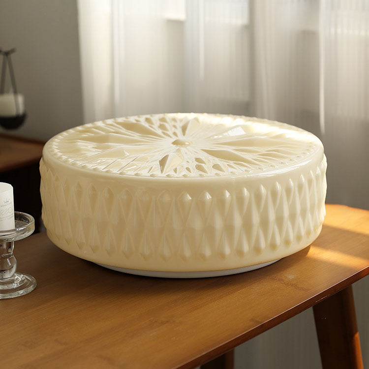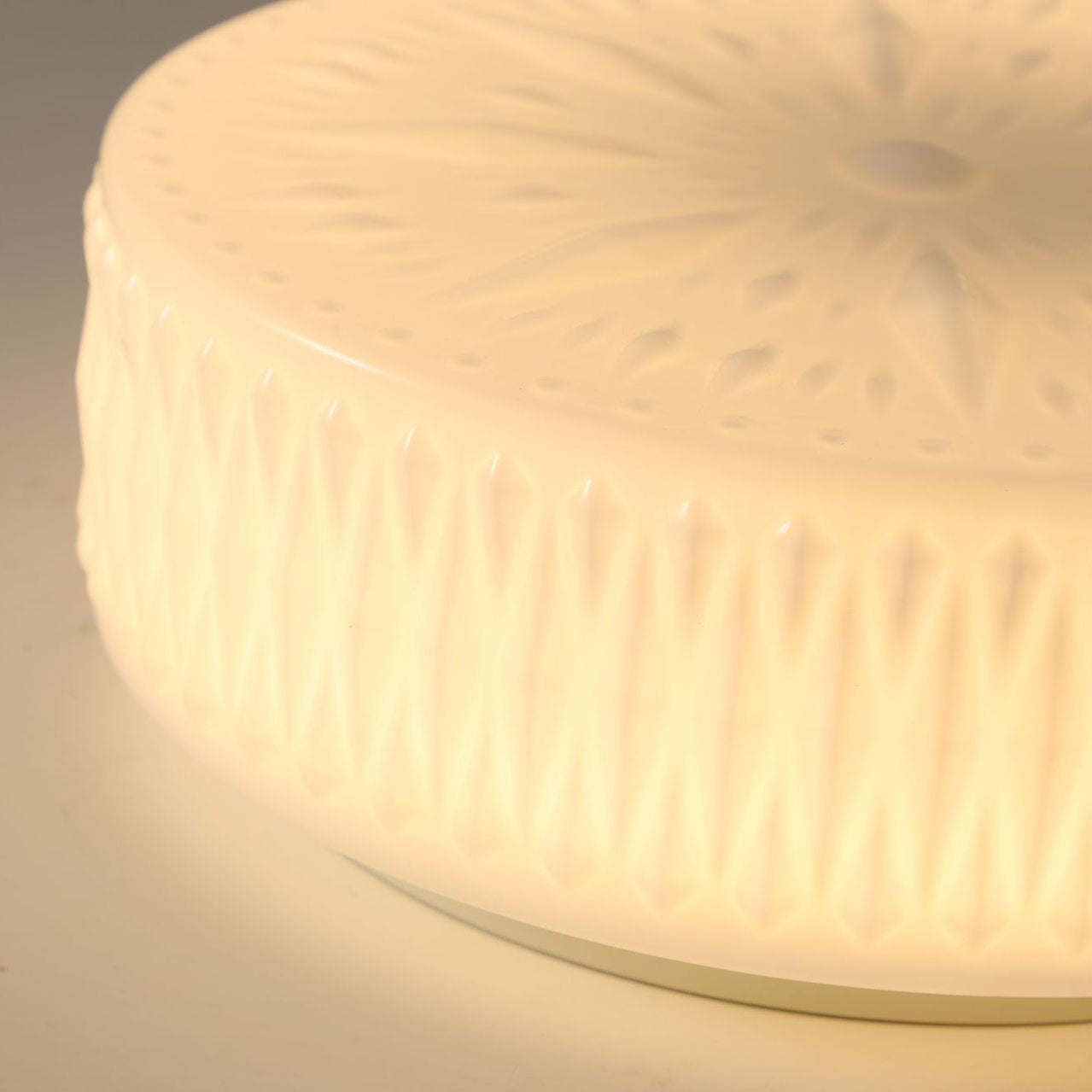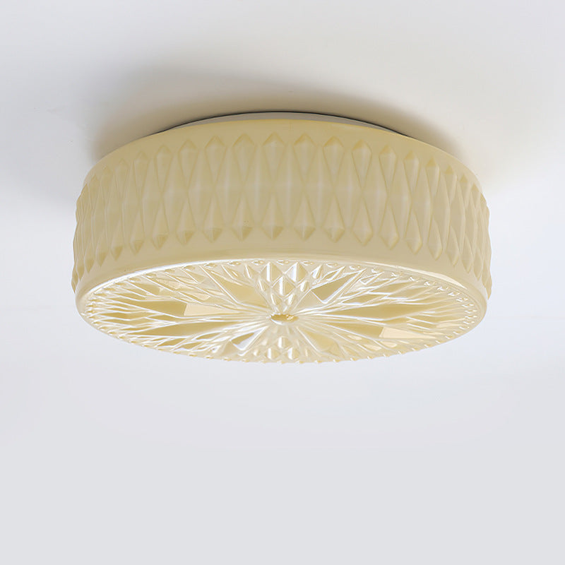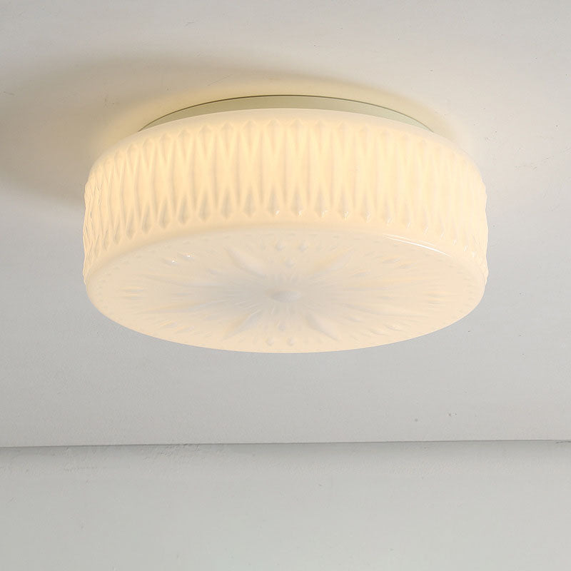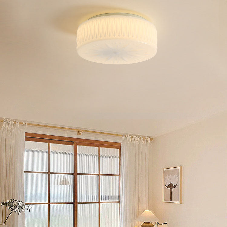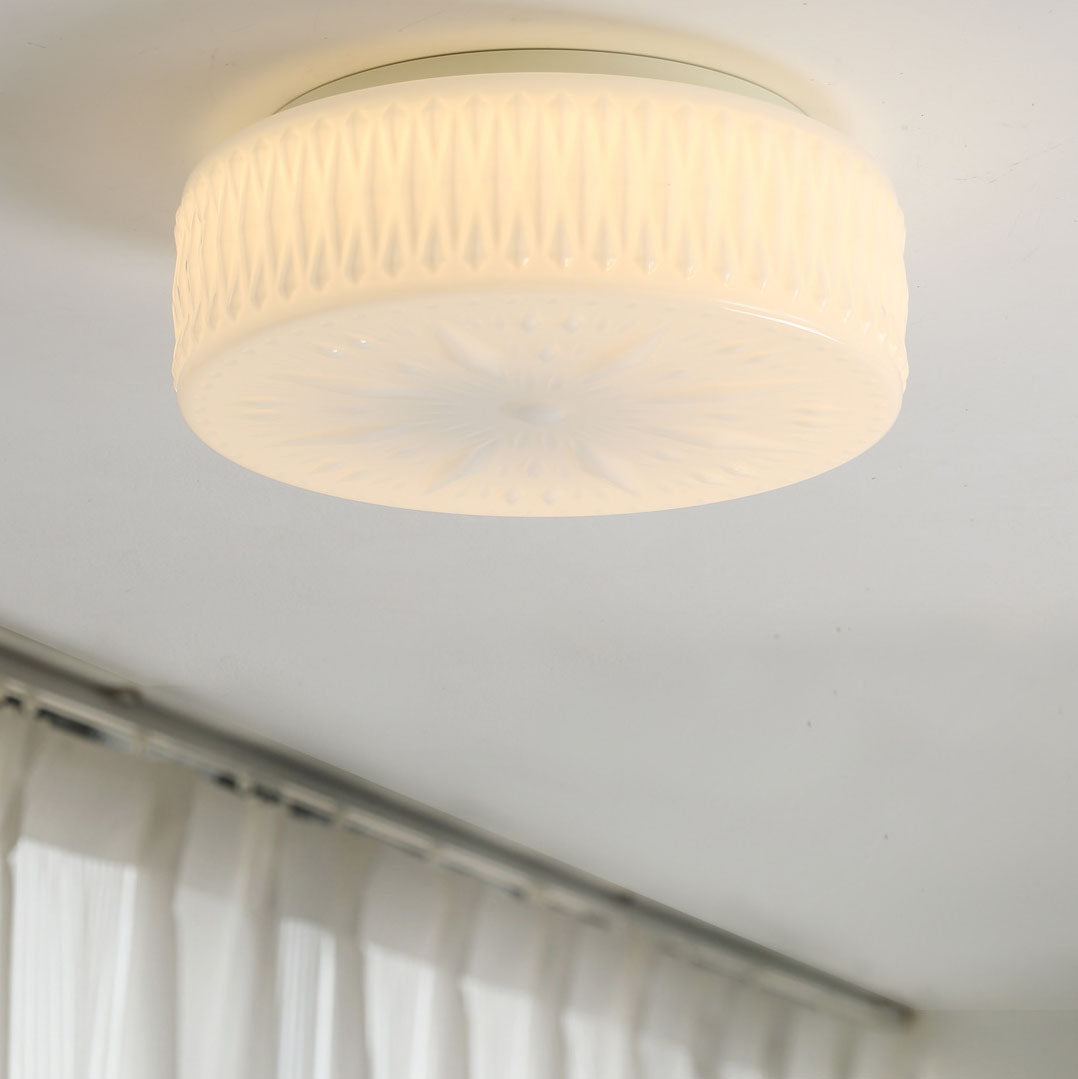現代的なシンプルさを備えた円筒形の彫刻ガラスLEDフラッシュマウントシーリングライト(リビングルーム用)