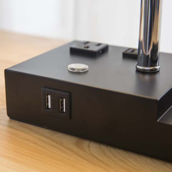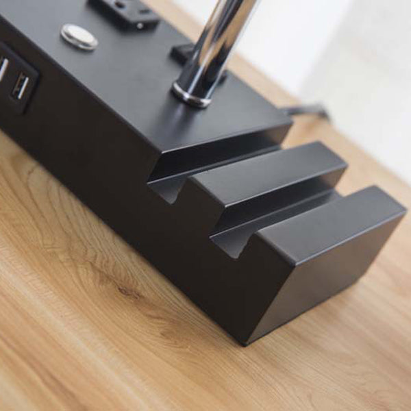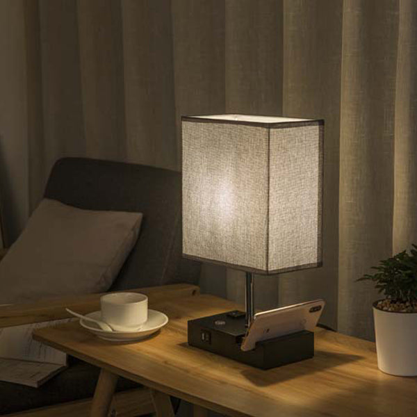 Contemporary Simplicity Fabric Rectangular Shade Iron Phone Holder 1-Light Table Lamp For Bedroom