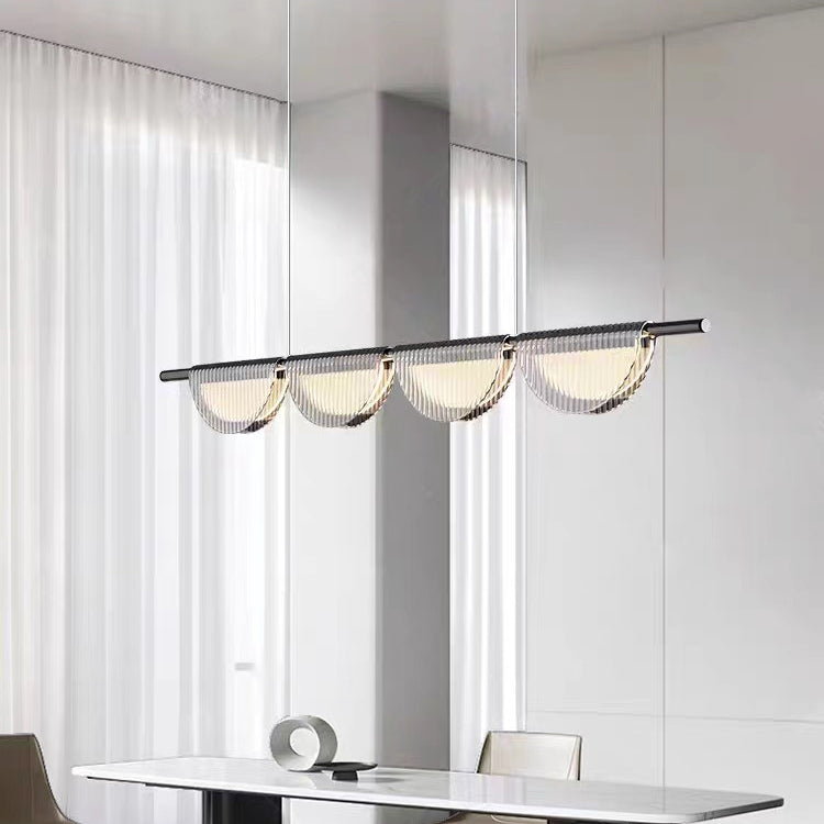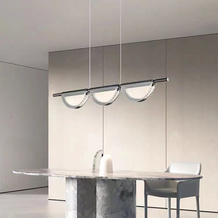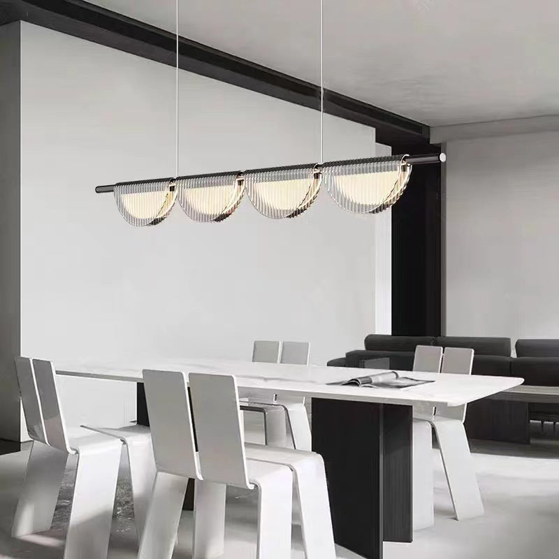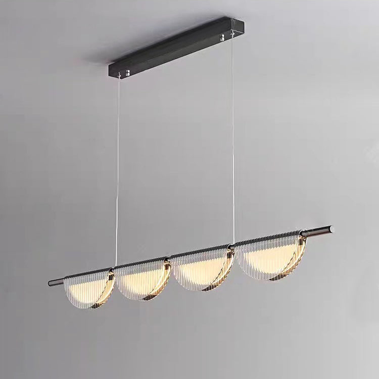 現代的なシンプルさを備えたガラスアクリル製半円形シェードLEDアイランドライトシャンデリア(リビングルーム用)