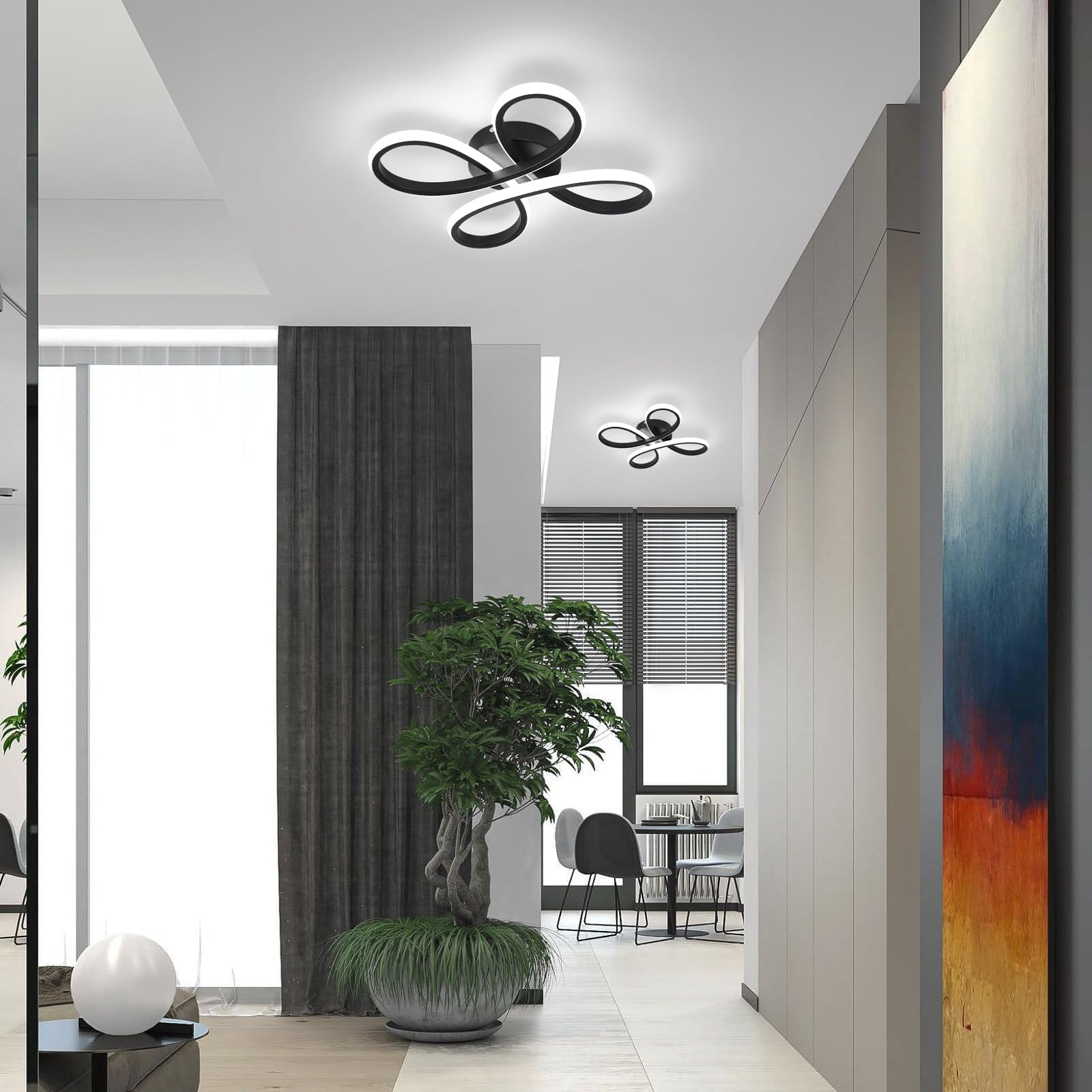 現代的なシンプルさが特徴のアイアンチャイニーズノットアクリルLEDセミフラッシュマウントシーリングライト(寝室用)