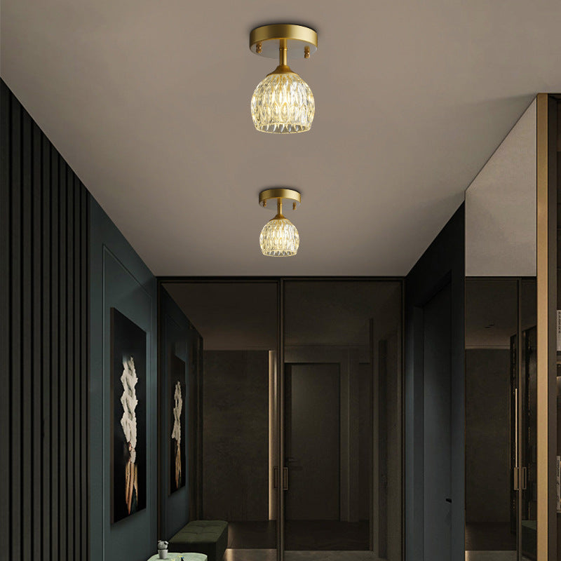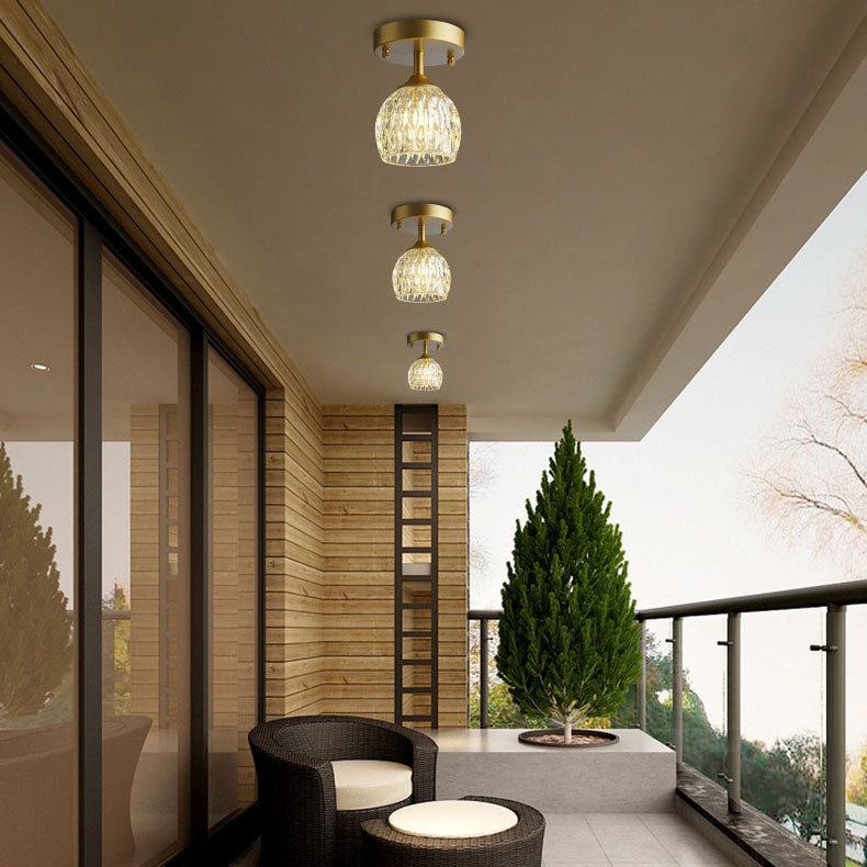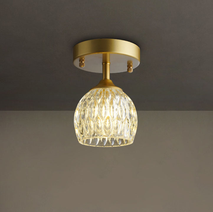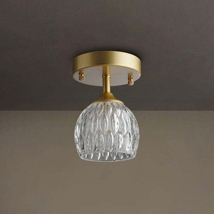 ヨーロピアンライト 高級ラウンドヘッド アイアンガラス 1灯 セミフラッシュマウントライト