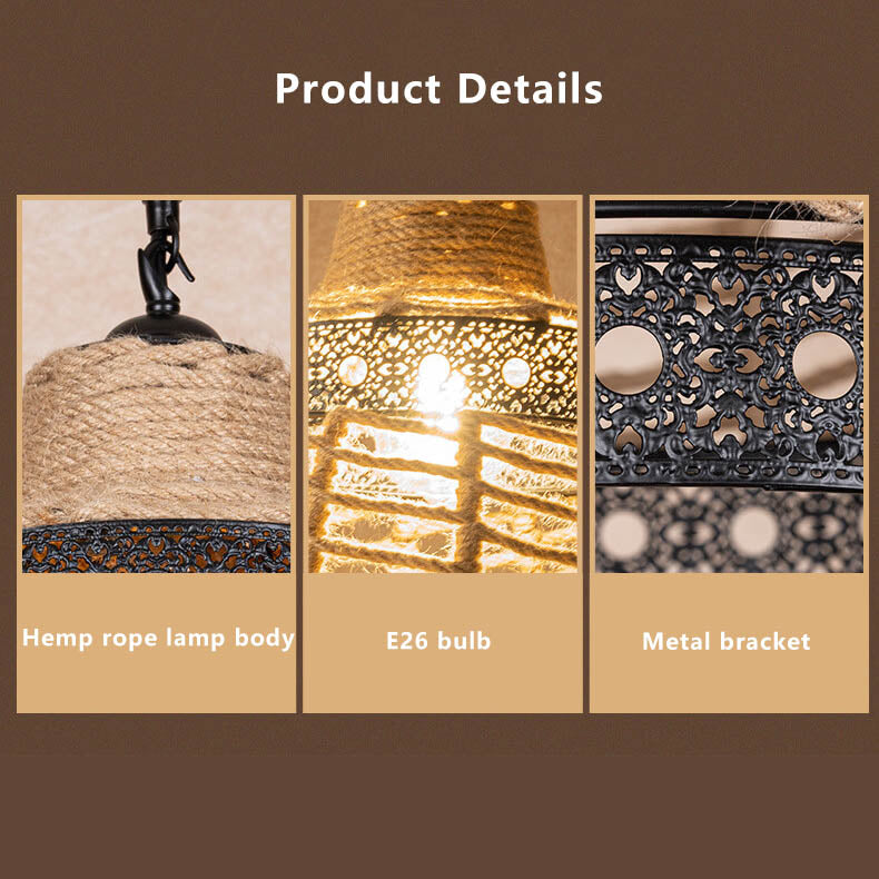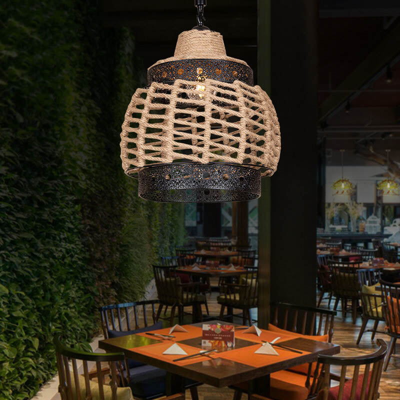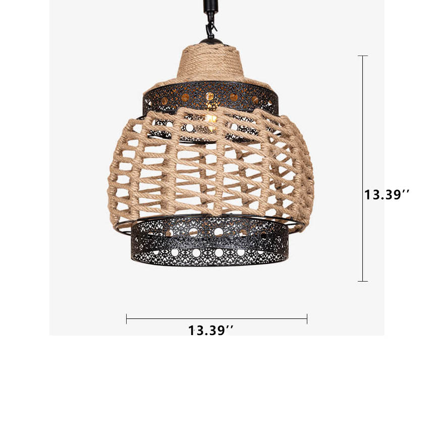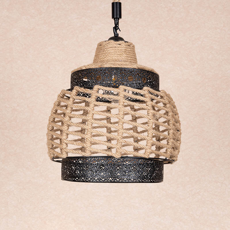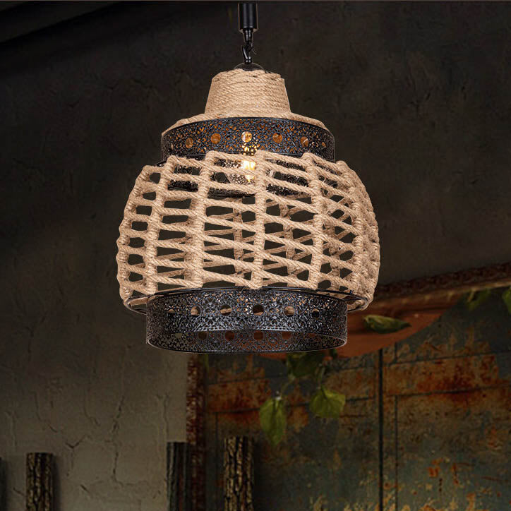 工業用麻ロープ編みラウンド1灯ペンダントライト