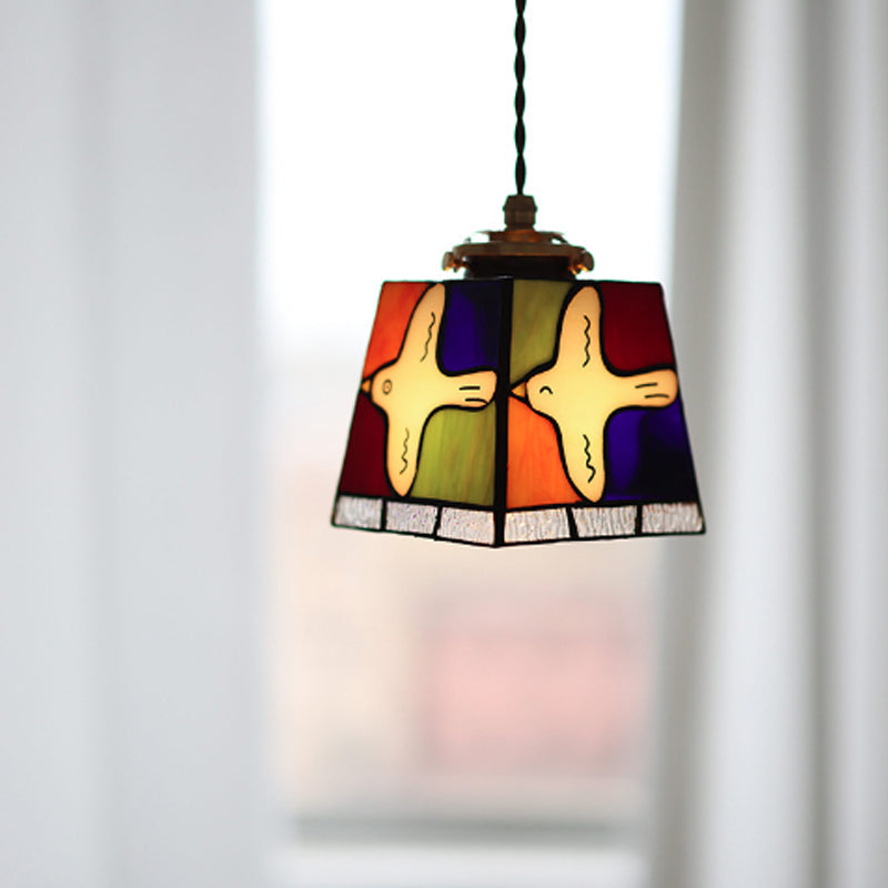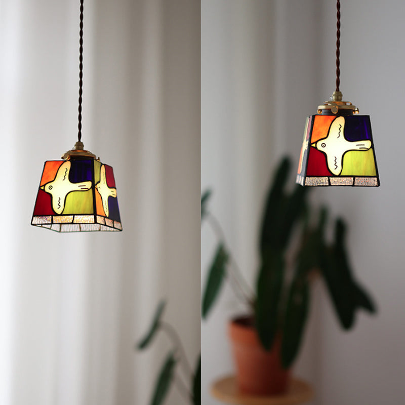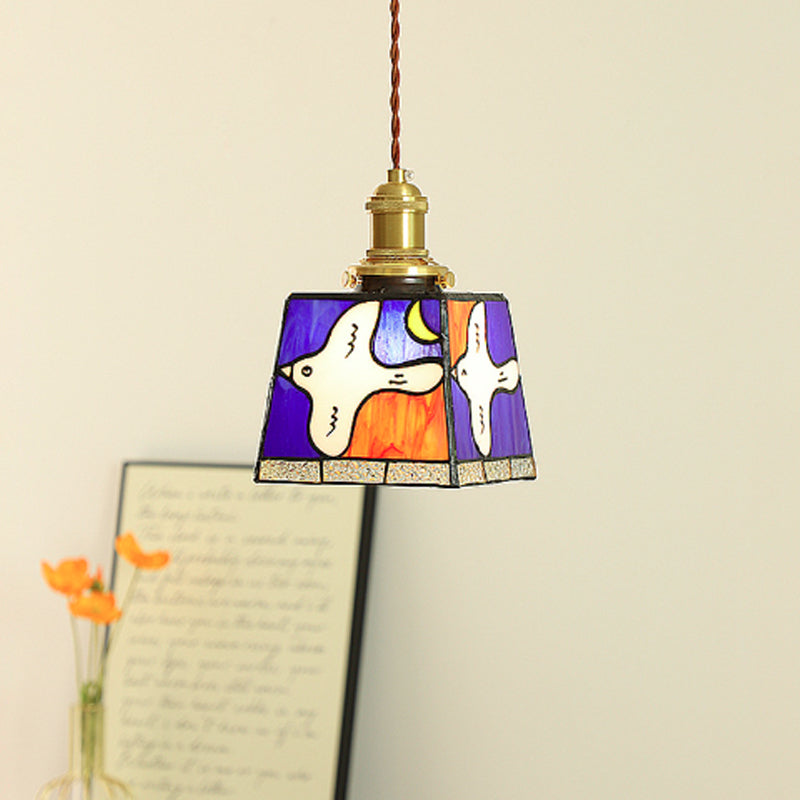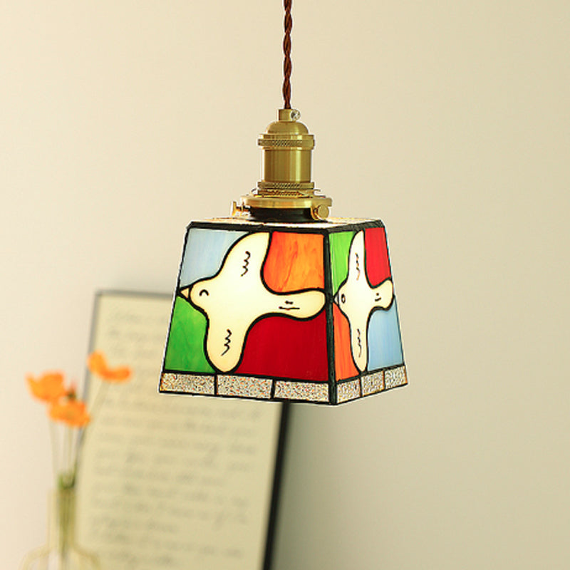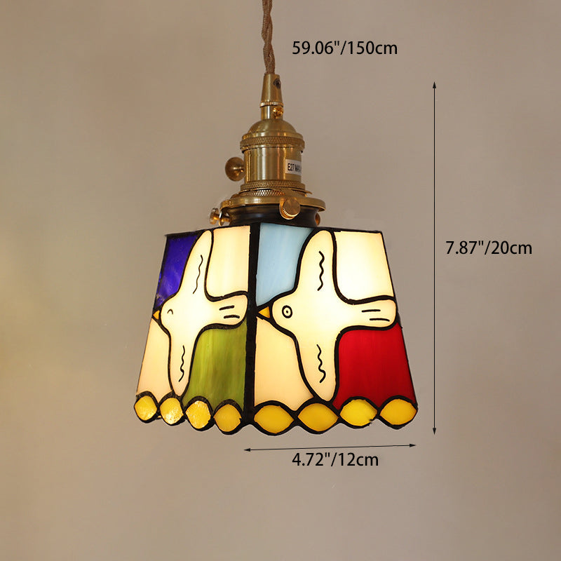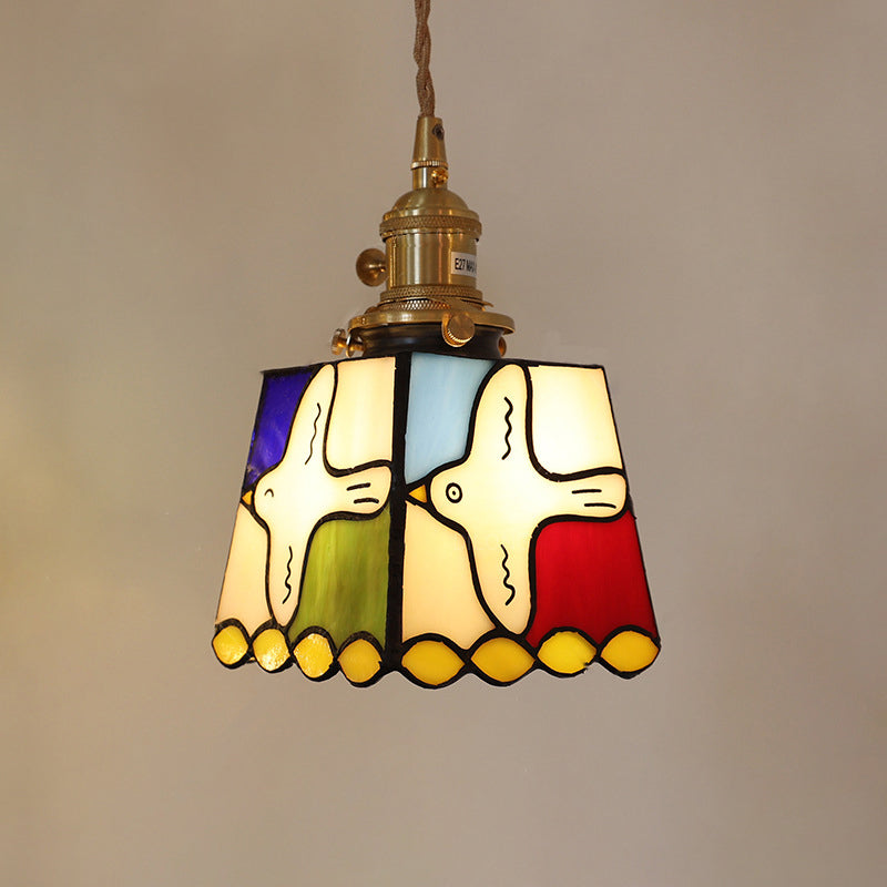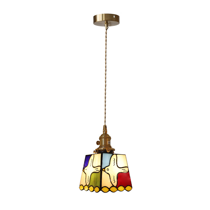 モダンアールデコ調の真鍮製カラフルガラス製鳩の平和の1灯ペンダントライト(寝室用)