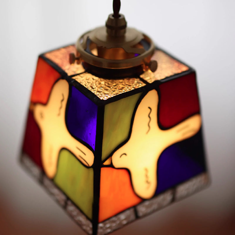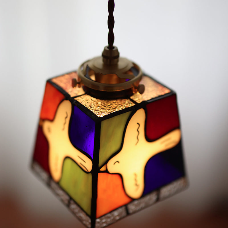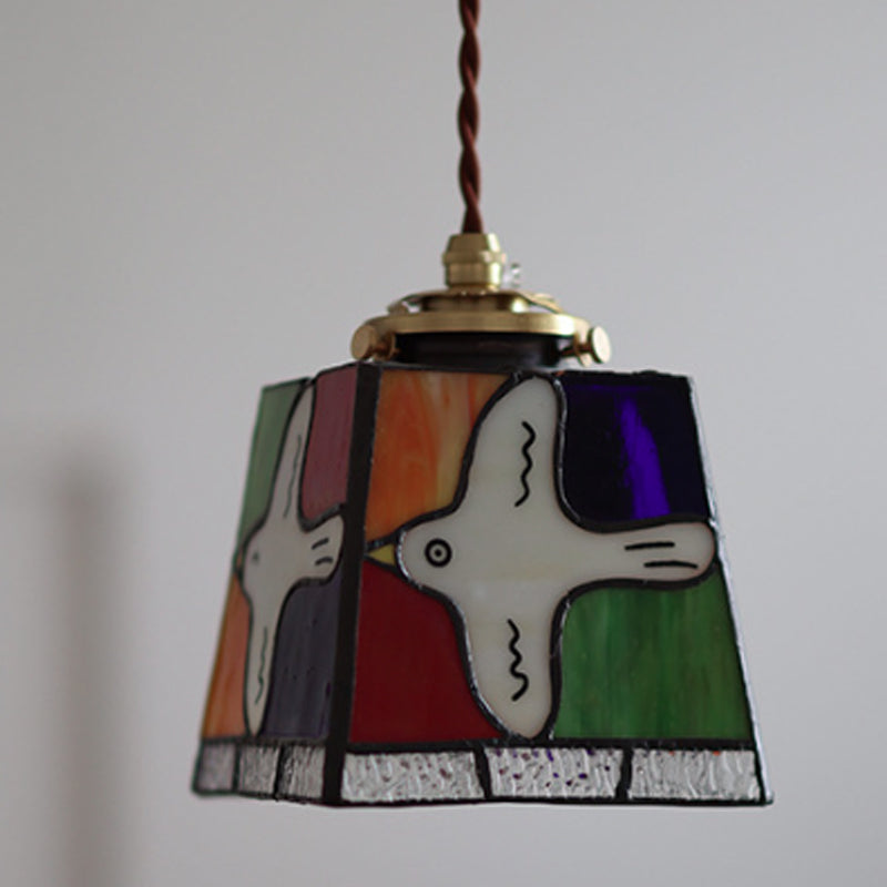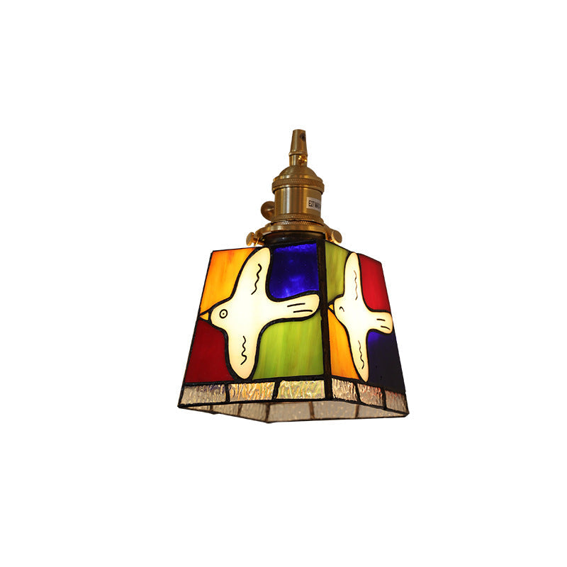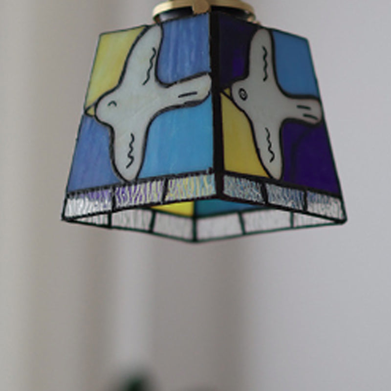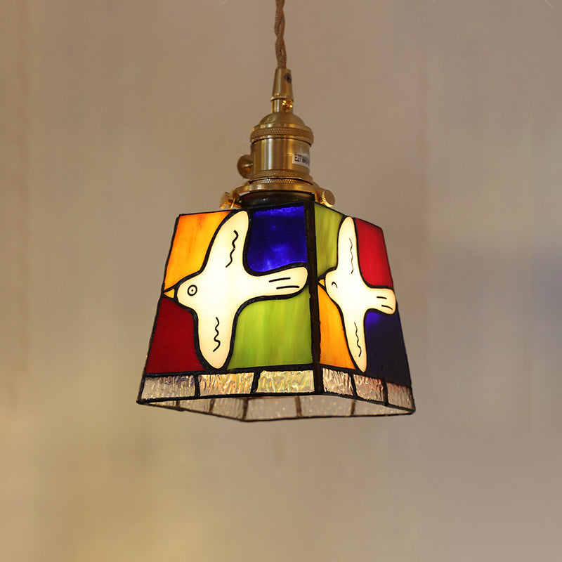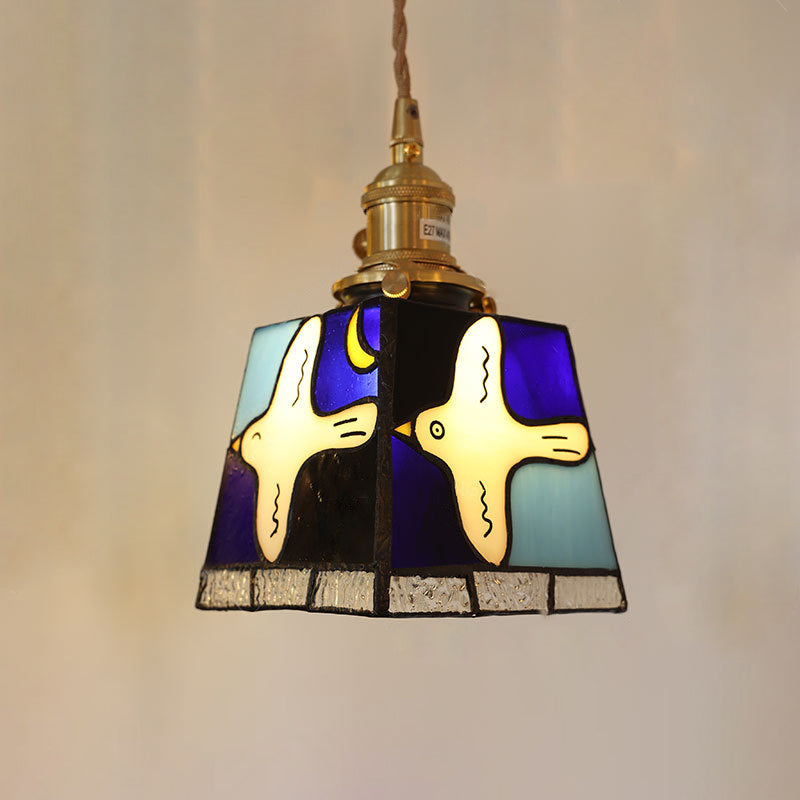 モダンアールデコ調の真鍮製カラフルガラス製鳩の平和の1灯ペンダントライト(寝室用)