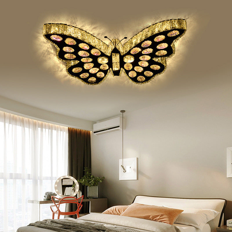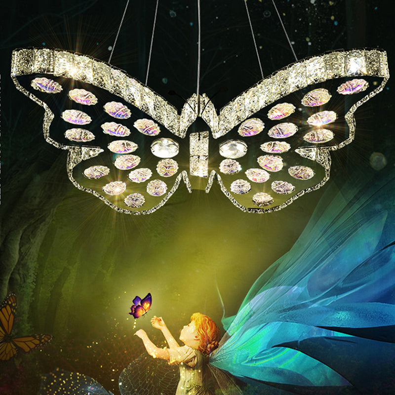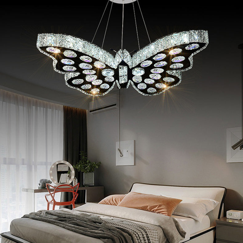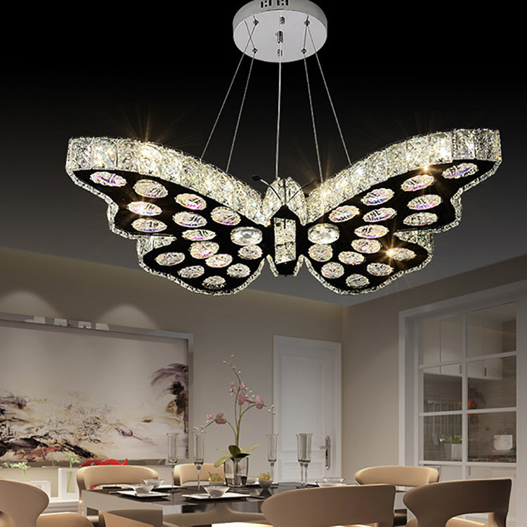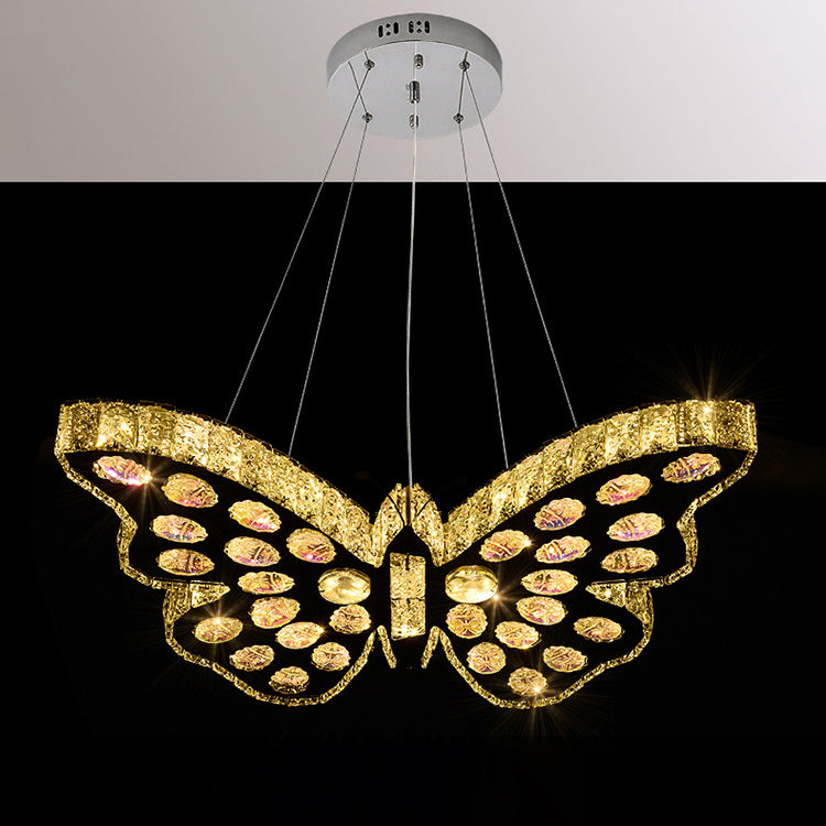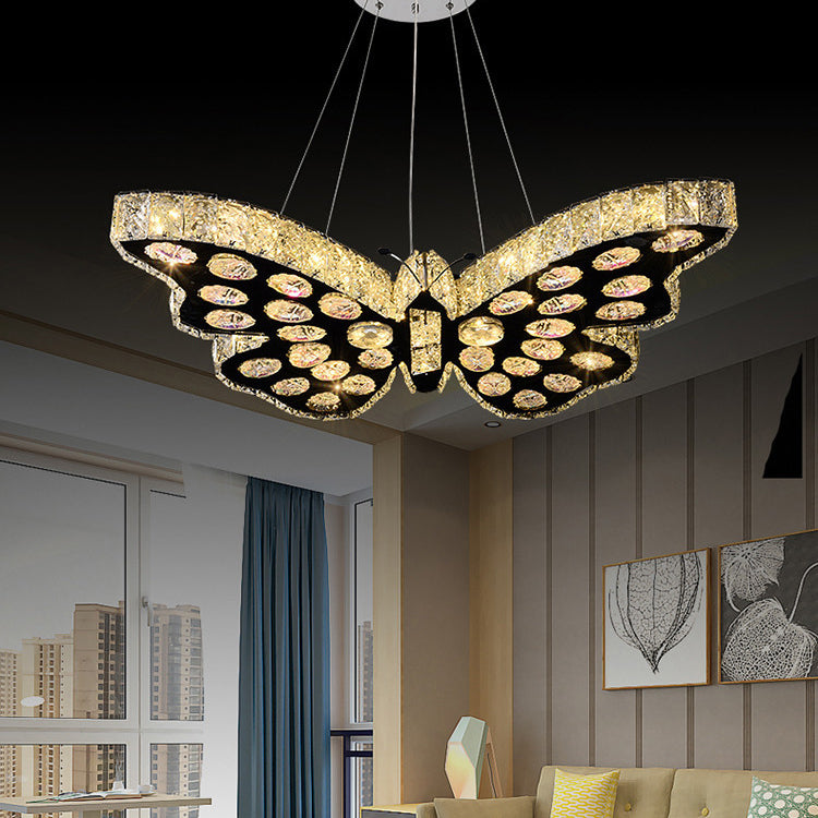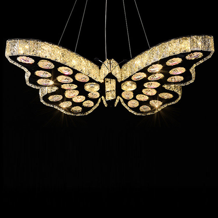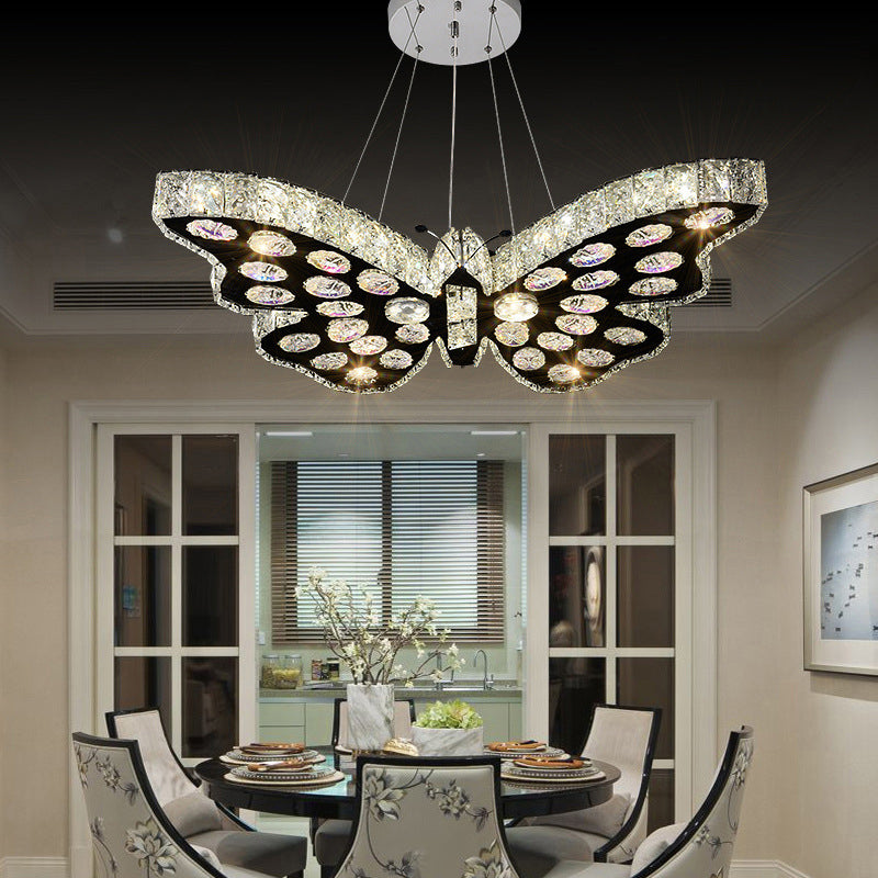 リビングルームに最適な、モダンなアールデコ調のバタフライクリスタルハードウェアLEDシャンデリア