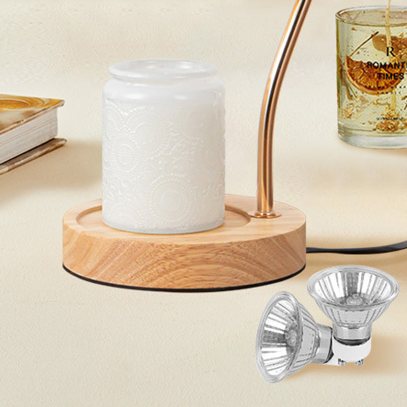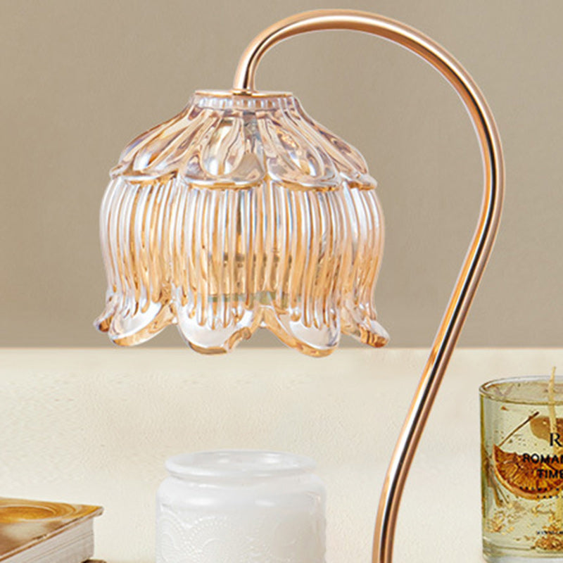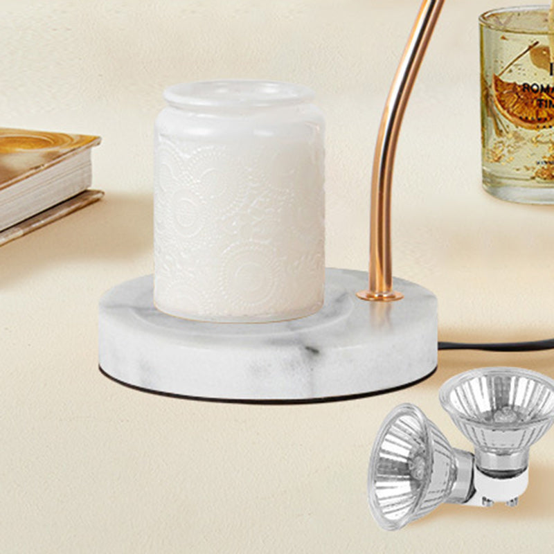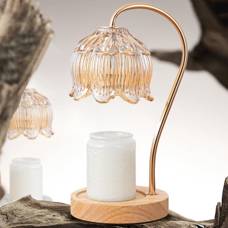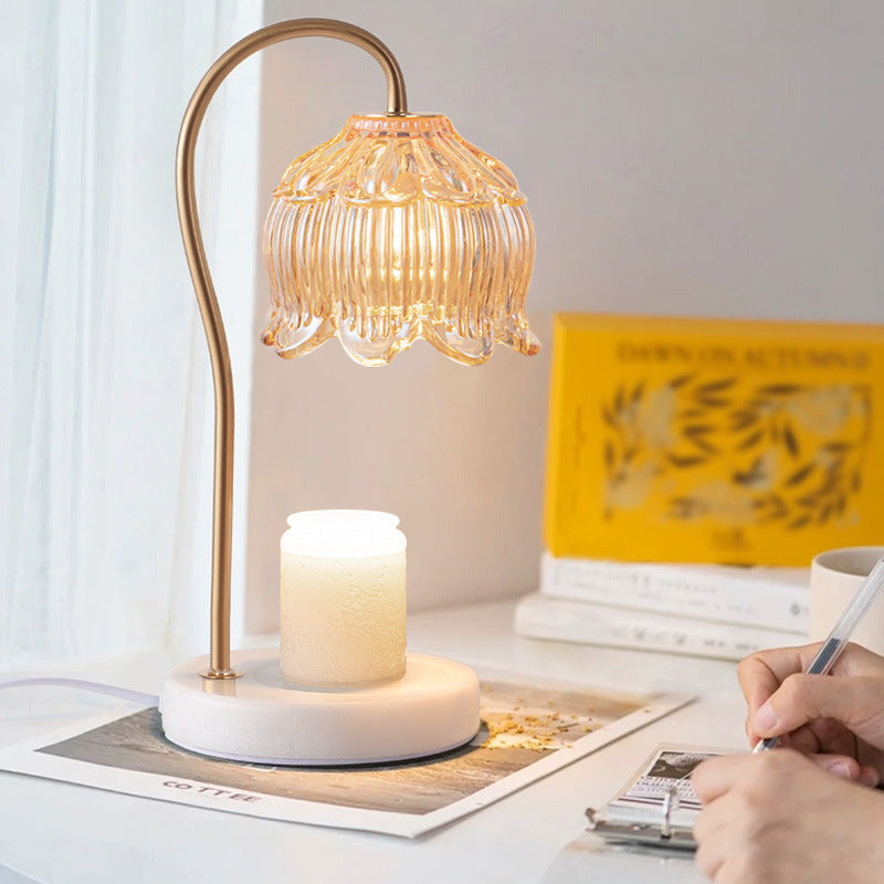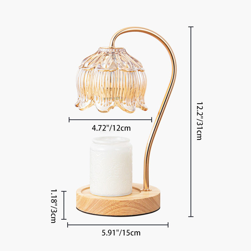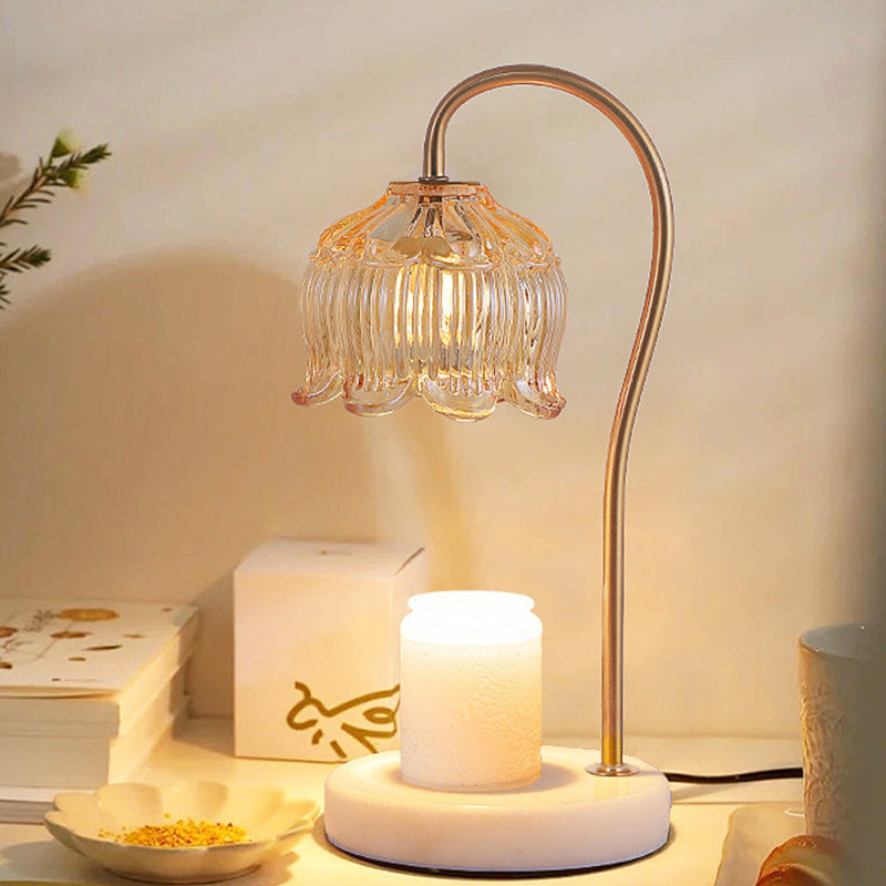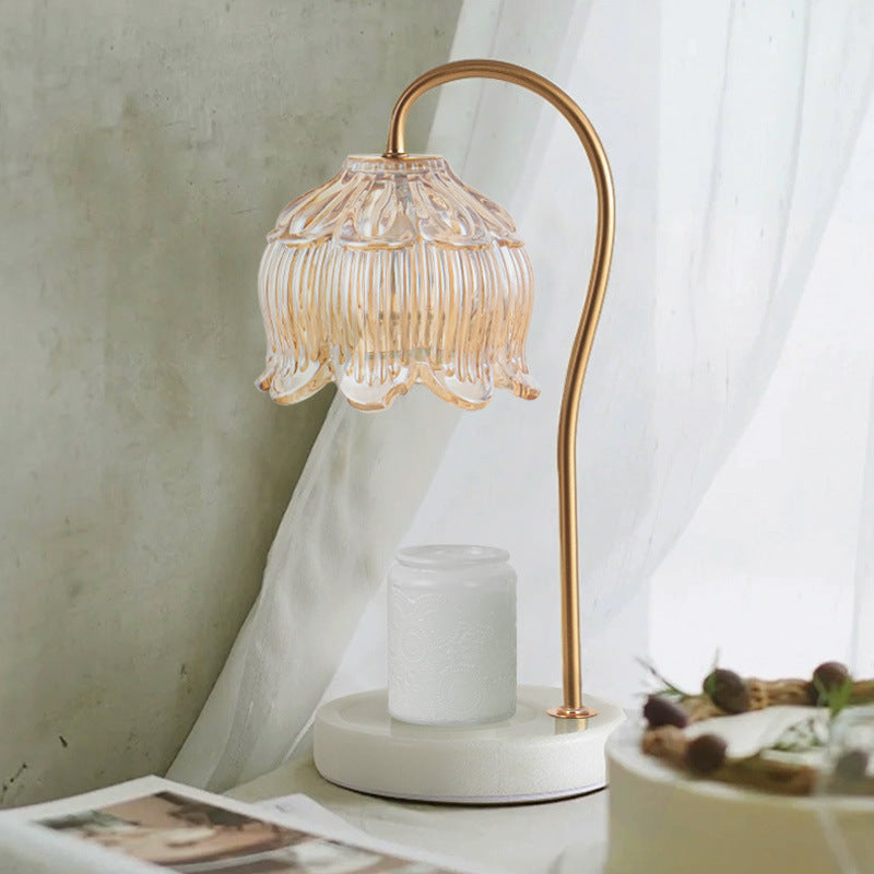 Modern Art Deco Flower Shape Round Iron Glass Wood Marble 1-Light Melting Wax Table Lamp For Bedroom