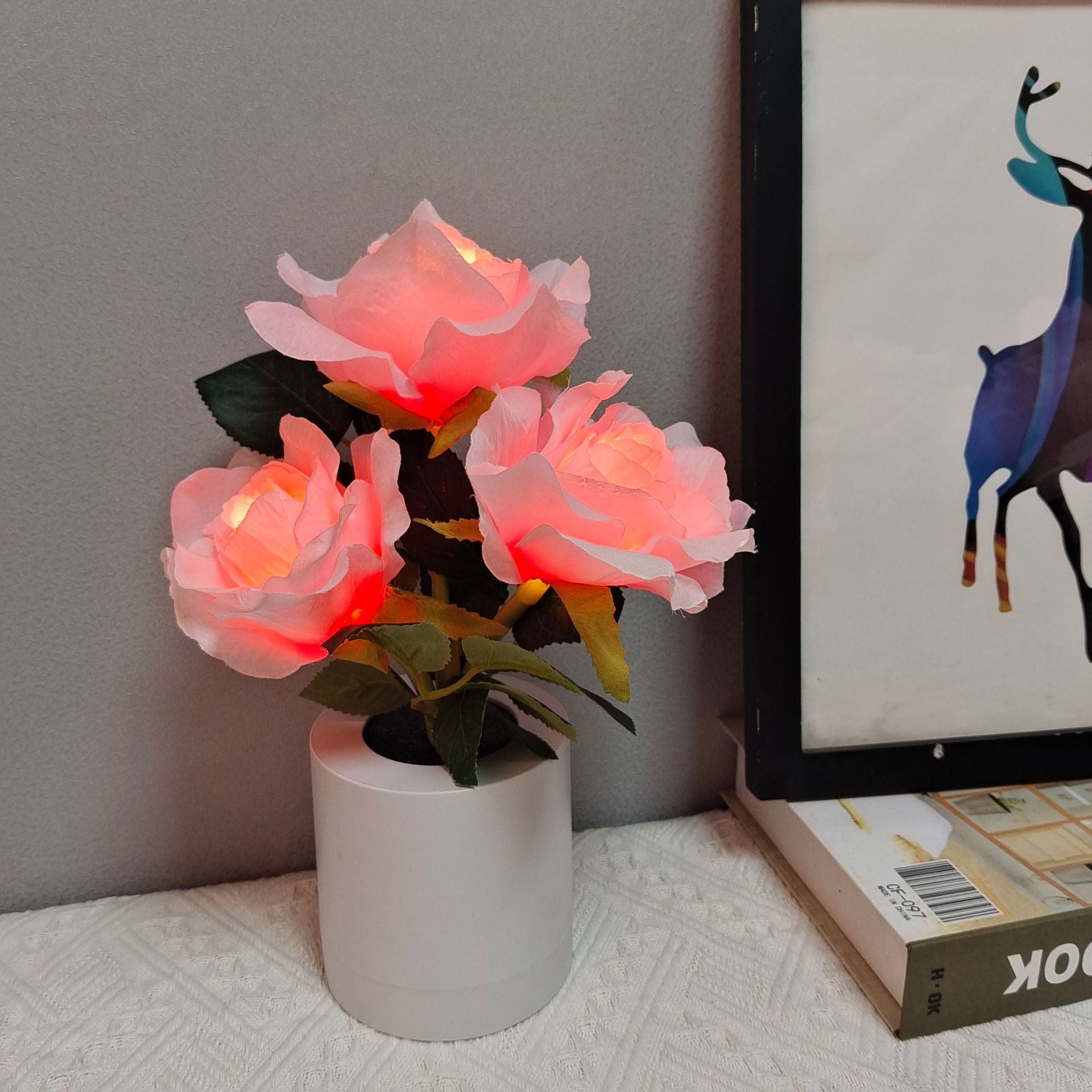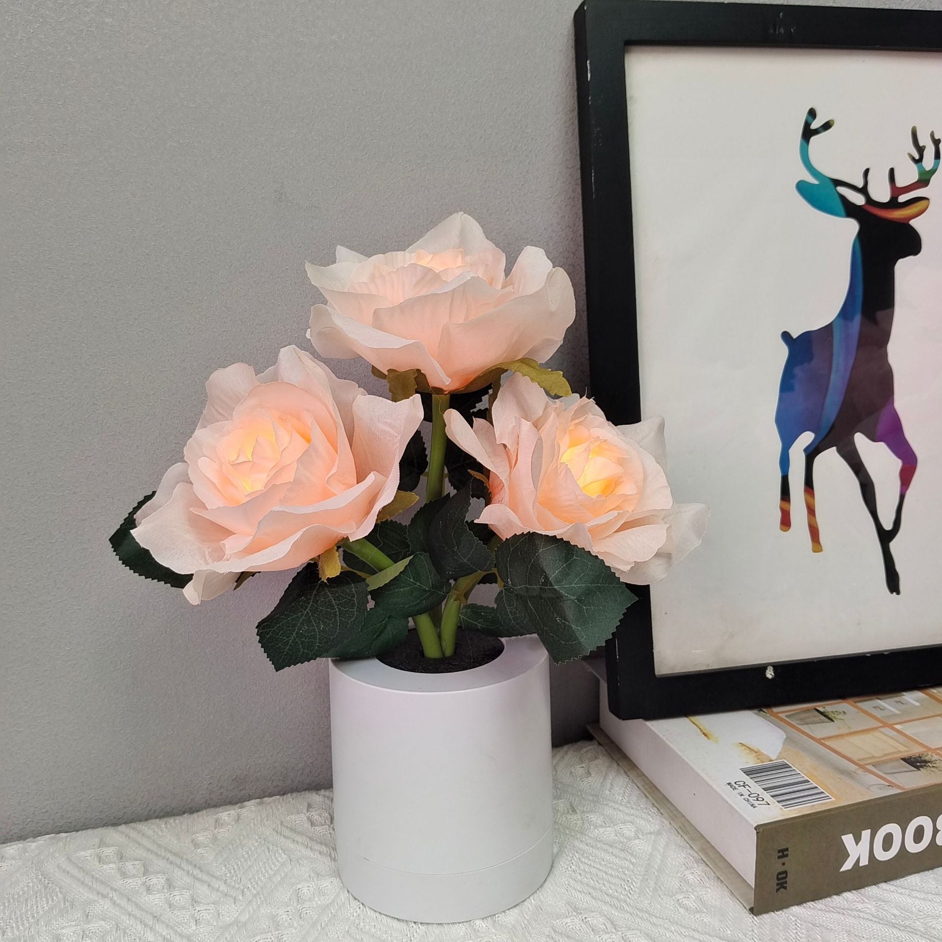 Modern Art Deco Rechargeable Plastic Fabric Flower Pot LED Table Lamp For Bedroom