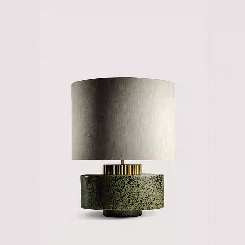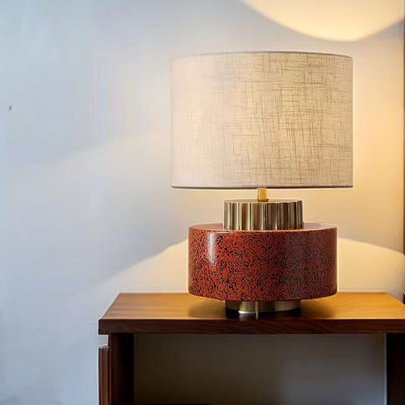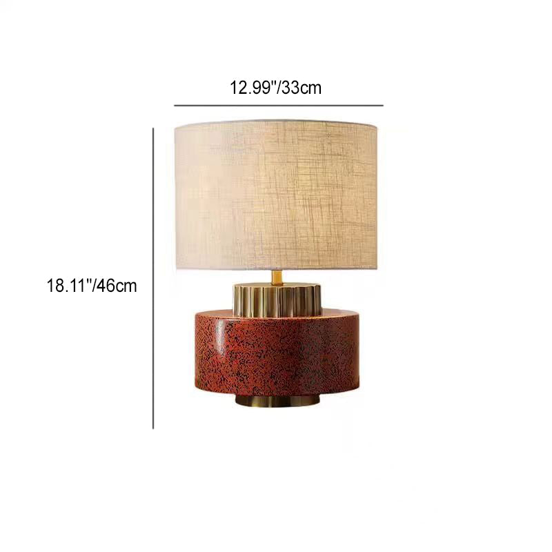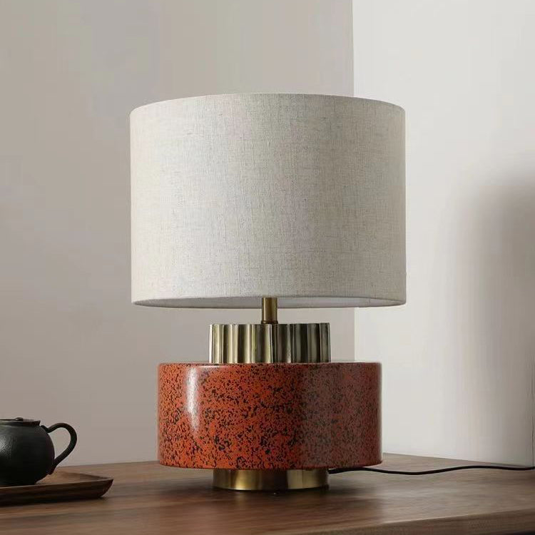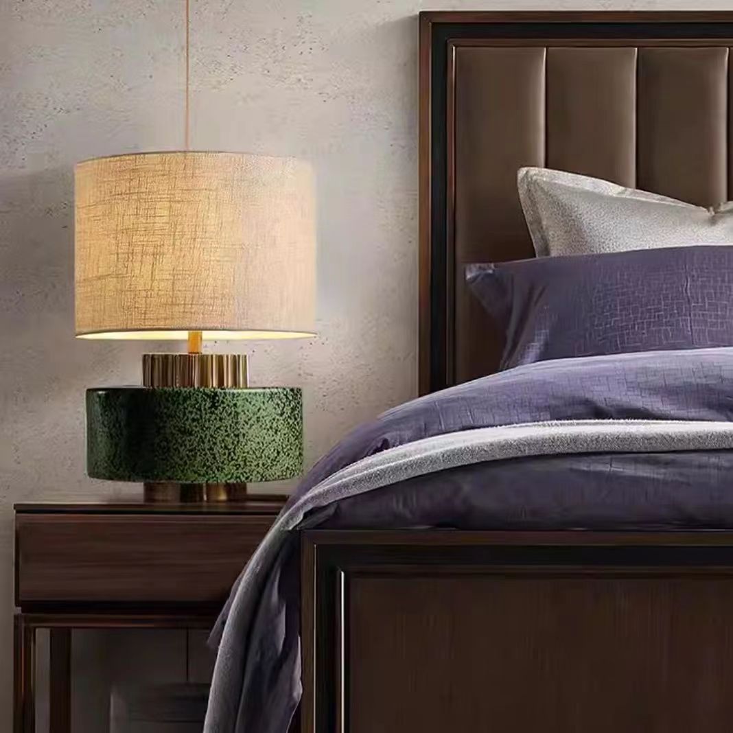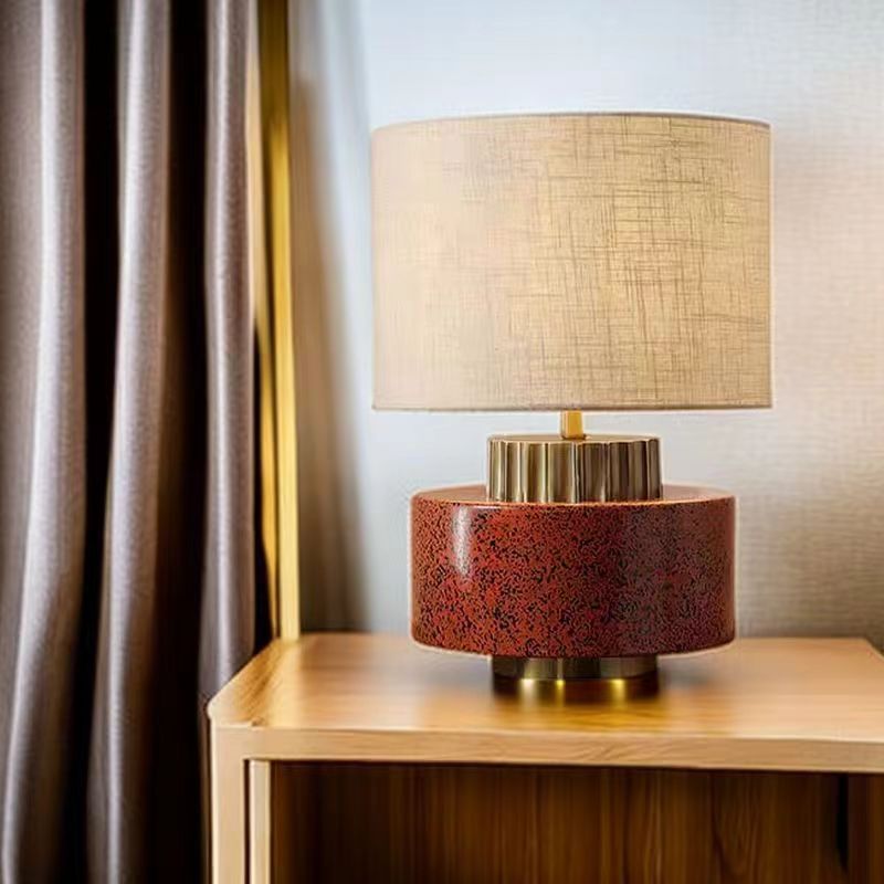 Modern Art Deco Round Cylinder Ceramic Fabric 1-Light Table Lamp For Bedroom
