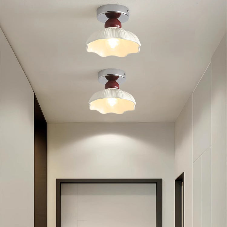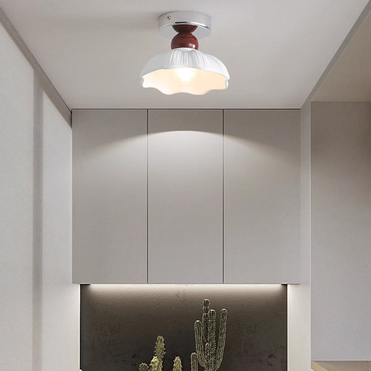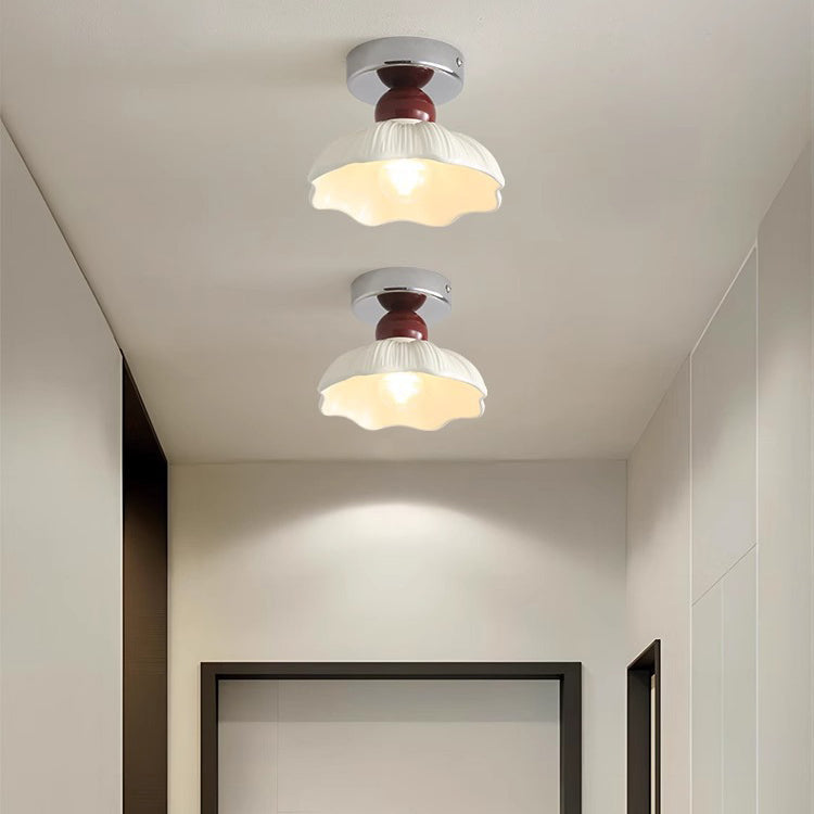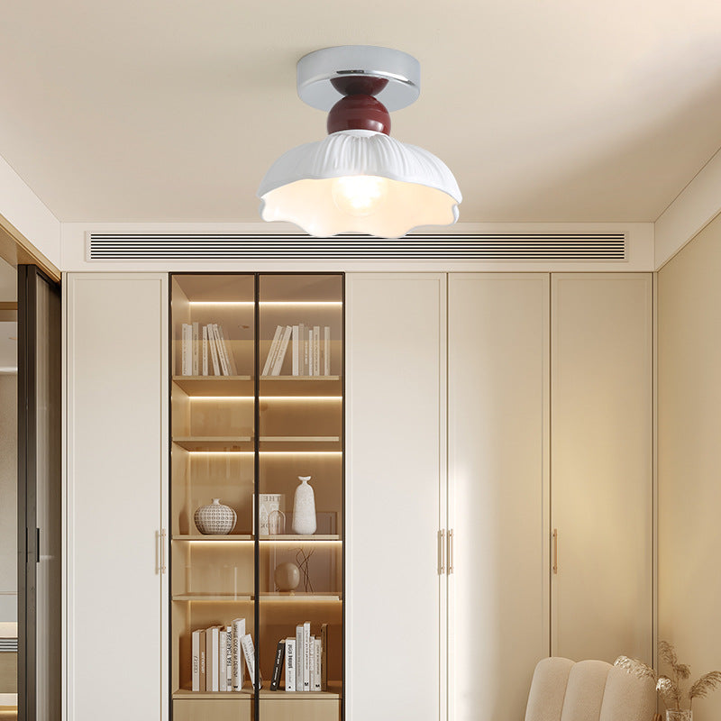 モダンアールデコ調ラウンドフラワー樹脂シェードハードウェアベース1ライトセミフラッシュマウント天井照明(廊下用)