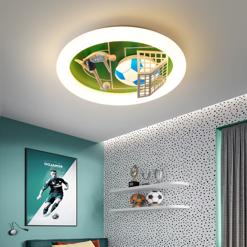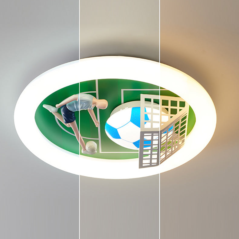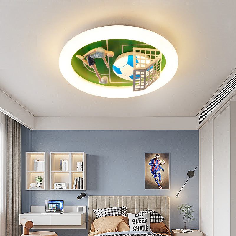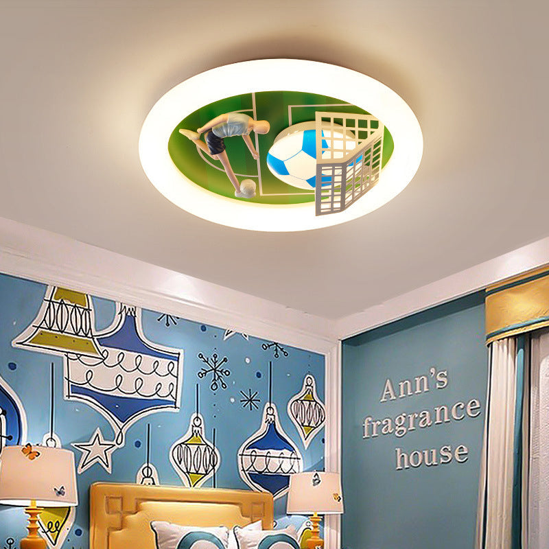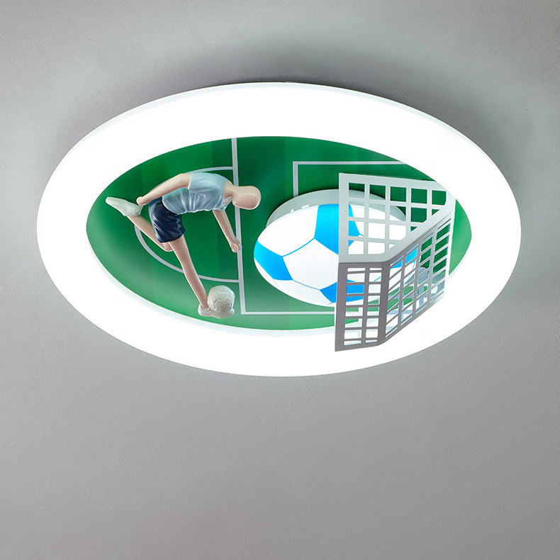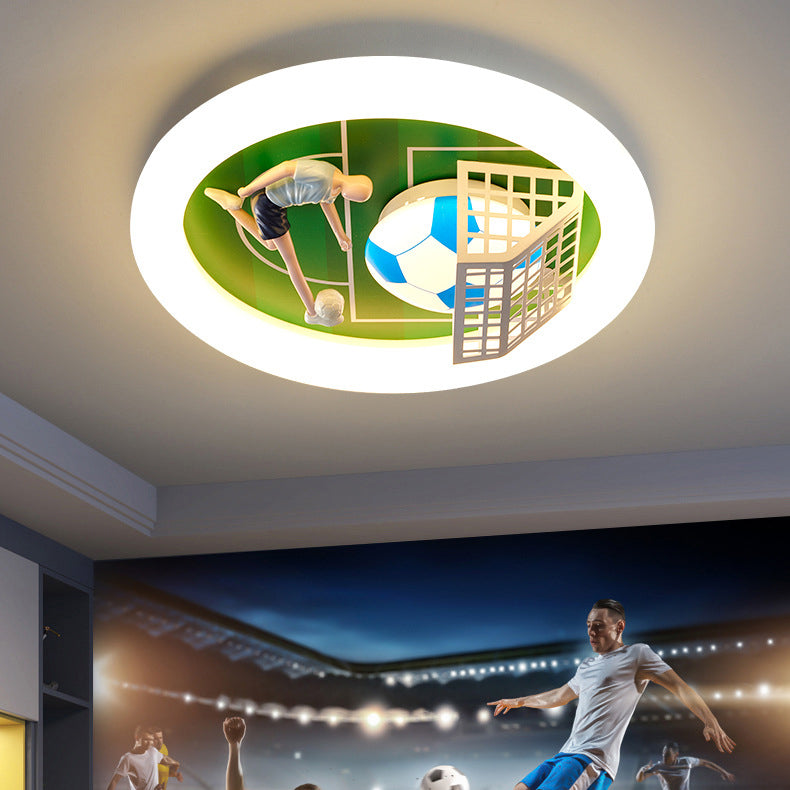 モダンアールデコサッカーラウンドアクリルアイアンLEDフラッシュマウントシーリングライトリビングルーム用
