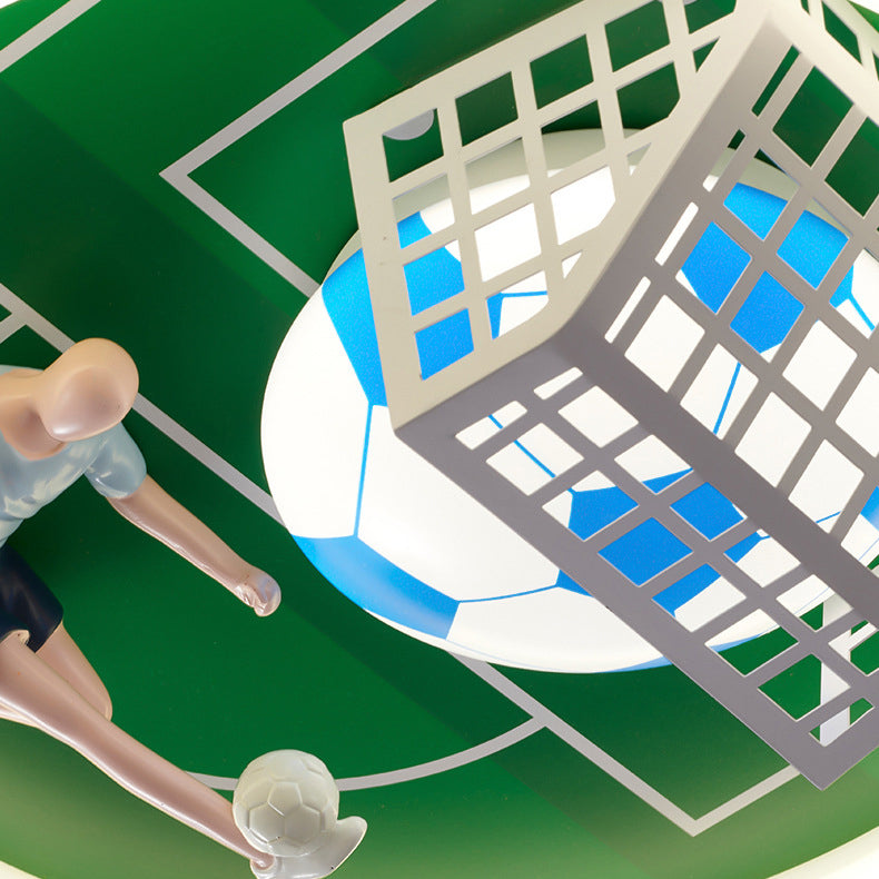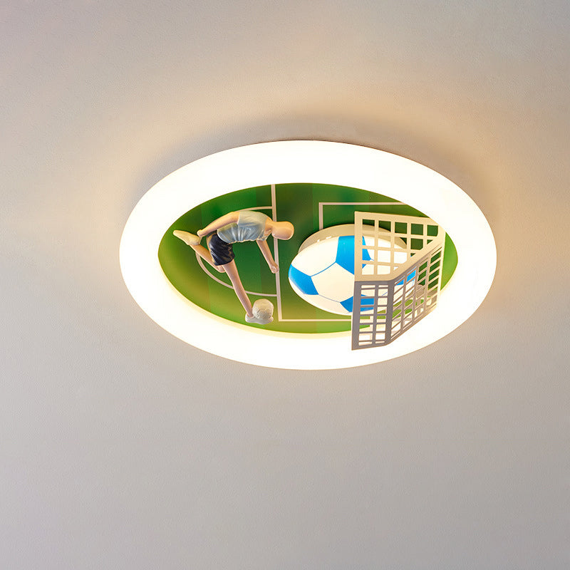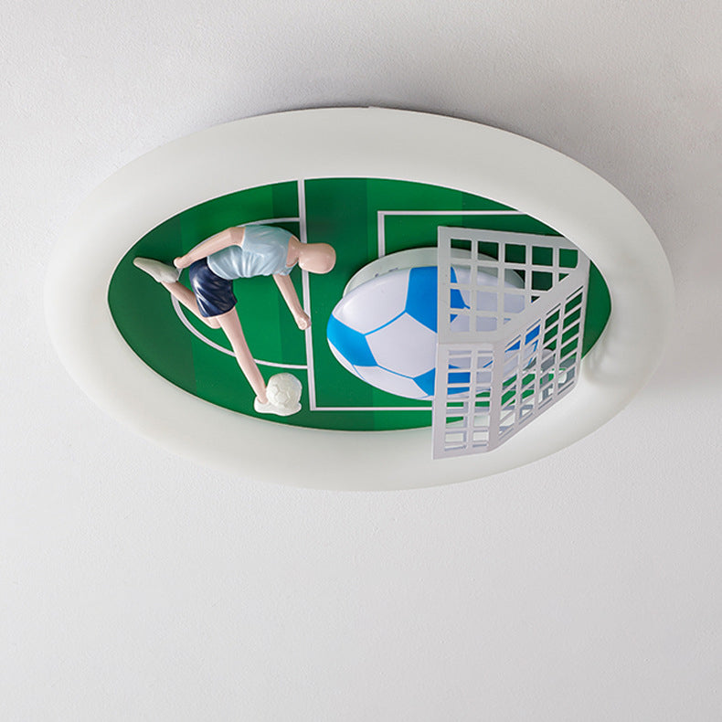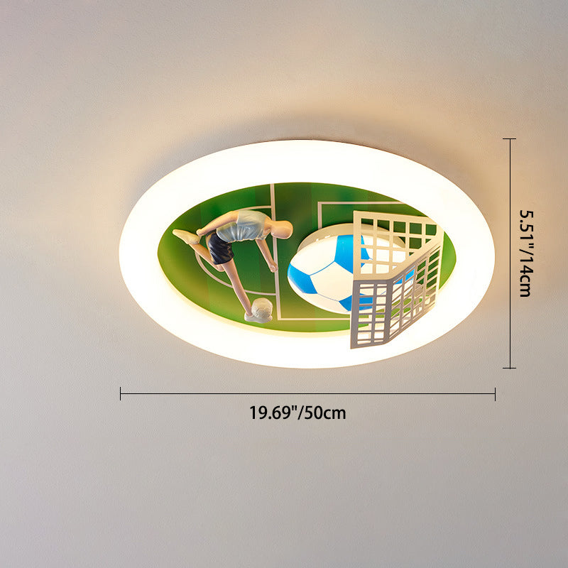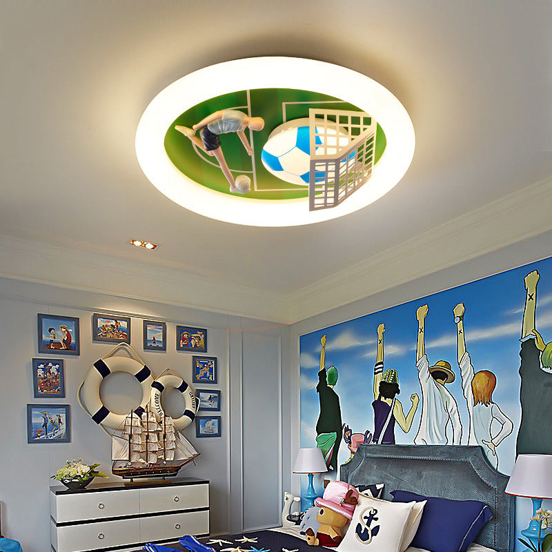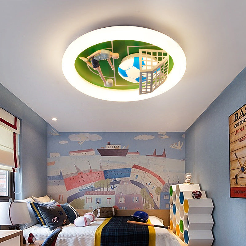 モダンアールデコサッカーラウンドアクリルアイアンLEDフラッシュマウントシーリングライトリビングルーム用