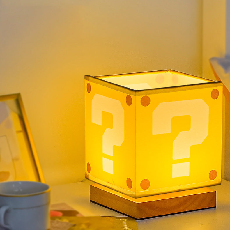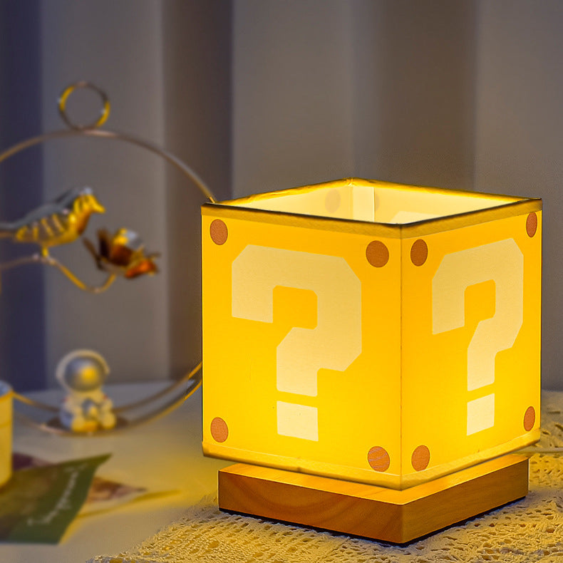 Modern Art Deco Square Floral Fabric Shade Solid Wood Base LED Table Lamp For Bedroom