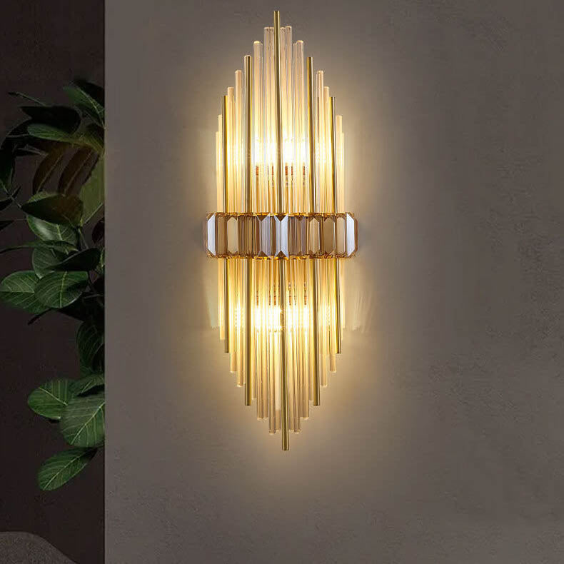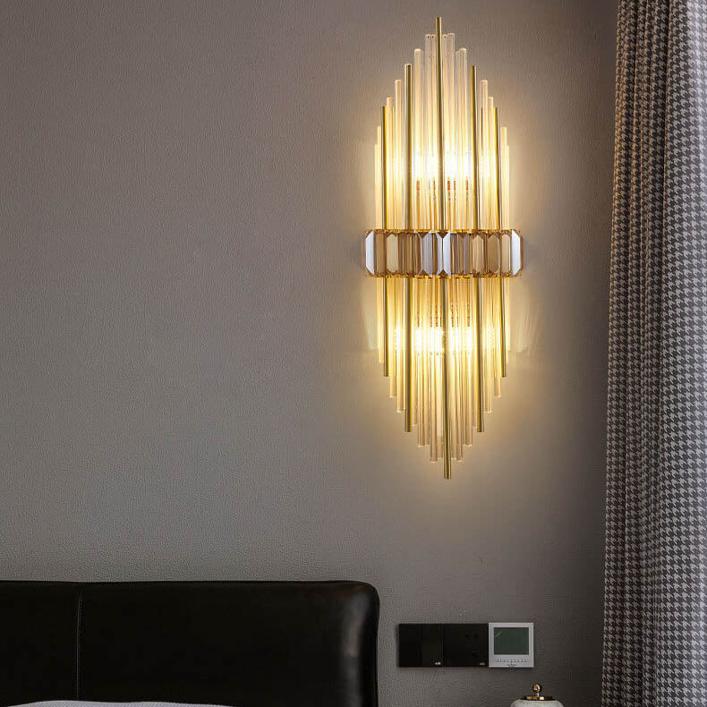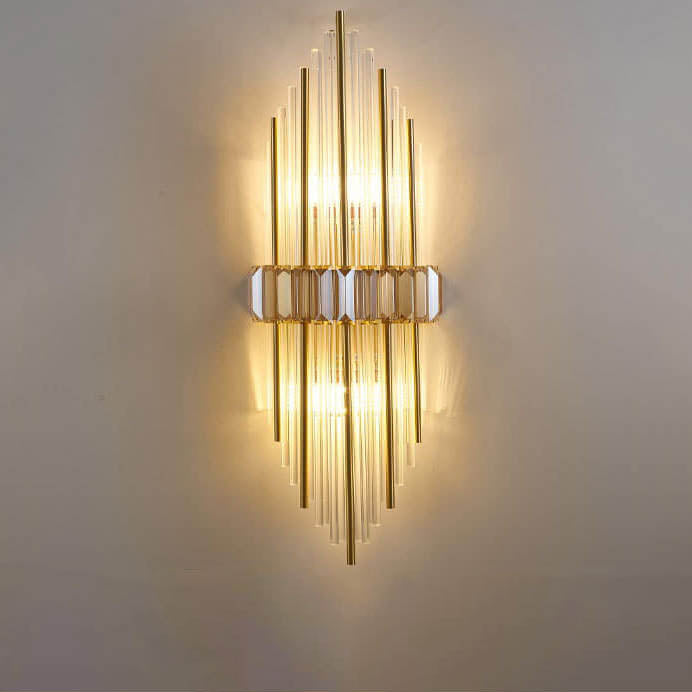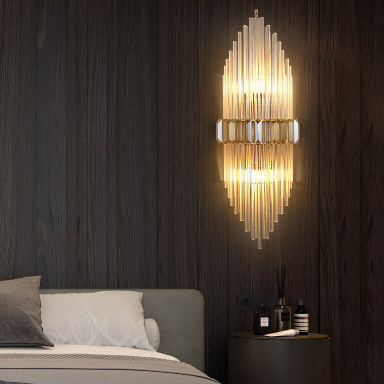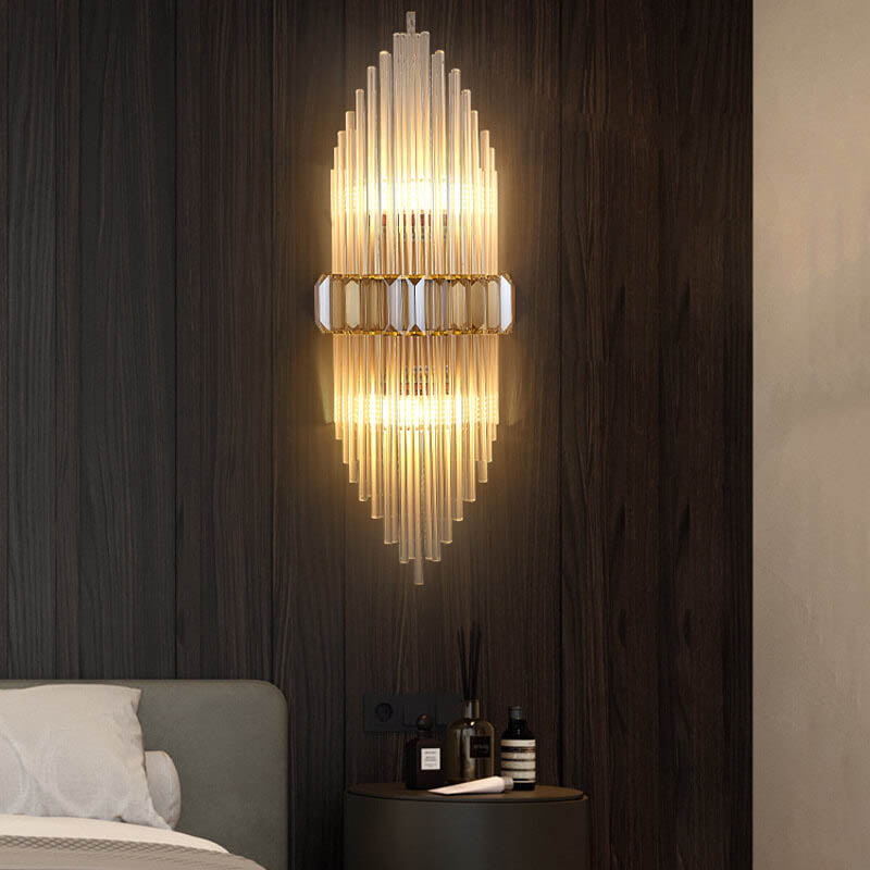 モダンな真鍮クリスタルチューブラー2灯壁取り付け用燭台ランプ