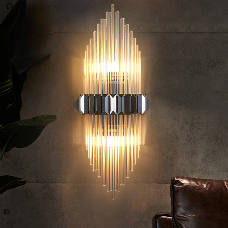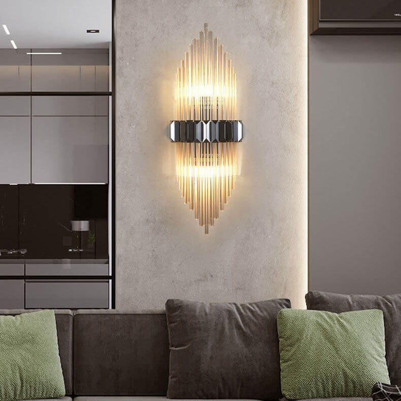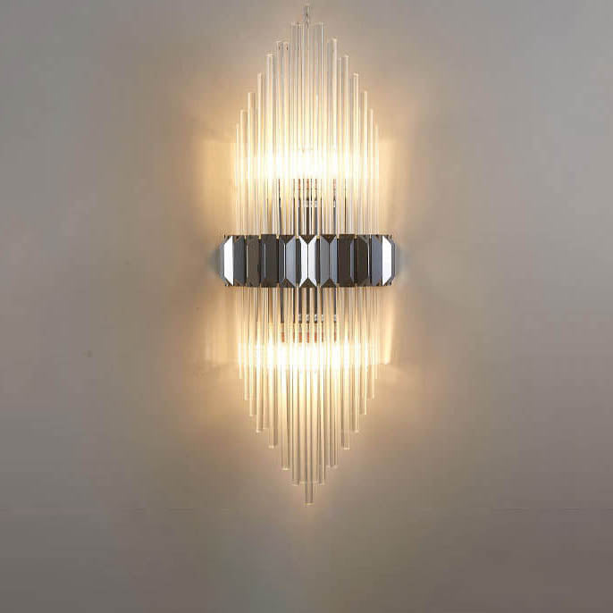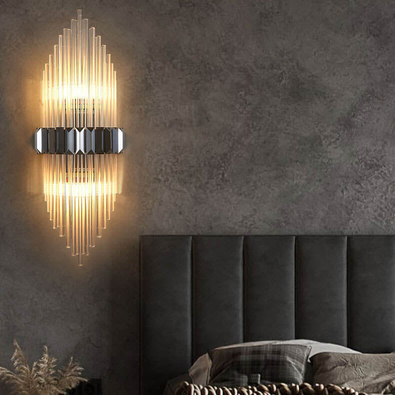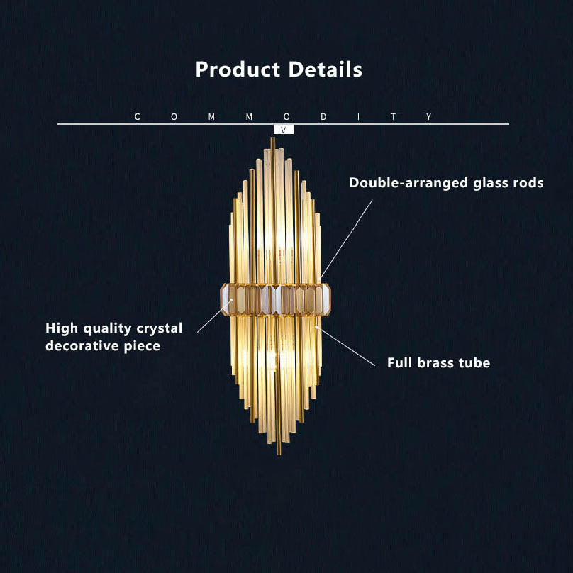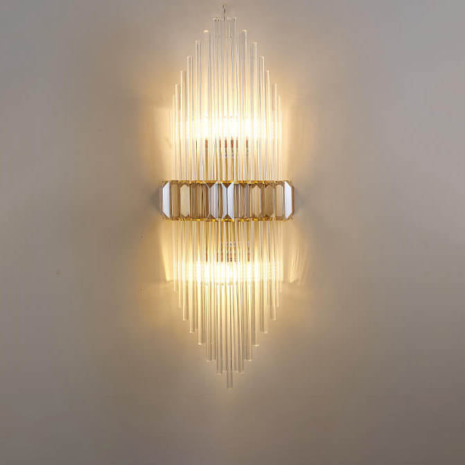 モダンな真鍮クリスタルチューブラー2灯壁取り付け用燭台ランプ